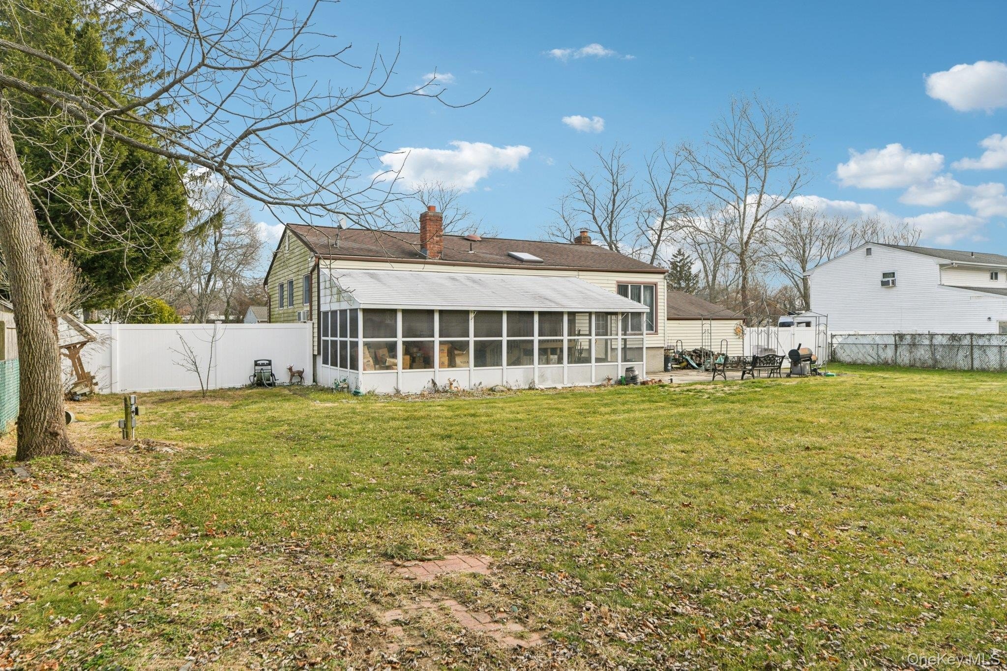 Welcome to this spacious 4-bedroom, 2.5-bath raised ranch located in Port Jefferson Station. The main level features three generously sized bedrooms, including a primary suite with a private half bath, along with a full hallway bathroom. Hardwood floors run throughout the home, adding warmth and continuity to the living spaces. Also on the main level are a bright living room and formal dining room, plus a kitchen with sliding doors that lead to an enclosed sunroom-perfect for enjoying natural light year-round. The lower level offers a comfortable family room with a wood-burning fireplace, an additional bedroom, and flexible space ideal for guests, a home office, or recreation. Additional highlights include a patio and sunroom for outdoor enjoyment, a two-car garage, 150-amp electric, and a 6-zone in-ground sprinkler system with new heads. Conveniently located near shopping, dining, and transportation, this home offers space, functionality, and a versatile layout to suit a variety of lifestyles.