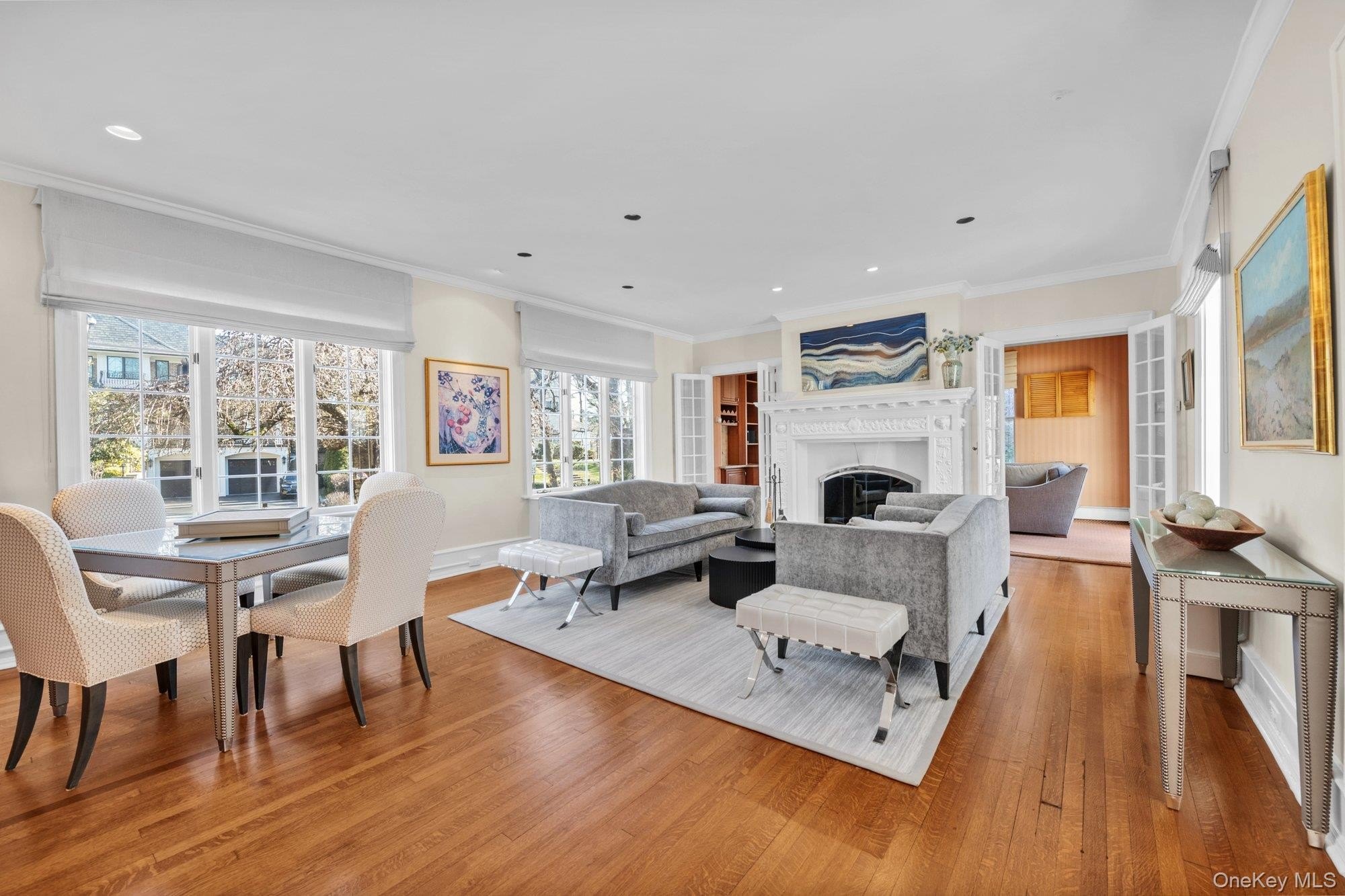 This Great Neck Estates side hall colonial blends timeless architectural character with thoughtfully integrated modern upgrades. Built in 1928, the home retains the craftsmanship and proportions of its era, including nine-foot ceilings throughout, original hardwood flooring, and generously sized rooms that create an airy, elegant living space. The exterior reflects enduring quality with a slate roof and classic stucco facade, offering both visual appeal and long-term durability. The renovated kitchen is a standout, featuring custom walnut cabinetry, high-end appliances, breakfast bar and tumbled limestone flooring. A sun-filled living room features a wood-burning fireplace and flows naturally into an inviting den with custom built-ins and a wet bar. From here, sliding glass doors open to an outdoor deck, creating an easy connection between indoor and outdoor living. The formal dining room is ideally situated, accessible from the kitchen as well as through French doors from the living room, making it well suited for both everyday living and entertaining. The upstairs features a primary bedroom with its own cozy fireplace, original built-ins and a massive walk-in closet. Relax in the spa-like primary bath with jacuzzi and steam shower and recently renovated double vanity and cabinetry. A Jack & Jill bedroom with its own full bathroom can easily be separated into 2 bedrooms and a 4th ensuite bedroom sits across the hall. There is an additional multi-functional "bonus" room currently used as a gym which be designated as a playroom, study, home office or 5th bedroom. A finished full basement features laundry, cedar closet and bathroom. Mature plantings surround the property offering complete privacy from the street. The backyard envelopes the home on 3 sides with a deck off the den, bluestone patio off the kitchen and fenced-in vegetable garden entered through a lattice trellis. Home includes a full house generator and EV charging station installed in the garage. Home is situated in a prime location with easy access to shopping, town and LIRR. Exclusive Great Neck Estates offers residents access to a private waterfront park with pool, tennis, basketball and summer camp for residents. Zoned for renowned Great Neck South schools, North optional up to 5th grade. Overall, this property offers the rare opportunity to enjoy the grace and permanence of a traditional home enhanced by tasteful modern finishes and updates, ideal for buyers seeking character without compromising on comfort or style.