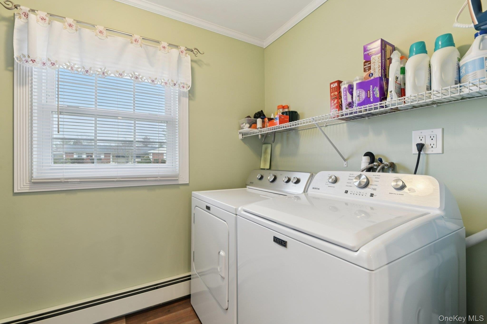 Welcome to 1 Haskel Court, a beautiful Eaton Colonial that truly checks every box. Nestled on a quiet cul-de-sac, this move-in-ready home offers the perfect blend of classic charm and modern updates. This spacious home features 4 generously sized bedrooms, including a primary bedroom en suite with a newly renovated bathroom featuring an open walk in shower, a white quartz vanity, and a large walk-in closet. The home showcases durable laminate wood flooring throughout, recessed lighting with dimmers, elegant crown moldings, and double-paned windows . Major improvements include all three bathrooms recently renovated (all within the past year-year and a half) including all new plumbing, brand-new central air (8 months old) and a new Peerless burner (15 months old), providing peace of mind for years to come. The eat-in kitchen has stainless steel appliances (refrigerator, dishwasher, and oven less than 2 years old) and sliders that lead to a backyard patio-perfect for indoor-outdoor entertaining. Entertain effortlessly in the formal living room with a wood-burning fireplace, the formal dining room with convenient kitchen access, or relax in the spacious family room . The home also features a laundry room with a one-year-old washer and dryer, an oversized two and a half car garage with extra space for storage or a workbench and direct yard access, a pull-down attic with plywood flooring, 200 amp electric, generator hookup, fiberglass oil tank, and a Belgian block-trimmed extended driveway accommodating multiple vehicles. The fully fenced backyard is lined with mature arborvitaes for ultimate privacy and includes a 9-zone in-ground sprinkler system, and a 10'x8' Shed (3 years old ). The home sits on .37 of a flat acre on a quiet cul-de-sac, in the Three Village School District! Located in the heart of Stony Brook you are close by to all the town has to offer. Stony Brook Hospital, Stony Brook University, Dining, Shopping, Museums, Beaches, Hiking Trails and so much more! Just unpack your bags and move right in-this exceptional home has it all.
