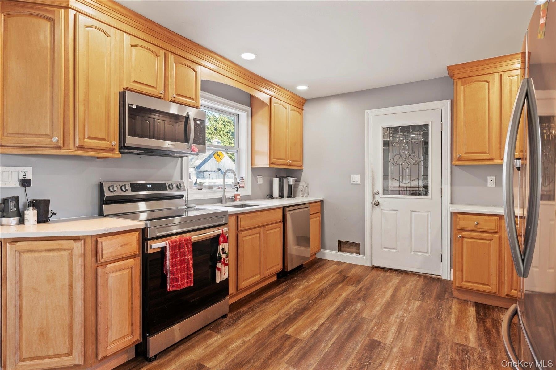 Set on 1.5 acres of level, flat property in St. James, this home offers a private and peaceful retreat while remaining conveniently close to everyday amenities. The expansive parcel presents potential for subdivision (buyer to verify), including the possibility of a flag lot or alternate access from Lt. John A. Olsen Lane with approved easement. Lovingly maintained by the same owners for over 25 years, the home features numerous updates including double cesspools (approx. 2 years), burner (approx. 3 years), kitchen appliances (approx. 2 years), and new commercial-grade flooring throughout-extra thick and scratch-resistant. Two beautifully updated baths (under 3 years), including an upstairs bath with radiant heated floors, add to the home's appeal. Additional improvements include an updated eat-in kitchen and a 40-year roof with approximately 20 years remaining. The home includes a legal garage conversion with a private entrance, ideal for extended family, with potential for a legal accessory apartment with proper permits. An oversized driveway provides ample parking and easily accommodates an RV, boat, or trailer. A large unfinished basement with both interior and exterior entrances offers endless possibilities and features a wood-burning stove, allowing heat to naturally rise throughout the home. Enjoy the convenience of a recreational park just across the street, complete with tennis, volleyball and basketball courts, soccer field, playground, and water park-offering activities for every age. Located in the desirable Smithtown School District and just minutes from fine dining, shopping, and local conveniences,