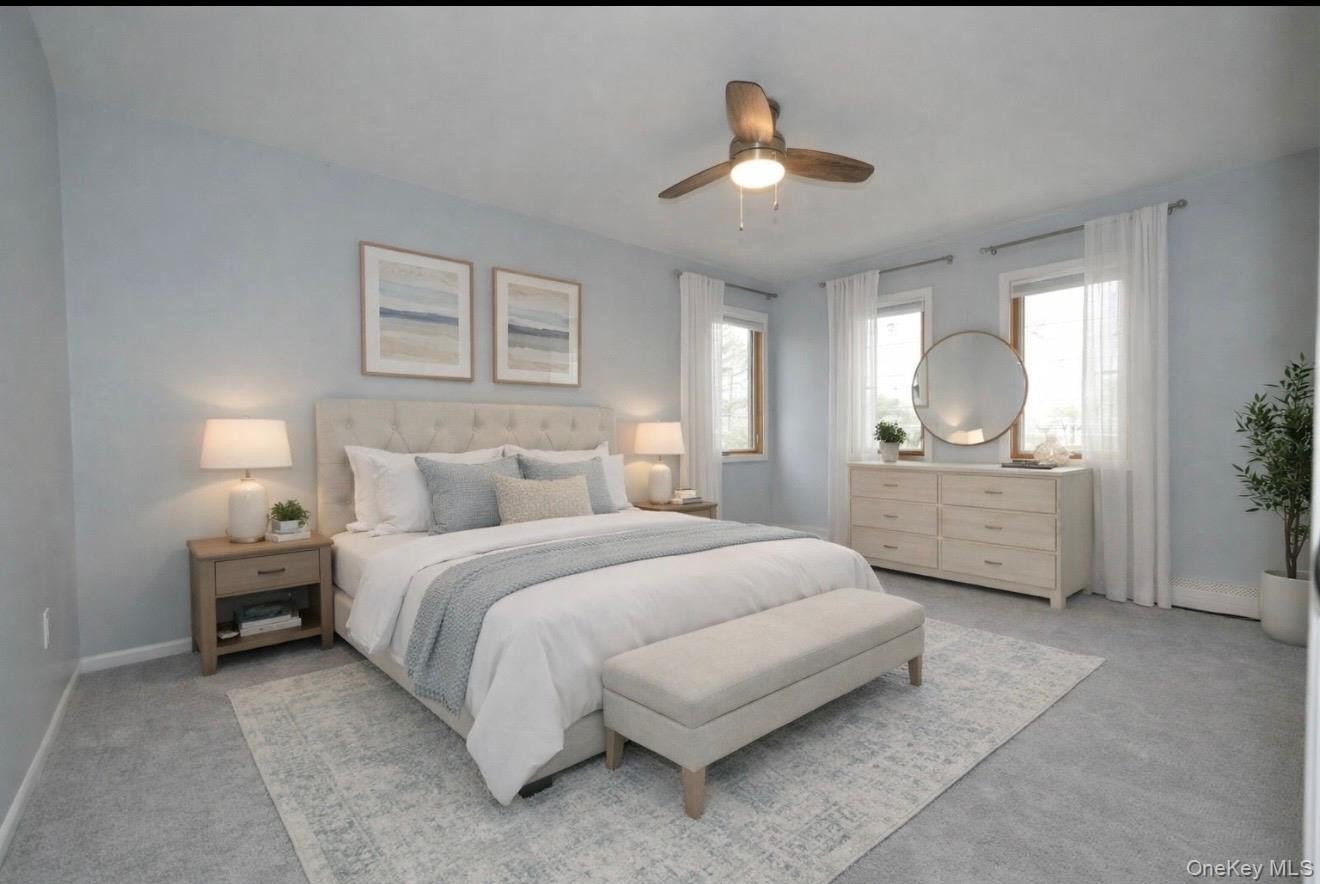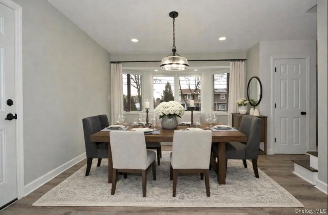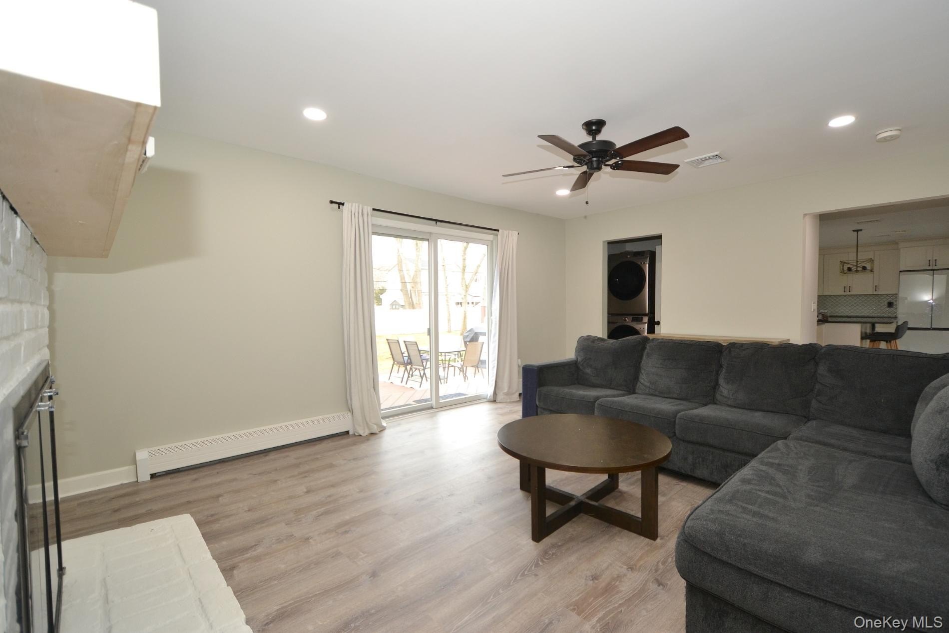 Welcome to 34 Stewart Circle. This beautifully updated 2100 sq ft Center Hall Colonial home features 4 bedrooms and 3.5 bathrooms providing plenty of room for comfort, relaxation and entertaining. Home has been completely renovated offering a seamless blend of timeless elegance and cutting edge smart home technology. Enter inside to discover a Spacious Formal Living Room on one side and a Formal Dining Room on the other side both featuring large Bay Windows that flood the space with natural light, High Hats, Molding, Luxury Vinyl Floors (2025). Continuing to a spacious custom-designed kitchen featuring high end Bespoke Samsung Appliances, 3 ft Farmhouse sink, Granite Countertops, large island with ample seating, Hi Hats and Storage - All appliances are WiFi enabled. Large family room complete with gas fireplace, Hi Hats and sliders to rear yard ?? Laundry Room and Powder Room Upper level features Primary Bedroom complete with Full Bath, 3 Additional Bedrooms and Family Bathroom. Underneath the cozy carpeting, you'll find white oak original hardwood floors, waiting to be revealed. Walk in Linen Closet. Full Basement 760 st ft with Outside Entrance, Utility Area, Huge Closet, 2 Windows and plenty of additional storage space. The spacious rear yard is totally fenced. Great for entertaining complete with a 3 Tier Deck, Paver Patio. . The home is equipped with central air conditioning, ensuring a comfortable environment during those hot summer months. The heating system is powered by natural gas, providing efficient warmth during the chilly seasons. Solar Panels provide additional savings and efficiency. These features add to the home's overall convenience and functionality. The exterior of the home is as impressive as the interior. The property sits on a level 1/3 acre, offering ample outdoor space. A Belgium block outlined driveway leads to a one-car garage, providing ample parking and storage. The property also features a 7 zone inground sprinkler system, ensuring your lawn stays lush and green. Centrally located, this home is in close proximity StonyBrook Hospital, to Schools, shopping amenities and public highways, making your daily commute and errands a breeze. Some photos were AI generated to add furniture.