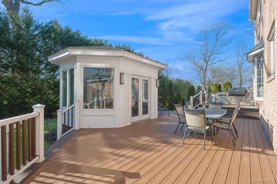 Sophisticated Brick Colonial in Prestigious Roslyn Estates. Exclusively situated within the Roslyn School District, this 5-bedroom, 5.5-bathroombrick Colonial offers an unparalleled blend of classic elegance and modern luxury. The interior is defined by soaring ceilings, rich hardwood flooring, and a seamless open-concept layout designed for high-end entertaining. Beyond the main levels, the expansive finished basement serves as a private club room with a custom-built-in bar. The 1/3-acre grounds are a true sanctuary, featuring a dedicated barbecue station and a rare, climate-controlled glass gazebo for year-round outdoor enjoyment. Located just minutes away from the world-class shops at Americana Manhasset.
