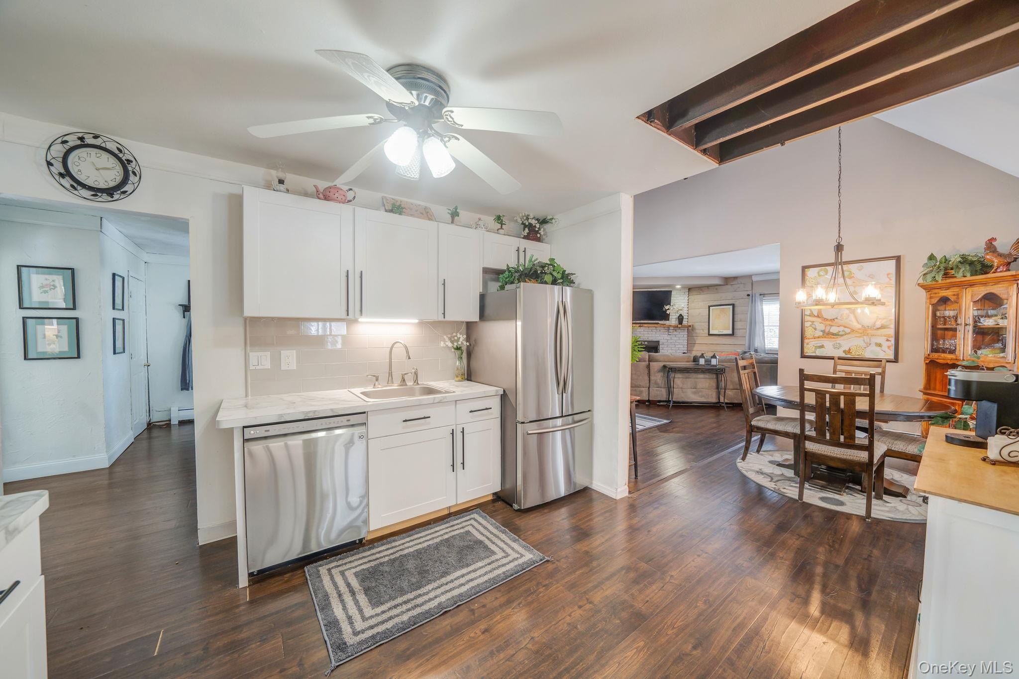 Welcome to this charming Expanded Cape nestled on a quiet cul-de-sac in Coram. Set on a generous .52-acre property. This beautifully decorated home exudes warmth, and a cozy cottage feel throughout. Step inside to discover a stunning vaulted ceiling and floating staircase, that creates an open, airy ambiance filled with natural light. The inviting layout offers comfortable living spaces perfect for both everyday living and entertaining. Featuring 3 spacious bedrooms and 2 full baths, this home provides flexibility and functionality for today's lifestyle. Enjoy the efficiency and convenience of attached sewers, gas heat, a wood burning fireplace, a wood burning stove, and the added benefit of underground utilities, along with the peace and privacy of your expansive backyard offering endless possibilities for outdoor entertaining, gardening, or simply relaxing in your own retreat. Tucked away in a peaceful cul-de-sac, while still conveniently located near shopping, dining, and major roadways, this home blends charm, comfort, and practicality. Don't miss the opportunity to make this beautiful Expanded Cape your own!