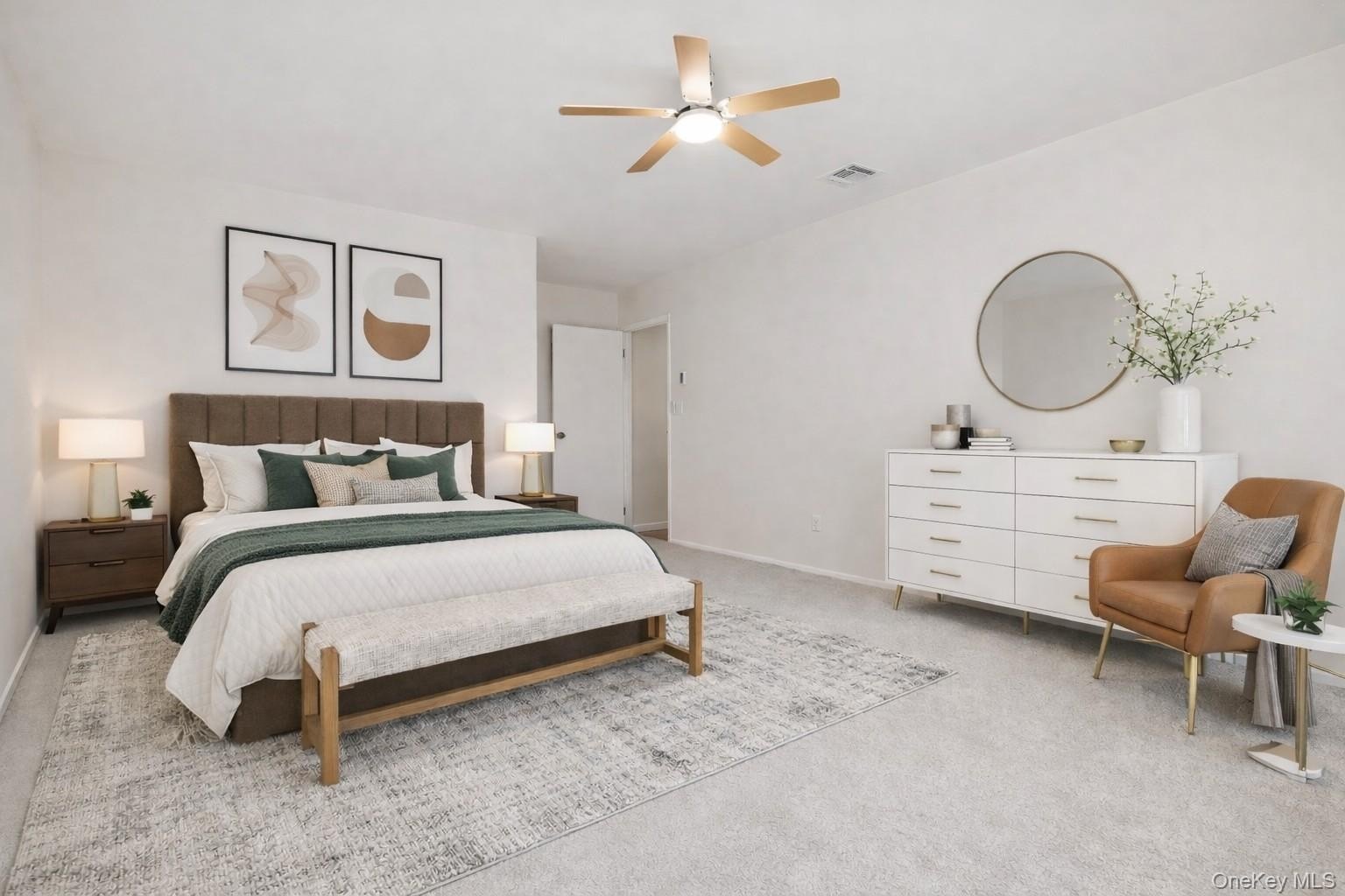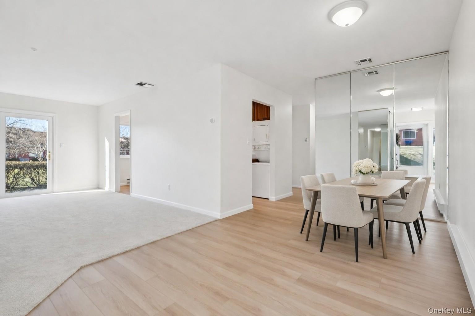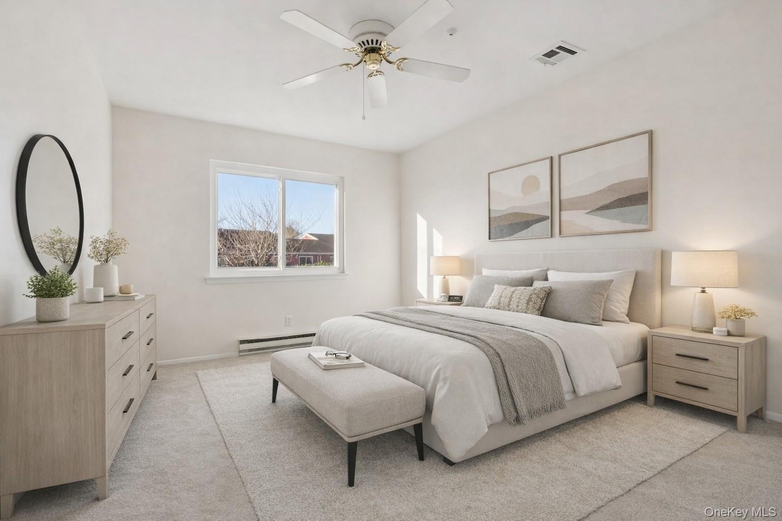 Rare End-Unit Ranch with Garage in the Desirable 55+ Community of Fairfield at St. James! This move-in-ready home offers comfortable and convenient living with a formal dining room and a spacious living room featuring sliders to the rear patio, where you can enjoy lush landscaped grounds, sunny southern exposure, and beautiful cherry trees! The updated kitchen features Silestone countertops, wood cabinetry, and a tile backsplash. Down the hallway, you'll find a pantry/utility closet, updated full bathroom, and two generously sized bedrooms, including a primary en-suite, both with California Closet systems. The home is equipped with York central air conditioning and electric baseboard heating for year-round comfort. Additional updates include an updated electric panel, new carpeting, new vinyl flooring, a new dishwasher, and a new storm door. Residents enjoy outstanding amenities, including a clubhouse, indoor pool, two outdoor pools, fitness center, library, billiards, tennis, bocce, pickleball, and scenic walking trails.