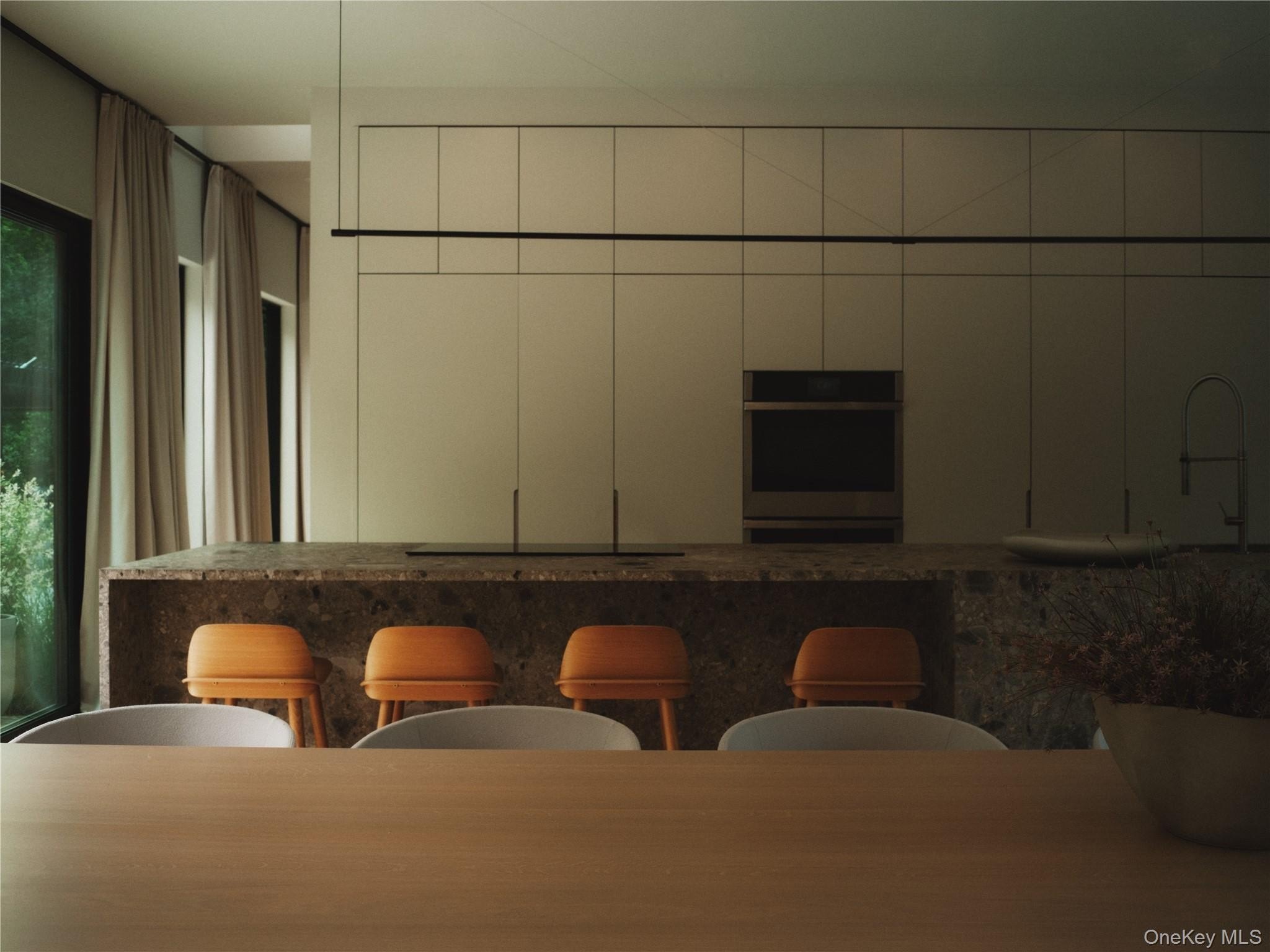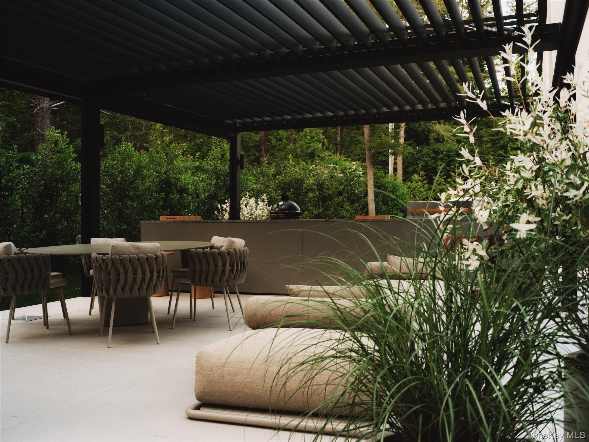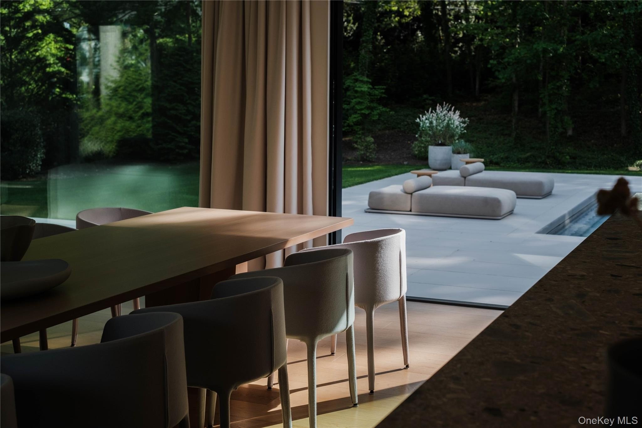 Discover a rare offering that blends modern luxury with spa-like serenity. This residence was designed to be both a retreat and a showpiece, combining high-end luxury finishes, seamless indoor-outdoor living, and tranquil natural surroundings. Walls of glass invite light and greenery into every room, creating a constant connection to nature. The open floor plan features a chef's kitchen with professional-grade appliances, custom cabinetry, and expansive island seating-ideal for both entertaining and everyday living. Living and dining spaces flow effortlessly to outdoor patios, where landscaped gardens and serene seating areas extend the home's livable footprint. The primary suite is a true sanctuary with floor-to-ceiling windows, spa-inspired bath with soaking tub and dual sided rainfall shower, with floor to ceiling windows overlooking lush grounds. Additional bedrooms offer the same level of comfort and style, ideal for guests or family. Every bathroom has been designed with European natural stone & micro-cement, luxury designer fixtures, and a focus on wellness and relaxation. Outdoors, curated landscaping and multiple gathering spaces set the stage for morning coffee, evening cocktails, or hosting under the stars. Enjoy a dip in the in-ground gunite, heated, saltwater pool surrounded by approximately 4,000 sq ft of patio space. Every corner of this property has been crafted to evoke calm, beauty, and a lifestyle of understated luxury. This is not just a home-it's an escape, ready to be lived in and loved every day.