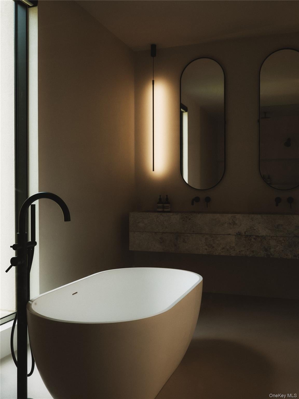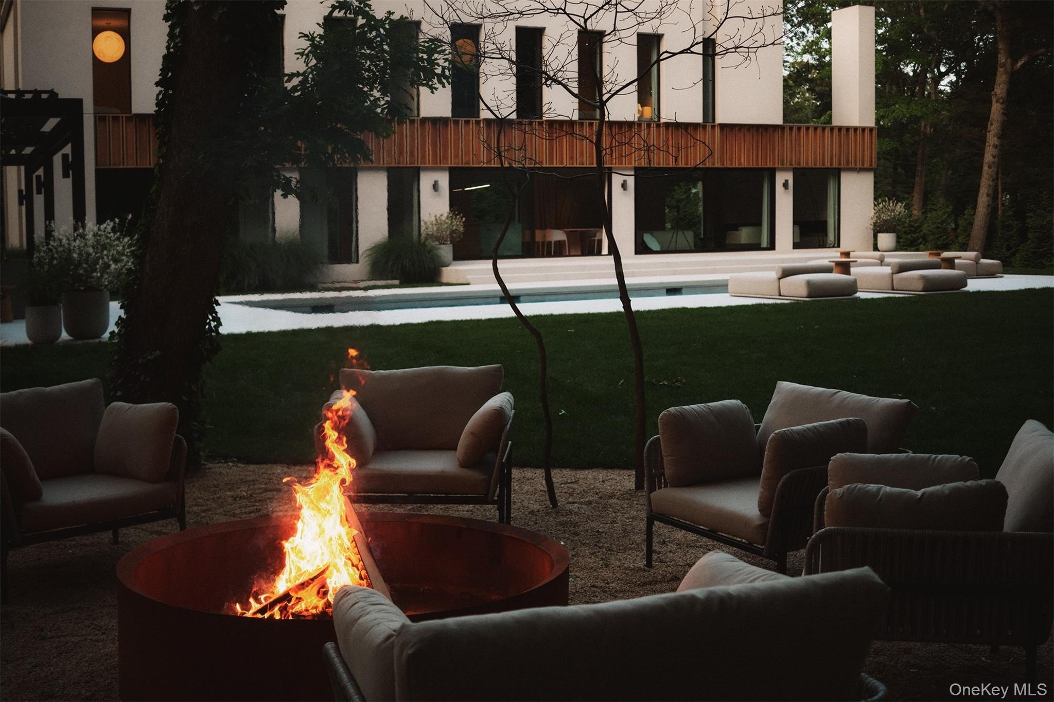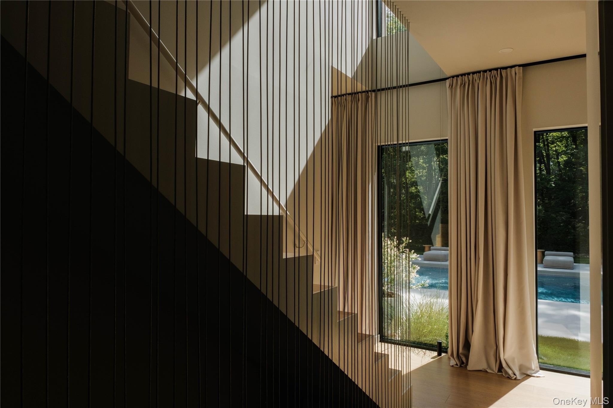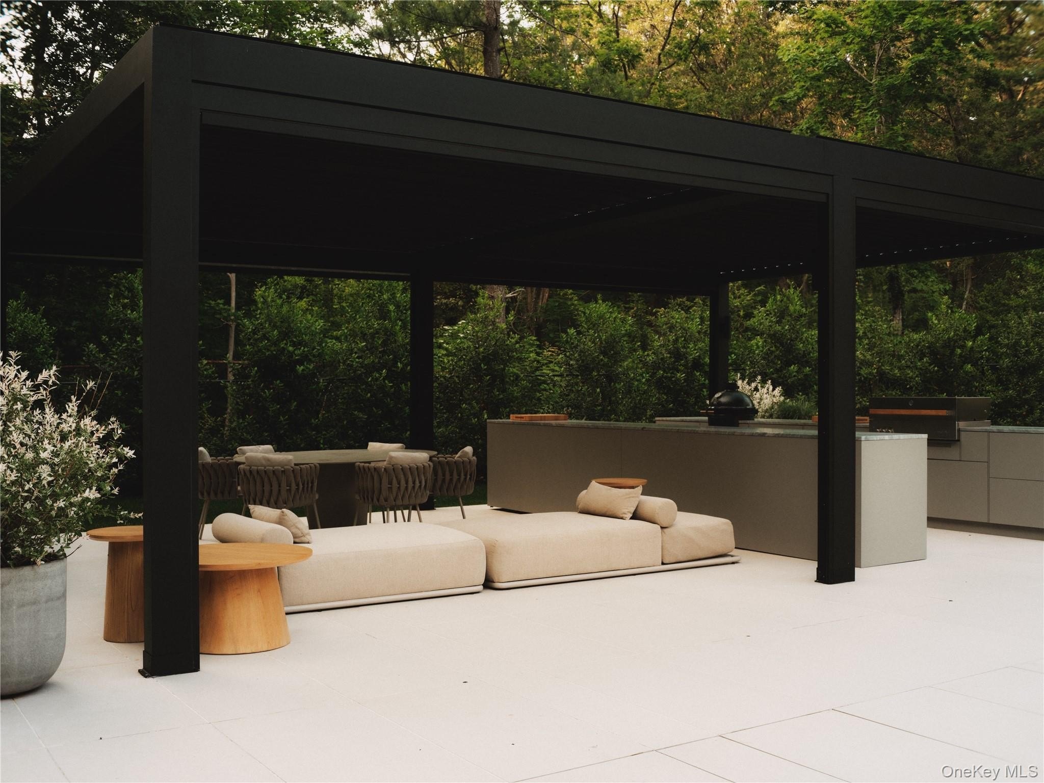 Discover a rare offering that blends modern luxury with spa-like serenity. This residence was designed to be both a retreat and a showpiece, combining high-end luxury finishes, seamless indoor-outdoor living, and tranquil natural surroundings. Walls of glass invite light and greenery into every room, creating a constant connection to nature. The open floor plan features a chef's kitchen with professional-grade appliances, custom cabinetry, and expansive island seating-ideal for both entertaining and everyday living. Living and dining spaces flow effortlessly to outdoor patios, where landscaped gardens and serene seating areas extend the home's livable footprint. The primary suite is a true sanctuary with floor-to-ceiling windows, spa-inspired bath with soaking tub and dual sided rainfall shower, with floor to ceiling windows overlooking lush grounds. Additional bedrooms offer the same level of comfort and style, ideal for guests or family. Every bathroom has been designed with European natural stone & micro-cement, luxury designer fixtures, and a focus on wellness and relaxation. Outdoors, curated landscaping and multiple gathering spaces set the stage for morning coffee, evening cocktails, or hosting under the stars. Enjoy a dip in the in-ground gunite, heated, saltwater pool surrounded by approximately 4,000 sq ft of patio space. Every corner of this property has been crafted to evoke calm, beauty, and a lifestyle of understated luxury. This is not just a home-it's an escape, ready to be lived in and loved every day.