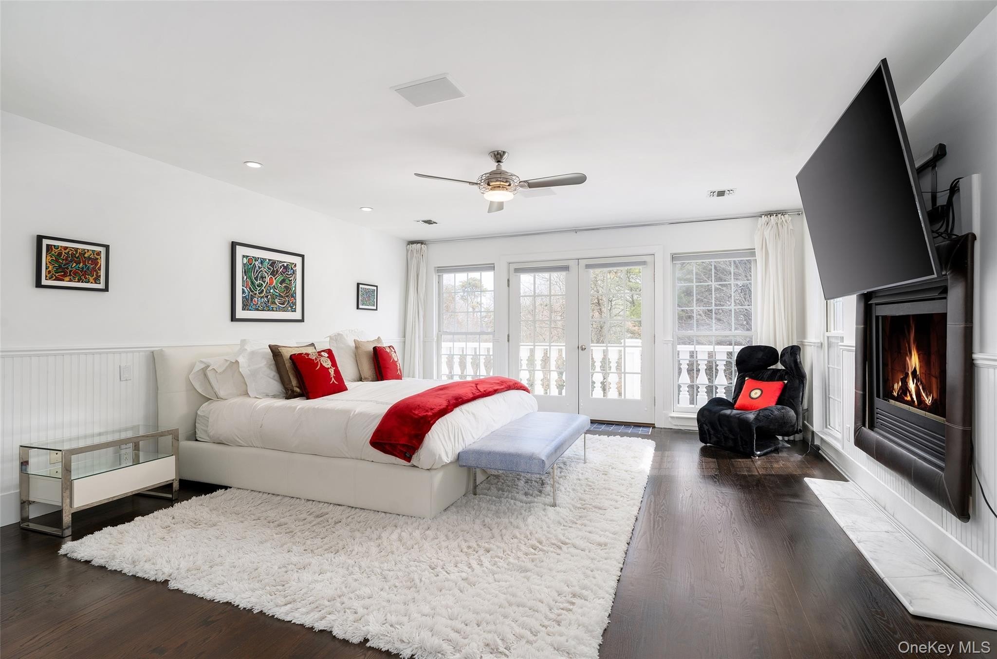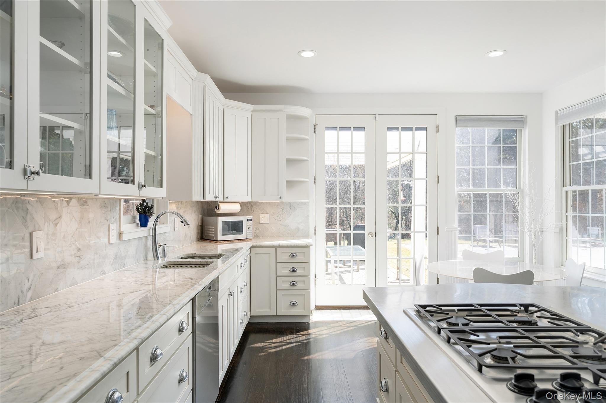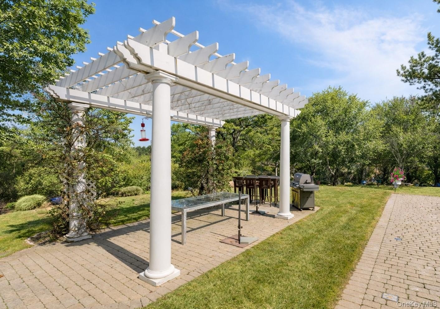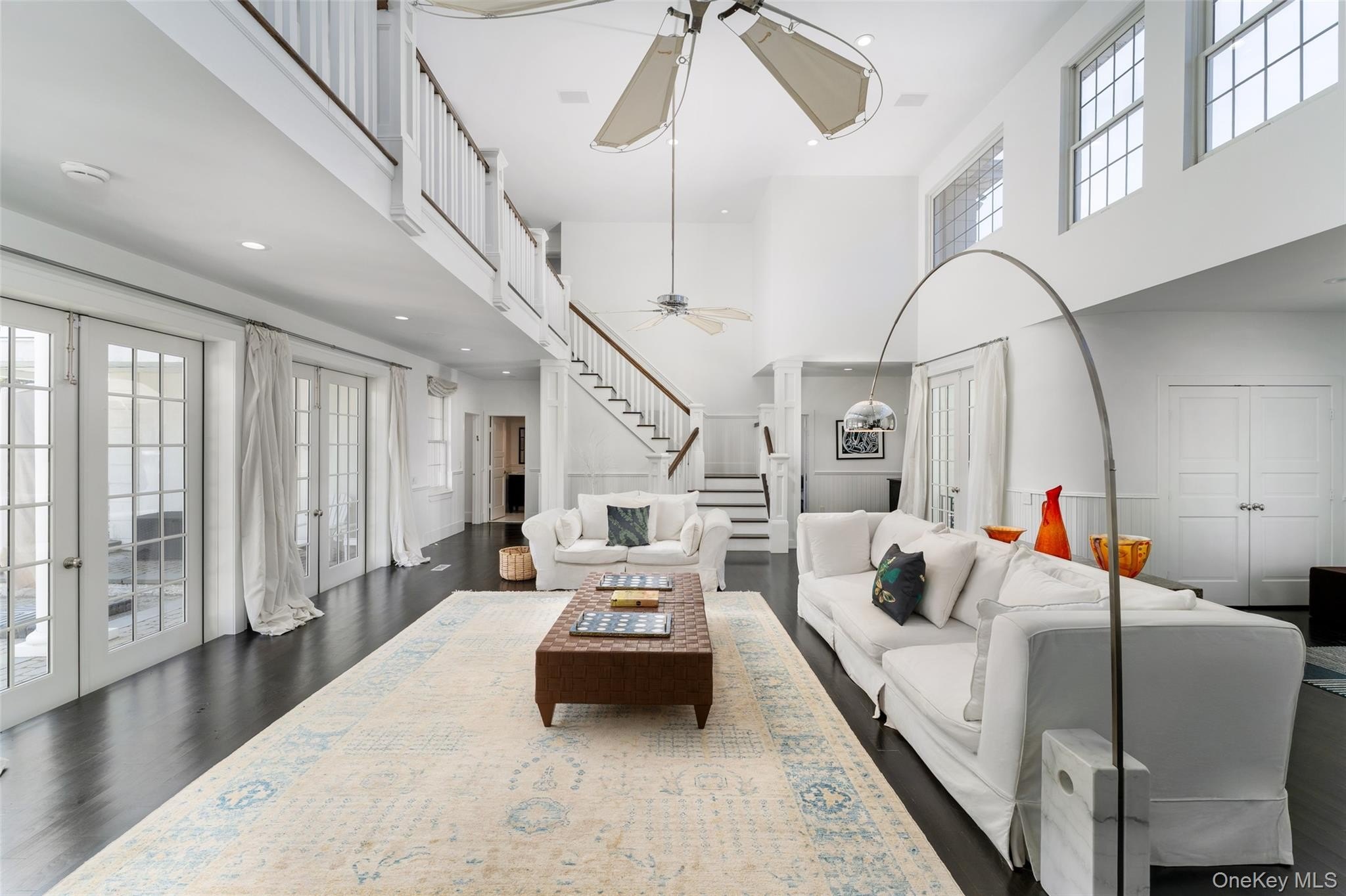 Welcome to 3 Polo Grounds Lane, a beautifully appointed, impeccably maintained, move in condition, and manicured grounds Mediterranean-inspired estate set on a full acre in the heart of East Quogue. Located in a cul de sac private neighborhood designed and constructed in the highest standards by a builder as his summer Hamptons retreat. The home is surrounded on two sides with protected land where no one can build. It's offered for year around living or effortless Hamptons vacations. From the moment you enter the gracious open foyer, the home unfolds into an expansive, light-filled great living room with soaring 20-foot ceilings and a dramatic wall of French doors to create a seamless connection to the outdoors that invites you to the oversized heated pool, expansive paved terraces surrounded by peace, and lush mature landscaping, and full-size all-weather tennis court. A striking double-sided gas fireplace anchors both the open foyer and living room as well as the formal dining area, setting an inviting yet sophisticated tone for intimate gatherings and grand scale entertaining alike. Formal dining room is a generously proportioned room with a fireplace and French doors that overlooks the garden and has great flow into the living room and kitchen. The state-of-the-art bright chefs eat-in kitchen is a true showpiece, thoughtfully designed with a large center island, marble countertops, backsplash, custom inset cabinetry, and a generous built-in pantry. A distinctive Italian painted sink adds a unique design element, while premium appliances from Viking, Thermador, and Miele deliver a chef-caliber experience. French doors open directly to al fresco dining, creating effortless indoor-outdoor flow. The first level features a stylish junior suite with a beautifully appointed full bath and direct French door access to the pool and outdoor entertaining areas. An additional room on this level-complete with a deep built-in closet and full bath-offers exceptional flexibility as a private office, den, or lounge. The upstairs is a dramatic bright, catwalk that overlooks the main living space below, enhancing the home's architectural openness. The private primary generously sized suite occupies its own wing and serves as a serene retreat, featuring a gas fireplace and a private deck with sweeping views of the pool, tennis court, and manicured grounds. Two spacious walk-in closets with custom built-ins and a light-filled bath with soaking tub, double vanity, and oversized shower complete the suite. Two additional guest bedrooms provide comfort and privacy-one with its own balcony-while sharing a well-appointed full bath. Juliet balconies throughout the home further enhance its Mediterranean character, adding elegance, charm, and an airy sense of openness. The expansive finished lower level offers a large recreation area, with a spacious lounge, gym area, laundry room, cedar closet, and abundant storage. Outdoors, the property lives like a private resort. It is bathed in sunlight all day for your Hamptons enjoyment. It features an expansive front and rear lawn that unfolds into a private oasis. Relax beside the oversized heated pool, beautifully illuminated for evening enjoyment, or entertain beneath the mature vine pergola. A private all-weather tennis court offers recreation at your doorstep, while specimen trees, perennial gardens, vegetable garden, lush plantings, and curated landscape lighting create a setting of complete privacy and year-round beauty. This smart home is designed for modern living, allowing you to control entrance to home, heating, air conditioning, lighting, alarm, cameras, oil, pool temperature, remotely. A separate oversized two-car garage with additional second-floor storage completes this exceptional offering. Ideally located just minutes from the Hamptons' renowned ocean beaches, highway, as well as nearby village shops and restaurants, 3 Polo Grounds is a must-see!