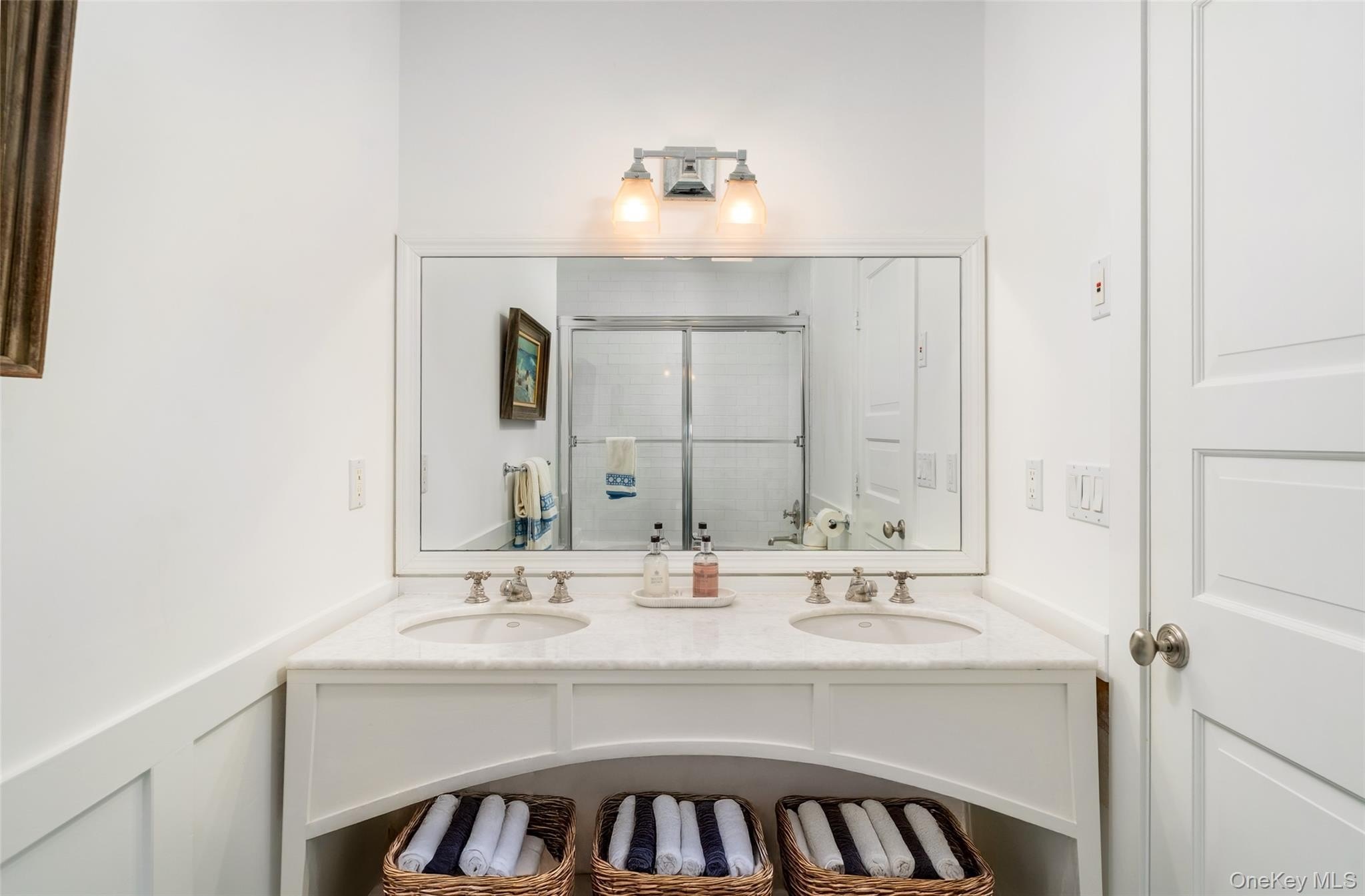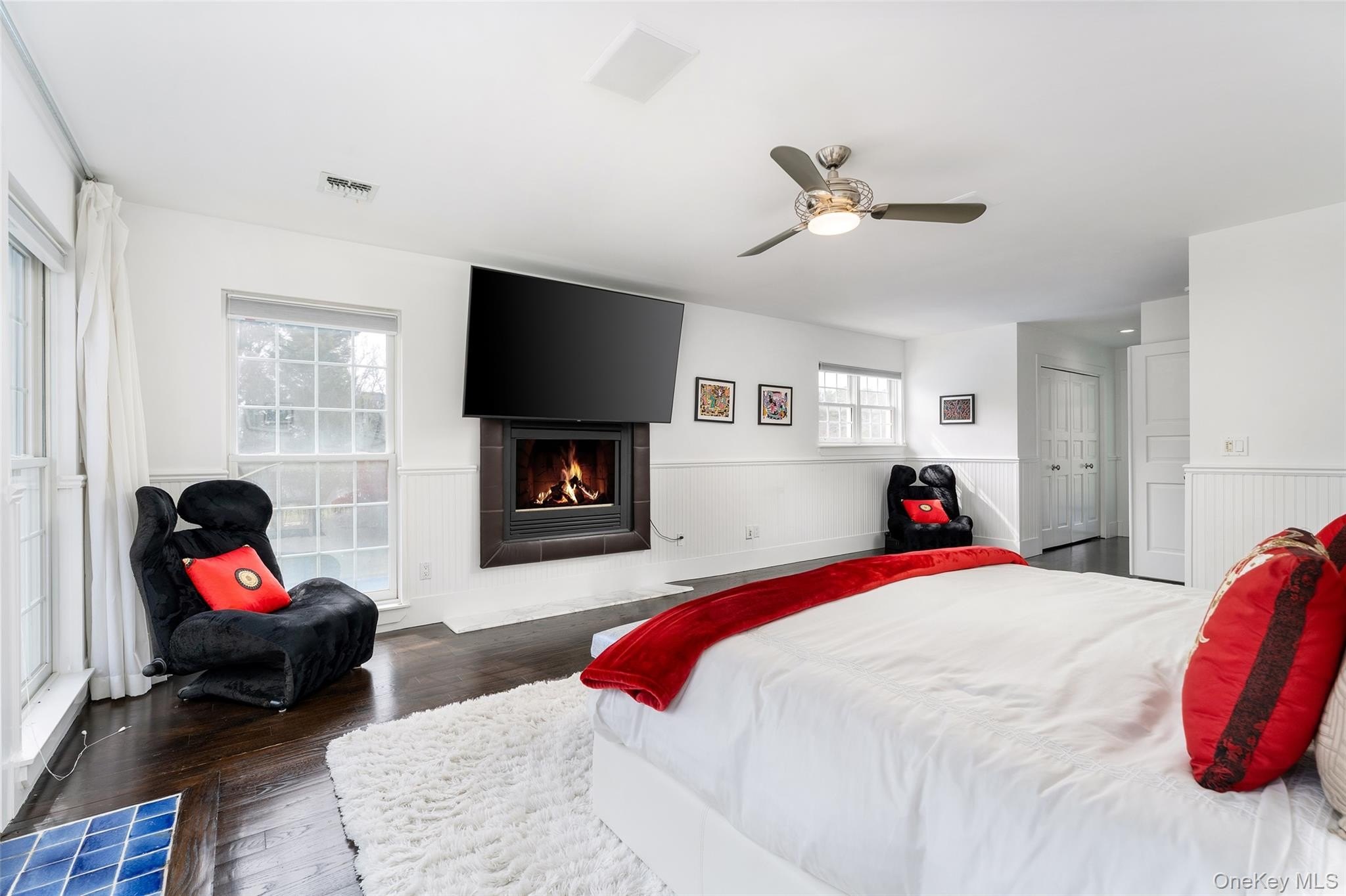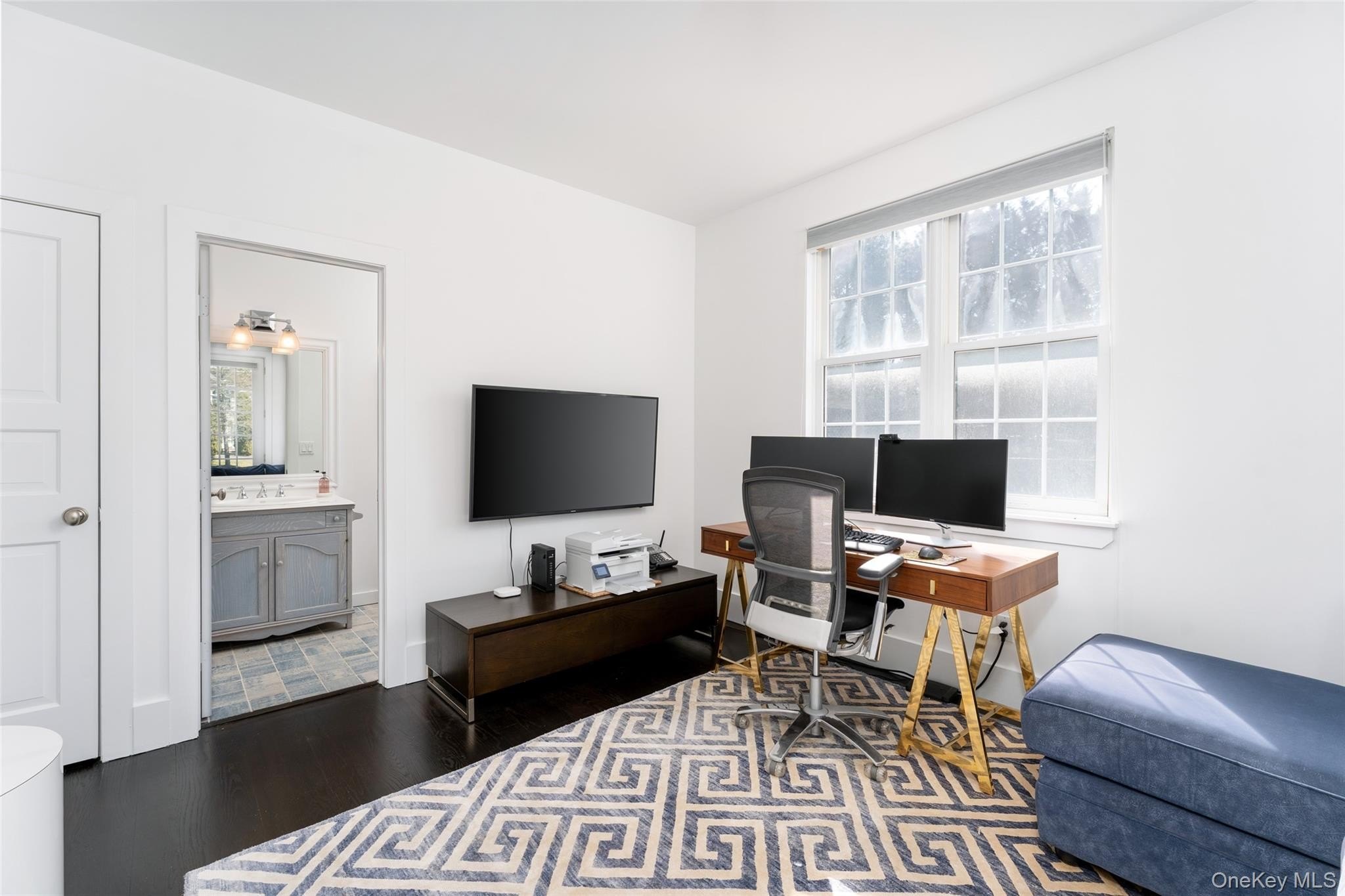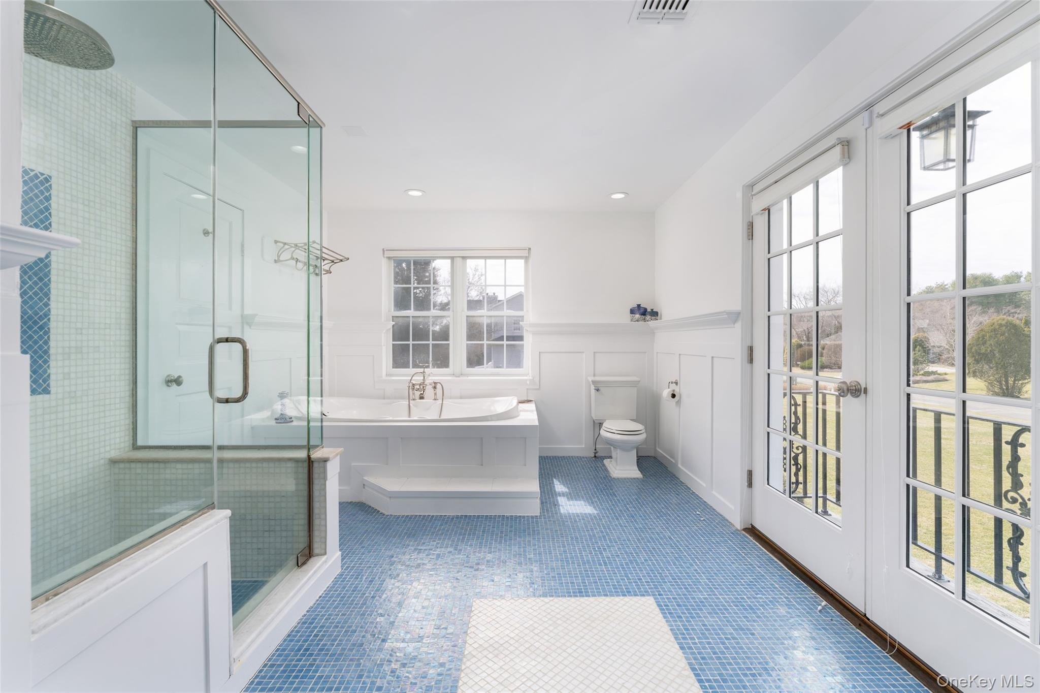 Welcome to 3 Polo Grounds Lane, a beautifully appointed, impeccably maintained, move in condition, and manicured grounds Mediterranean-inspired estate set on a full acre in the heart of East Quogue. Located in a cul de sac private neighborhood designed and constructed in the highest standards by a builder as his summer Hamptons retreat. The home is surrounded on two sides with protected land where no one can build. It's offered for year around living or effortless Hamptons vacations. From the moment you enter the gracious open foyer, the home unfolds into an expansive, light-filled great living room with soaring 20-foot ceilings and a dramatic wall of French doors to create a seamless connection to the outdoors that invites you to the oversized heated pool, expansive paved terraces surrounded by peace, and lush mature landscaping, and full-size all-weather tennis court. A striking double-sided gas fireplace anchors both the open foyer and living room as well as the formal dining area, setting an inviting yet sophisticated tone for intimate gatherings and grand scale entertaining alike. Formal dining room is a generously proportioned room with a fireplace and French doors that overlooks the garden and has great flow into the living room and kitchen. The state-of-the-art bright chefs eat-in kitchen is a true showpiece, thoughtfully designed with a large center island, marble countertops, backsplash, custom inset cabinetry, and a generous built-in pantry. A distinctive Italian painted sink adds a unique design element, while premium appliances from Viking, Thermador, and Miele deliver a chef-caliber experience. French doors open directly to al fresco dining, creating effortless indoor-outdoor flow. The first level features a stylish junior suite with a beautifully appointed full bath and direct French door access to the pool and outdoor entertaining areas. An additional room on this level-complete with a deep built-in closet and full bath-offers exceptional flexibility as a private office, den, or lounge. The upstairs is a dramatic bright, catwalk that overlooks the main living space below, enhancing the home's architectural openness. The private primary generously sized suite occupies its own wing and serves as a serene retreat, featuring a gas fireplace and a private deck with sweeping views of the pool, tennis court, and manicured grounds. Two spacious walk-in closets with custom built-ins and a light-filled bath with soaking tub, double vanity, and oversized shower complete the suite. Two additional guest bedrooms provide comfort and privacy-one with its own balcony-while sharing a well-appointed full bath. Juliet balconies throughout the home further enhance its Mediterranean character, adding elegance, charm, and an airy sense of openness. The expansive finished lower level offers a large recreation area, with a spacious lounge, gym area, laundry room, cedar closet, and abundant storage. Outdoors, the property lives like a private resort. It is bathed in sunlight all day for your Hamptons enjoyment. It features an expansive front and rear lawn that unfolds into a private oasis. Relax beside the oversized heated pool, beautifully illuminated for evening enjoyment, or entertain beneath the mature vine pergola. A private all-weather tennis court offers recreation at your doorstep, while specimen trees, perennial gardens, vegetable garden, lush plantings, and curated landscape lighting create a setting of complete privacy and year-round beauty. This smart home is designed for modern living, allowing you to control entrance to home, heating, air conditioning, lighting, alarm, cameras, oil, pool temperature, remotely. A separate oversized two-car garage with additional second-floor storage completes this exceptional offering. Ideally located just minutes from the Hamptons' renowned ocean beaches, highway, as well as nearby village shops and restaurants, 3 Polo Grounds is a must-see!