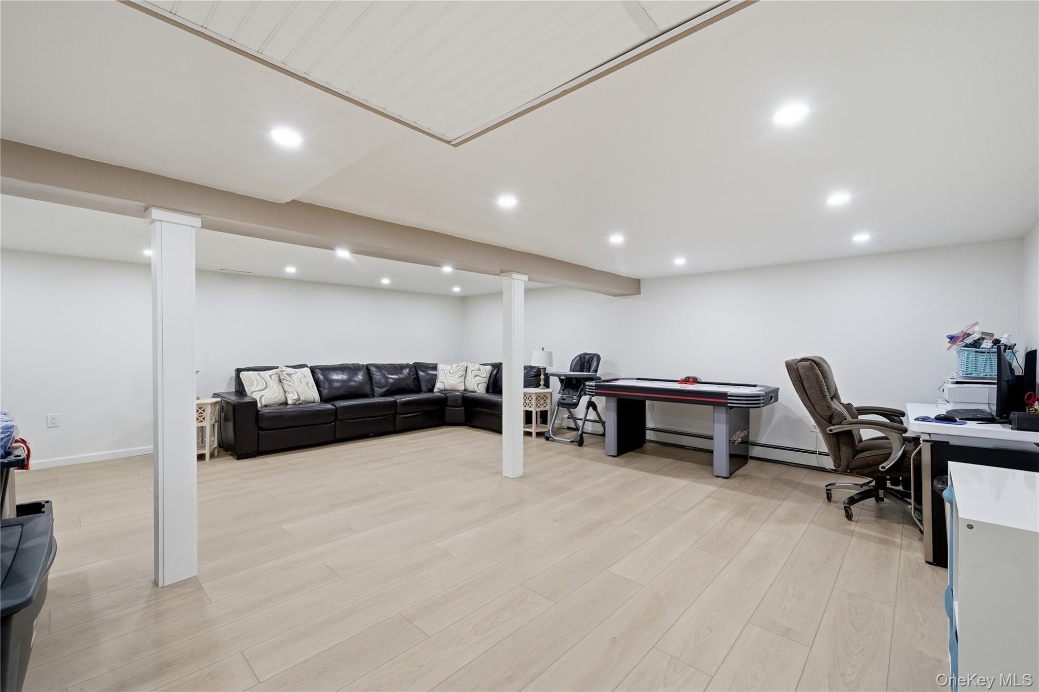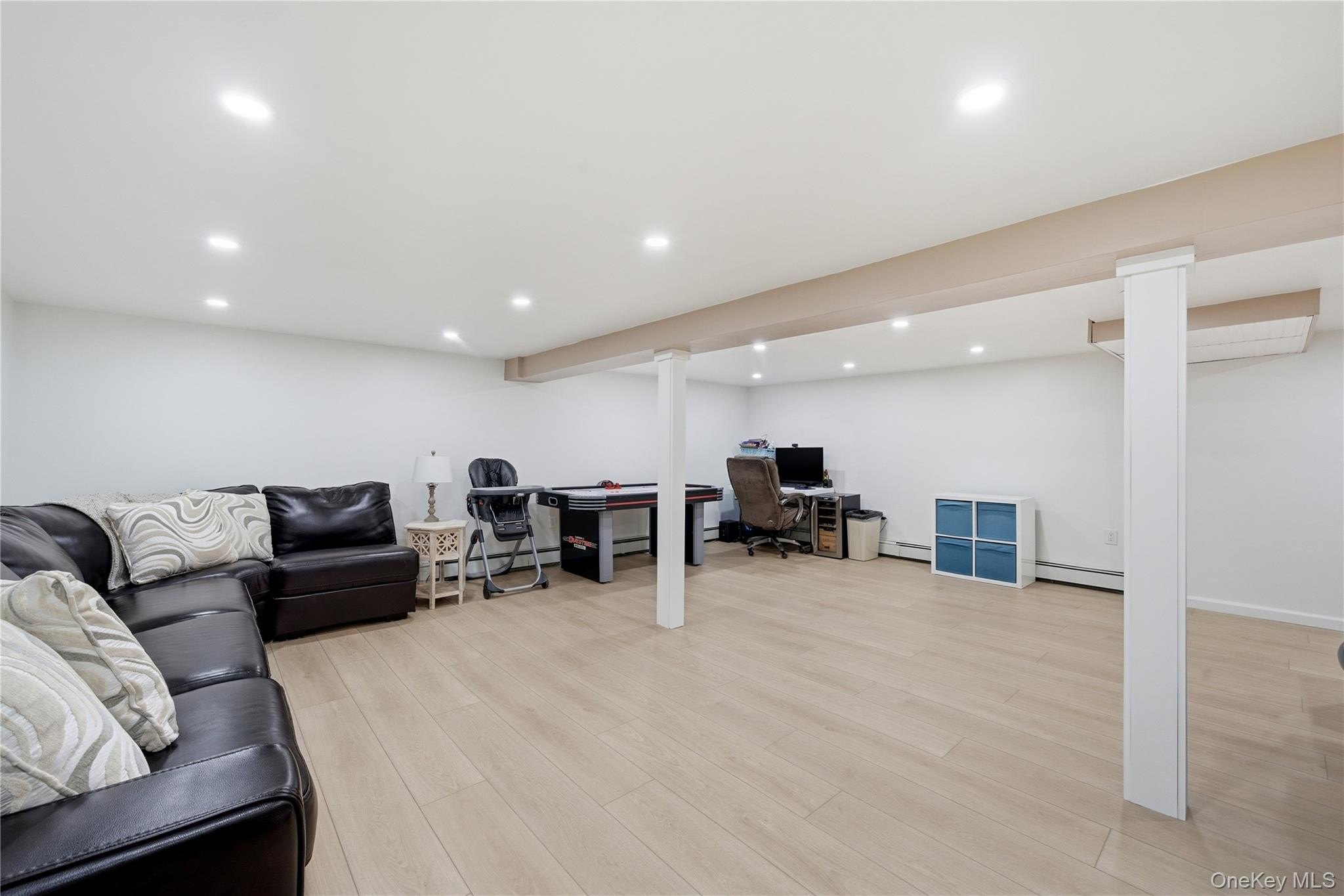 Welcome to your dream home in Lindenhurst Village, where every corner of this expanded ranch invites you to embrace a life of comfort and joy. This oversized ranch is a hidden gem, featuring an open floor plan that seamlessly connects a spacious kitchen-equipped with stainless steel appliances-to a casual dining area and a formal living room, making entertaining a breeze. Retreat to the separate den for relaxation. A fully finished basement expands your horizons, offering a versatile space for play, movies, or hobbies, all while providing plenty of storage for life's essentials. Step outside and find your personal paradise in the backyard, featuring a saltwater, solar-heated in-ground pool that glistens in the sun, complete with a soothing waterfall. Picture summer afternoons spent lounging in the attached screened porch, where gentle breezes and good conversations flow freely. With energy-efficient owned solar panels already in place, this home not only embraces sustainable living but also ensures ease and comfort. Just minutes away, the vibrant, bustling Village of Lindenhurst awaits, filled with delightful restaurants, parks, and beaches, all contributing to a lively community spirit. Welcome to the Lindy Bulldogs family, where your new lifestyle of warmth, connection, and enjoyment begins!