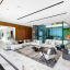 A magical collaboration of world-acclaimed architectural firms SAOTA and Luxford Group. One-of-a-kind and the only daylight lower floor permitted in Trousdale Estate with epic views on all floors. Enter to explosive views merged with warm and architectural features embracing the skyline with perfect vistas at every turn and from every room. Stunning main and chef kitchens with state-of-the-art Gaggenau appliances, Dada cabinetry, and a 14 ft leathered marble island. The chef's kitchen features a 16-burner Viking stove and separate entry to provide private service and exceptional cuisine from behind the scenes. Generous staff living quarters are also located on the bottom level. Commercial level equipment throughout the home which include HVAC and lighting systems. The primary suite combines a tucked and warm location for easy access for the owner with two baths, oversized designer wardrobe rooms/closets, and a fabulous large deck just for the master with a private spa, and incredible views throughout. The estate features 6 additional suites spaced throughout away from the master for guests or family for optimal relaxation and privacy. Breathtaking 20 ft cascading water wall drops through this architectural marvel and lands in pools of water with a 150-year-old Mediterranean olive tree imported from Italy. A wellness center with gym, steam and sauna, home theater, invisible electronic shades throughout, elevator, and 2,000-bottle wine cellar, five fireplaces throughout the residence and infinity edge pool, a true swimmer's pool racing through the skyline, with two additional firepits complete this truly timeless estate. Great for entertaining with two powder rooms on the main living area or for use as a family retreat. Within the highly coveted Beverly Hills School District.