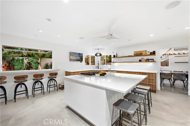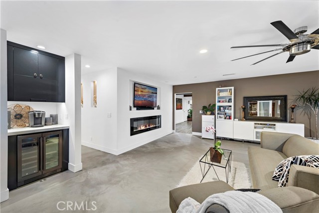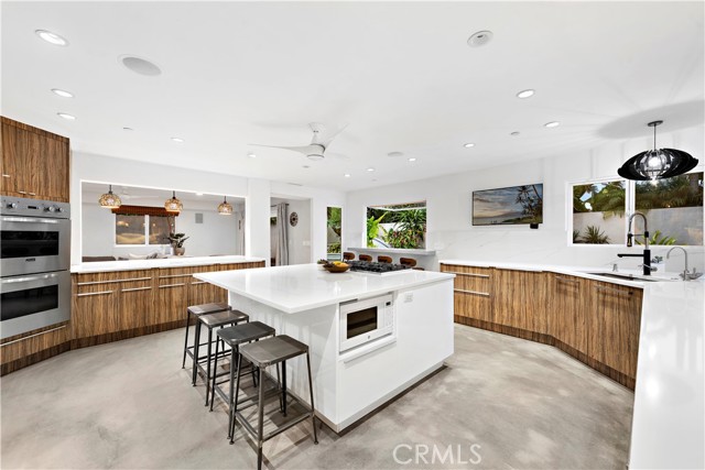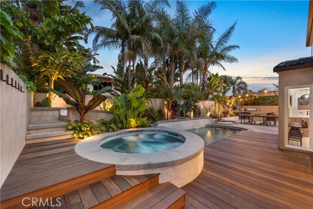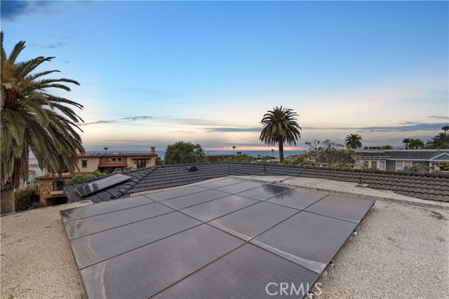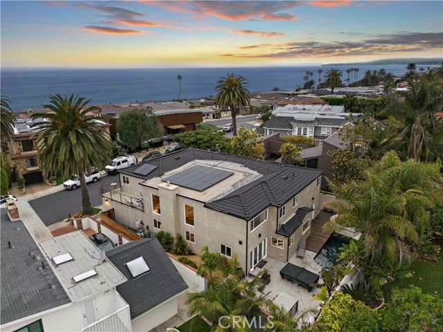 Exquisitely designed, luxurious ocean view residence located in the highly sought after Cyprus Shores neighborhood of San Clemente. The modern 5 bedroom home exudes warmth with an abundance of windows, high ceilings, and the incorporation of natural and unique textures throughout. The large open concept floorplan offers an impressive gourmet Kitchen with top of the line appliances and bar seating overlooking the pool, a spacious Family Room, Dining Room and Living Room with an impressive floor to ceiling fireplace, downstairs en suite bedroom, and four bedrooms upstairs including the handsome Master Retreat. Step outside to the dreamiest backyard complete with a custom black bottom pool and spa with waterfalls and waterslide, built in concrete firepit and seating area, and custom built in BBQ area with an extra large bar, wine fridge, ice box, and dual kegs. Both side yards are oversized and extremely functional with pool equipment, dog run, and trash area on one side and an outdoor shower and surfboard/wetsuit rack on the other. Access the second story via the stairs or elevator. The expansive Master Retreat is complete with an ocean view wrap around balcony, built in coffee and wine bar, and jaw dropping bathroom with soaking tub, walk in shower, and walk in closet. Enjoy year round sunsets and views of the Dana Point headland from the balcony. The three secondary bedrooms are all well sized, two share a jack and Jill bathroom, and the other is adjacent to a stunning hall bathroom. The three car garage is complete with built ins and epoxy flooring. The residence has paid in full solar panels and currently no electric bill. Truly appreciate all the community has to offer with both community pools and tennis courts down the street, a few minutes walk to the private beach access at North Gate or private beach access at Cottons Point South Gate, and privacy with the 24 hour guard gated access. Ride to Trestles in less than 10 minutes or head to downtown San Clemente to shop and dine. Don’t miss the opportunity to own a spectacular house at the beach!