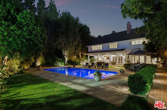 Welcome to the reimagined Amestoy Tennis Court Estate, offering an unparalleled sense of seclusion, luxury and serenity. The timeless Traditional estate is a truly exceptional property situated on more than half an acre of verdant grounds surrounded by mature trees. This magnificent home has been recently updated to perfection, fusing understated elegance with modern conveniences for today's family. The dwelling boasts grand living interiors and expansive outdoor grounds, including impressive amenities such as a lighted champion-sized tennis court and a luxurious swimming pool set in private lush gardens. Upon entering the gated property, you are greeted by a dramatic foyer featuring a grand chandelier and sweeping views to the garden and pool. The dining, living, and family room include a library and adjoin through the foyer to create a seamless elegant flow.The immense living room offers a wealth of natural light and picturesque garden views thanks to a series of elegant french doors. A grand fireplace anchors the room setting the tone for entertaining with warmth and sophistication. The adjoining family room is the focal point of the home, offering rich wood paneled walls, original brick fireplace, and wet bar with seating. Double french doors beckon you to step into the lush outdoor living area, the perfect space to host casual gatherings, moonlit al fresco dinners, or simply enjoy the coveted indoor-outdoor lifestyle in your everyday routine.Indulge your culinary passions and entertain with ease in the sun-drenched eat-in kitchen, featuring custom cabinetry, top-of-the-line Sub Zero and Viking appliances, prep island, and breakfast bar. The walk-in pantry offers plenty of storage and easy access to your family favorites. The most discerning home chefs will feel right at home in this opulent kitchen.An expansive staircase leads to the upper level with four bedrooms. The primary suite is an exceptional retreat of its own, boasting an expansive relaxing area with fireplace, custom designed walk-in closet, and ensuite with walk-in shower and soaking tub. The additional guest rooms include two spacious bedrooms adjoined by a jack and jill bath, and an additional ensuite. The fifth bedroom is conveniently located on the first floor, offering privacy for guests or use as a home office.The finished three car garage will delight any auto-enthusiast while offering plenty of storage for family needs. Additional parking located in the gated motor court. Each room and space of this stunning home has been carefully thought-out and transformed while keeping quality and timeless design in mind. The sheer luxury and attention to detail must be seen to be believed. Come discover this exceptional abode nestled in the highly coveted Amestoy Estates.