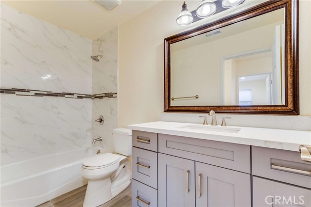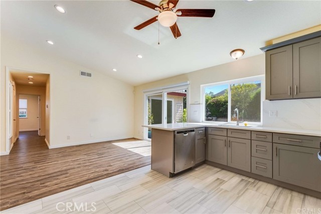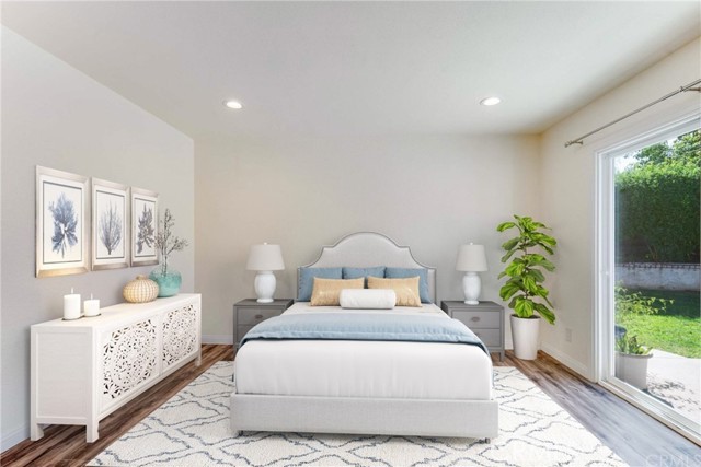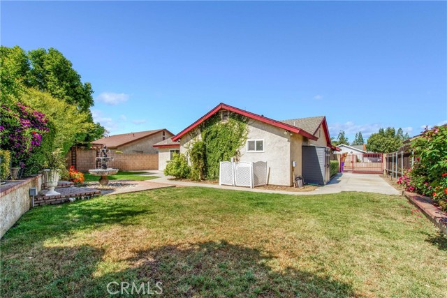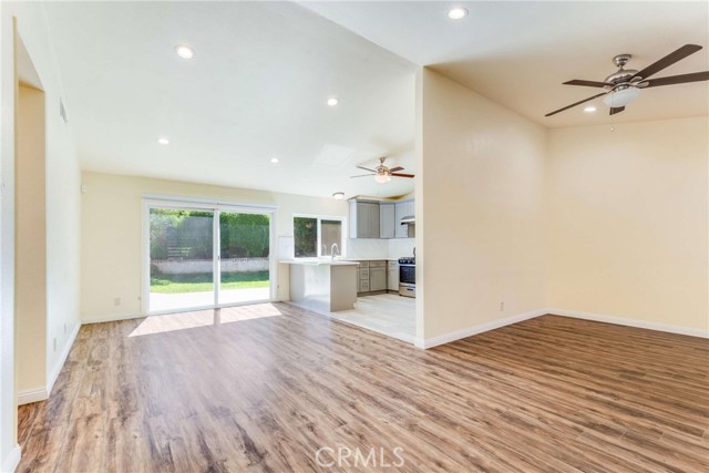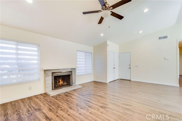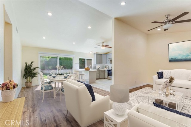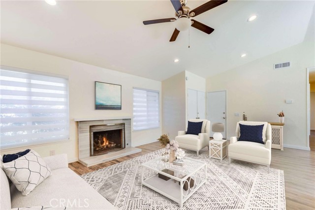 Welcome to this beautifully maintained home in Rancho Cucamonga! The spacious living room features a cozy fireplace, durable vinyl flooring, modern dual/Zebra shades, a ceiling fan, and recessed lighting. The kitchen boasts sleek quartz countertops, shaker-style cabinetry, stainless steel appliances, recessed lighting, a ceiling fan, and a convenient breakfast bar. The dining area seamlessly connects to the backyard patio, which is has vibrant flowering shrubs and a charming walkway leading to gated parking with direct garage access. This move-in-ready home has been well maintained and is located in a quiet, family-friendly neighborhood with highly rated schools. Enjoy the convenience of being close to shopping, dining, and entertainment options.