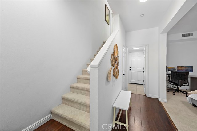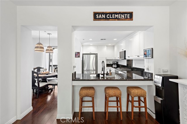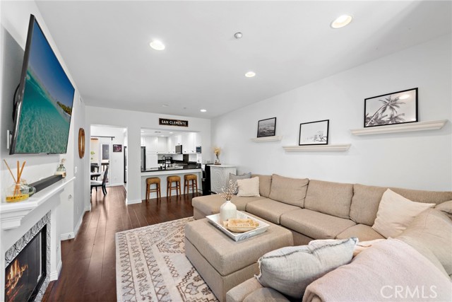 Nestled within the vibrant enclave of Alassio in Talega, this exquisite tri-level residence redefines modern comfort and convenience. Spanning approximately 1,631 square feet, the three-bedroom, two-and-a-half-bathroom home seamlessly blends thoughtful design with effortless elegance. The entry-level introduces a versatile space, currently serving as an office but easily adaptable as a guest bedroom or flexible retreat. A dedicated laundry room and direct access to a spacious two-car garage complete this level, offering both functionality and ease. Ascending to the second floor reveals an expansive great room concept bathed in natural light. Rich hardwood flooring leads you through the open-plan layout, where a stylish kitchen anchors the space. Crisp white panel cabinetry, polished granite countertops, and a matching backsplash create a refined aesthetic, complemented by stainless steel appliances and ample storage. Adjacent, the dining area and outdoor balcony invite effortless entertaining, while the living room—featuring built-in cabinetry, recessed lighting, and a cozy fireplace—serves as a warm and inviting focal point. The third level offers a private sanctuary, where plush carpeting enhances two spacious bedrooms, each boasting en-suite bathrooms. The primary suite impresses with dual closets, dual vanities, a separate water closet, and abundant natural light, creating a tranquil retreat. Residents of Alassio enjoy unparalleled access to an array of amenities, from the Talega Golf Club and community pools to scenic hiking trails and vibrant shopping and dining options, including Peet's Coffee and local favorites. With proximity to fitness centers and recreational facilities, this is more than a home—it's a lifestyle. Welcome to 34 Paseo Rosa, where luxury and livability converge in one of Talega's most coveted neighborhoods.