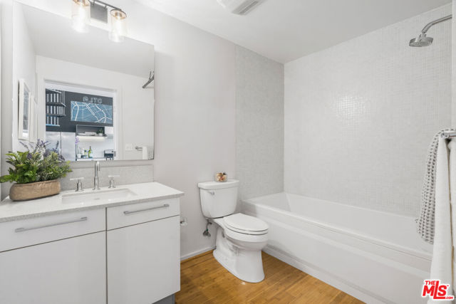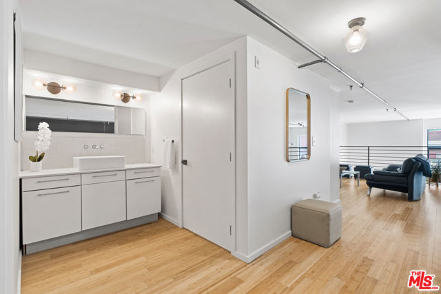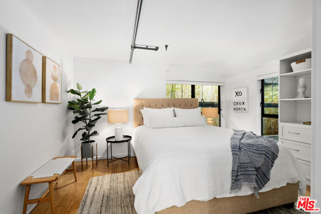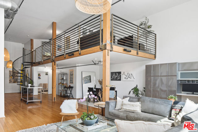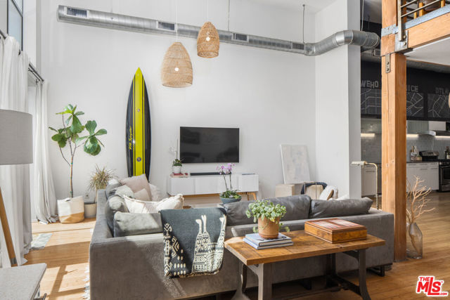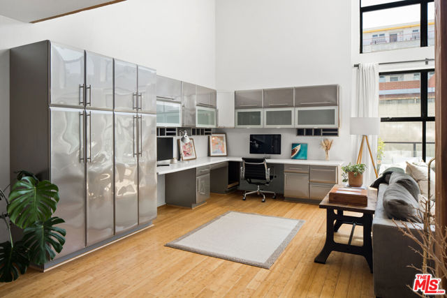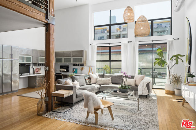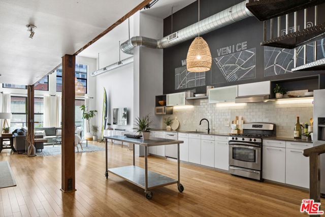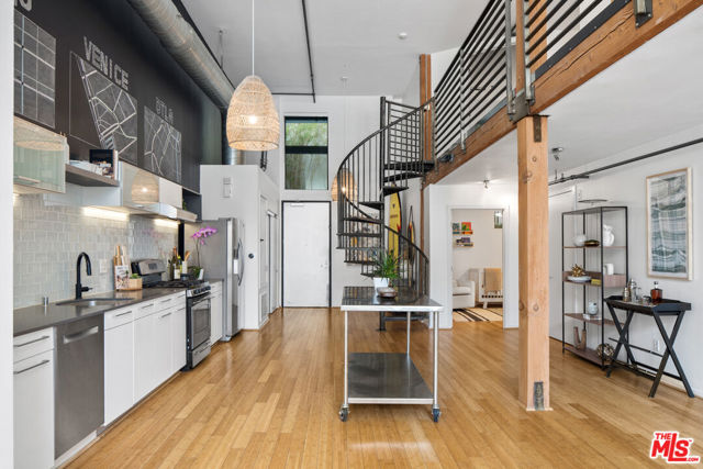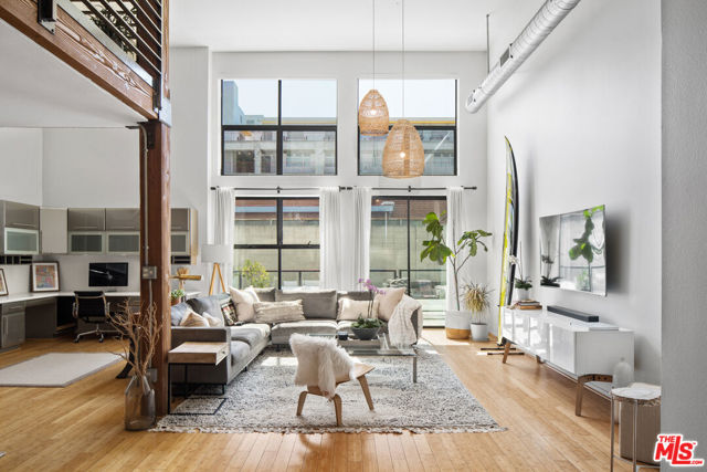 Welcome to this architectural gem in the heart of Marina del Rey's vibrant Arts District. This condo combines modern elegance with artistic flair, boasting 17-foot ceilings and a wall of windows that fill the space with an abundance of natural light. The large open-concept layout connects the contemporary kitchen, dining, and living areas, creating a perfect setting for both relaxation and entertaining. On the main level, you'll find a spacious enclosed bedroom and a sleek bathroom with a shower and oversized tub. A built-in office provides a functional workspace and ample storage. Upstairs, there's a generously sized primary bedroom with built-ins and a newly remodeled bathroom. The loft area offers additional flexibility, perfect for a home office, cozy living space, gym or even a third bedroom! Enjoy the prime location with easy access to local restaurants, shops, and entertainment. A short 10-minute walk leads you to the marina harbor center, home to KazuNori, Alfred's Coffee, Planta Cocina, and REI. Abbot Kinney Boulevard's renowned shops and eateries are also nearby. The condo comes with parking spaces equipped with an EV charger, offering both convenience and sustainability. Experience urban living at its best in this beautifully designed home.