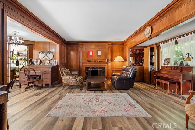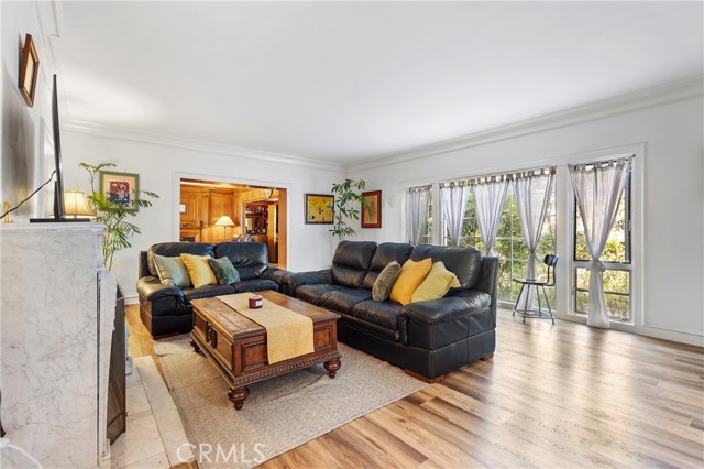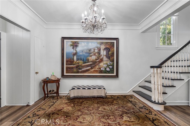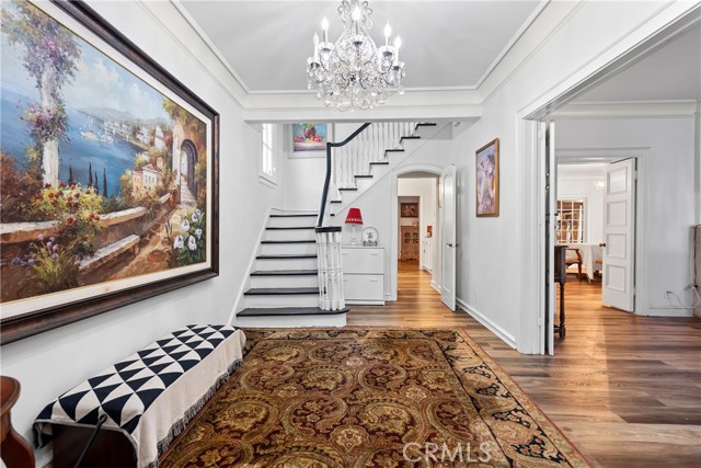 This stately 1919 Colonial Revival is located in the highly desirable Windsor Village HPOZ, just moments from Harold A. Henry Park, the Ebell Theater, and the upcoming Purple Line along Wilshire Blvd. Nestled on a spacious LAR3-zoned lot, the home offers potential for a variety of possibilities. The main level boasts grand public rooms, including a sunroom, a formal living room with a marble fireplace, and a large window framing the private front garden. The wood-paneled family room includes custom built-ins, a concealed wet bar, and a second marble fireplace. Upstairs, you'll find four generously sized bedrooms and two full bathrooms. The first floor also features a guest bedroom with an en-suite bath, plus an additional powder room off the family room. Ideal for both entertaining and comfortable family living.