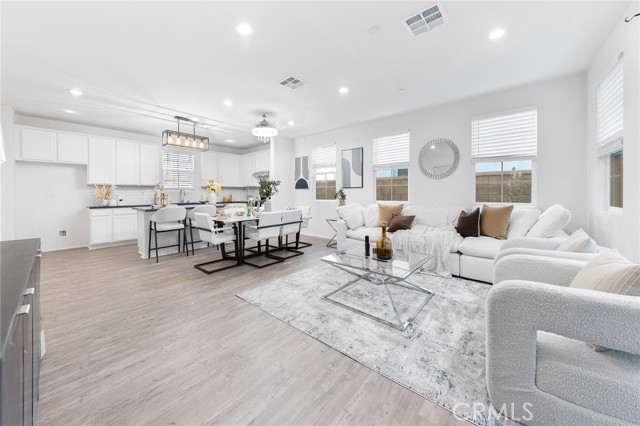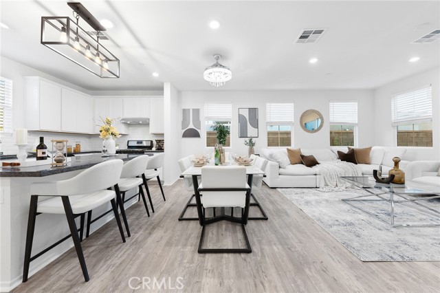 Welcome to the house in orchard Square community in chino . Developed by Merritage home with all the Upgrates . LOW PROPERTY TAX at just 1.1% and LOW HOA . NO Mello roos ! This charming residence offers a perfect blend of comfort, convenience, and modern living. Boasting 3 bedrooms and 2.5 bathrooms. this spacious home is ideal for families and those who enjoy entertaining. The interior features an open floor plan with abundant natural light, highlighting the stylish finishes throughout. The gourmet kitchen includes modern appliances, granite countertops, and ample cabinetry, making it a chef's dream. The living area flows seamlessly into the dining space, creating a warm and inviting atmosphere. Brand new vinyl flooring . The master suite offers a private retreat with an ensuite bathroom featuring dual sinks, a soaking tub, and a separate shower. Additional bedrooms are generously sized with large closets, perfect for family or guest accommodations. The community offers a range of amenities, including barbecue areas and a swimming pool. The home is ideally located with quick access to I-10 and 60 freeways, placing Costco, shopping malls, schools, and restaurants just a short drive away. Residents will appreciate the opportunity to swim at the community pool, and cook on the barbecues. This property is perfect as a primary residence or an investment opportunity. Great neighborhood , Don't miss out on this lucky house .