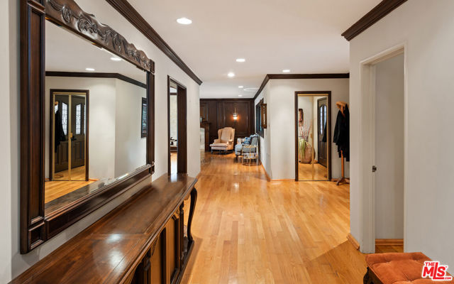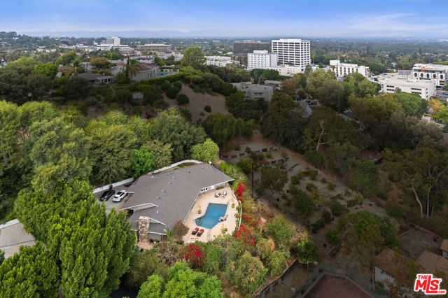 On the market for the first time in 60 years, and nestled within a private, gated enclave, this 4-bedroom, 5-bathroom mid-century California ranch estate spans a sprawling 0.81-acre lot, creating a rare sanctuary with boundless possibilities. Located at the end of a 100ft+, tree-lined, gated driveway reveals an expansive front motor court and an inviting residence with sweeping views across the valley. The home's layout embraces open, airy interiors that extend seamlessly to the impressive outdoors, revealing a resort-style backyard oasis with a large pool, a generously-sized level lawn, outdoor kitchen and BBQ area, fire pit, and abundant lounge spaces perfect for relaxing or hosting gatherings under the stars. With lush, mature landscaping and towering trees, privacy is paramount, offering a feeling of elevated tranquility that is difficult to replicate. Its commanding lot size and prime positioning, present a unique canvas with the potential for transformation. Whether reimagined as a modern architectural masterpiece or subtly enhanced to capture its timeless charm, the property's grand scale and breathtaking views provide a foundation for limitless design possibilities. Positioned in the highly desirable Lanai Road Elementary School District and just moments from Encino's finest dining, shopping, and nightlife, this estate offers both secluded luxury and prime accessibility to the Westside and local freeways.