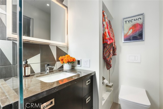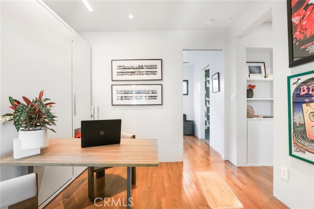 One of the lowest priced Single Family Homes in all of Santa Monica!!! Proudly introducing this rare, beautifully updated 1-bedroom, 1-bathroom California Bungalow jewel box nestled in the desirable Wilshire-Montana neighborhood of Santa Monica. With 440 square feet of meticulously designed space, this single-family home combines charm and modern convenience. Upon entry, you're greeted by a stylish foyer/front room that doubles as a laundry space, featuring a Miele washer and dryer. The completely renovated bathroom offers a spa-like experience with Italian tile backsplash, Dornbracht fixtures, a glass-enclosed shower with three different shower heads, quartzite countertops, LED-lit modern medicine cabinet, and a TOTO toilet for ultimate luxury. The updated kitchen is designed tastefully, boasting quartzite counters, SubZero refrigerator, Miele compact dishwasher, WOLF gas cooktop, built-in Miele speed convection oven with microwave functionality, heated tile floors, Fireclay handmade tile backsplash, Galley workstation sink and Waterstone drinking water faucet and filter system. The living room is a magical space opening onto and flowing into the outdoor entertaining spaces. The bedroom offers both functionality and style with hardwood floors, a transforming work table/Murphy bed, a ceiling fan, split cooling/heating unit and direct access to the serene backyard. Step outside to a spacious, landscaped backyard perfect for entertaining. Additional highlights include, two split heating/cooling units, upgraded electrical, tankless water heater, Lutron Caseta controlled lighting system, Arlo security system, new roof, and attic storage. With ample street permit parking and a prime location within walking distance to Montana Avenue trendy shops and dining, Wilshire Avenue restaurants, Santa Monica Beach, Palisades Park, and the 3rd Street Promenade, this bungalow offers both luxury and convenience in one of Santa Monica’s most sought-after areas.