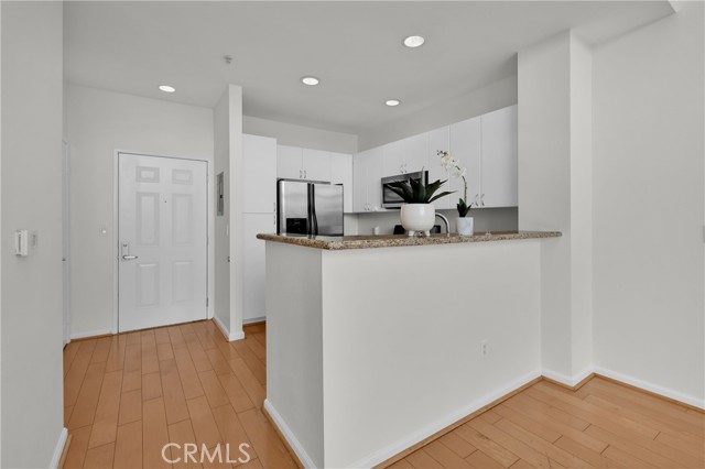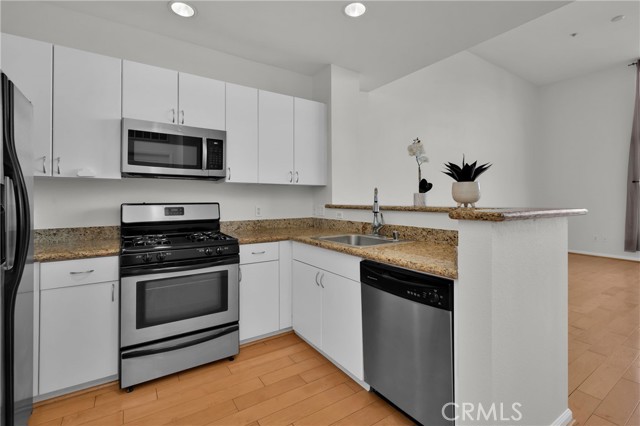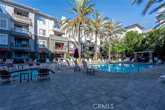 Experience luxury living at its finest in this stunning top-floor penthouse studio at Stadium Lofts located in Anaheim. This resort-style residence offers views of the swimming pool from its prime location. The unit boasts high ceilings and an abundance of natural light. The kitchen features granite countertops, stainless steel appliances, and a breakfast nook. Two large double doors lead to a balcony, perfect for both entertaining and relaxation. Additional features include: a laundry closet with newer washer & dryer, a walk-in closet, and convenient parking access. For those with electric vehicles, EV charging stations are available. The Stadium Lofts community provides resort-style amenities, including a clubhouse with a kitchen, meeting room, a recently renovated pool and spa, remodeled fitness center, sauna, indoor lounge with TV, outdoor lounge with fireplace, and beautifully landscaped courtyards with seating and BBQ areas. The HOA completed a renovation in early 2021, refreshing the exterior paint and re-plastering the pool. This unit, recognized by OCRegister as a model home for its pristine view, is centrally located in Anaheim's Platinum Triangle. You’ll be just minutes from Angel Stadium, Honda Center, Disneyland, The Garden Walk, Amtrak Station, Convention Center, The Grove, and The Outlets at Orange. With easy access to major freeways, parks, dining, shopping, and entertainment, this home is truly move-in ready. HOA fees cover water, trash, sewer, and Wi-Fi.