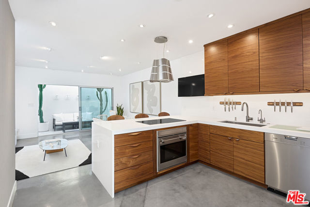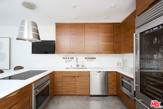 Incredible opportunity to own an exquisite home that is truly like a work of art. No stone was left unturned when this beautifully situated condo was remodeled; featuring Norwegian floor to ceiling pocket doors, solid wood custom kitchen cabinets, Wolf, Miele, and Viking appliances, Malm fireplace, and polished concrete floors throughout, the list of upgrades is endless and shows the moment you walk in the door. Situated just East of Lincoln in the prime Sunset Park neighborhood of Santa Monica, this home features two bedrooms, both with ensuite designer bathrooms, as well as a third bonus room that can be used as an office, gym, art studio, play room, or guest room, which also features in unit laundry. An attached, direct access private garage gives the feeling of living in a single family home, offering a sense of ease and comfort. The chef's kitchen opens to the dining and living area, making it the perfect space to entertain and host friends and family. Natural light fills the space from all angles, pouring in from your private outdoor patio that is a zen space to unwind and relax when the day is over. You can achieve your dream of having a peaceful haven to call home, all while being just a stone's throw to everything Santa Monica and Venice has to offer with close proximity to shops, restaurants, and the beach!