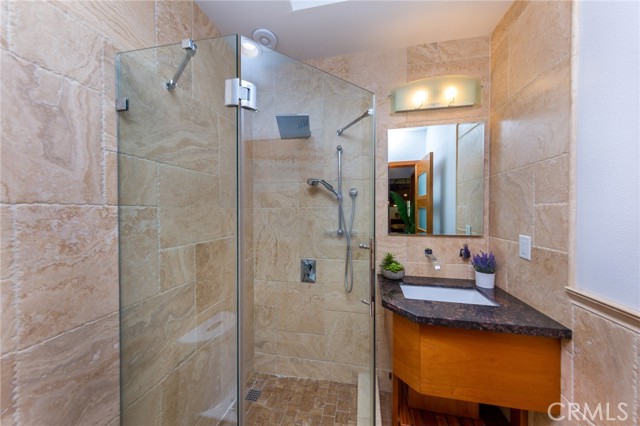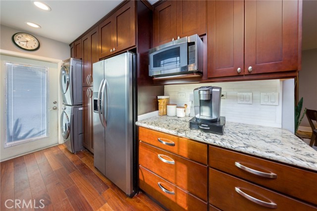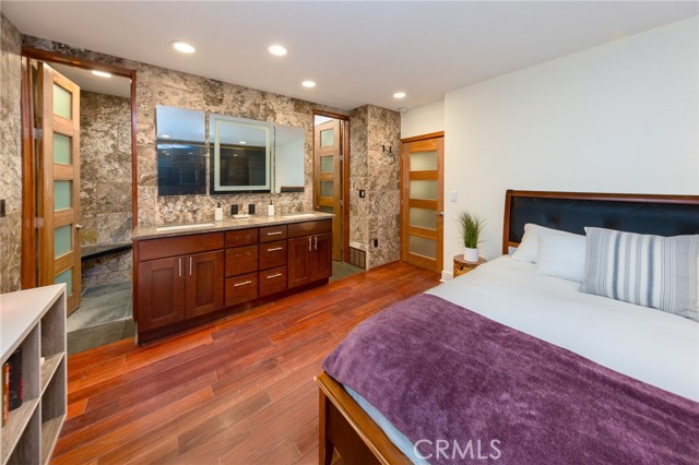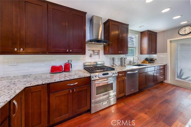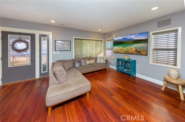 This charming and beautifully remodeled 2-bedroom, 2-bathroom home seamlessly blends modern style with thoughtful functionality. Centrally located in North Monrovia’s most desirable neighborhood near Greystone Ave. As you step inside, you'll be greeted by the elegant Mahogany hardwood floors with an inviting open-concept floor plan that effortlessly flows from the spacious living room—complete with a built-in sound system—into the dining area and kitchen. The kitchen is a chef’s dream, featuring abundant cabinetry, sleek granite countertops, and top-of-the-line stainless steel appliances that make meal prep a joy. The master suite is a true retreat, offering closet space and a spa-like en-suite bathroom with a dual-sink vanity and a stunning oversized shower with multiple modern shower rain heads, perfect for unwinding after a long day. Enjoy a coffee in the morning at the front porch or from the master bedroom deck overseeing the backyard. The expansive yard is an entertainer’s paradise, with mature fruit trees—including avocado, kumquat, and persimmon—that create a lush, private oasis. A cozy patio area provides the perfect setting for al fresco dining or simply enjoying the outdoors. The back lot has ample room to expand the home, add a pool/jacuzzi or create your dream ADU (Accessory Dwelling Unit) for additional living space or rental income. Other exceptional features include central air and heat, copper plumbing, sewer pvc plumbing, full insulation, dual-pane windows, a 10x10 basement for extra storage, and a single-car garage. Home’s unbeatable location puts you just minutes away from the vibrant Old Town Monrovia and conveniently located near hiking trails. Stroll to charming shops, coffeehouses, banks, restaurants, bars, and more! This home is the perfect blend of charm, character, and potential. Don’t miss the opportunity to own this delightful piece of Monrovia! A true gem waiting for you!