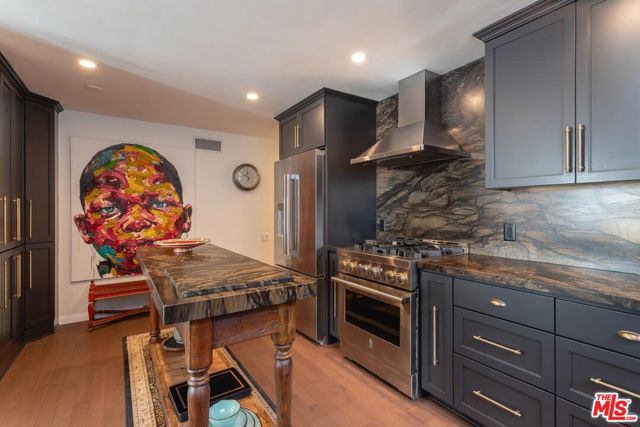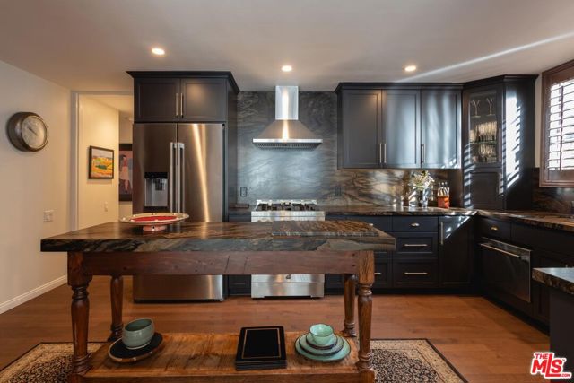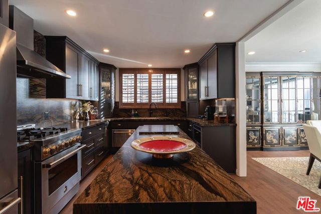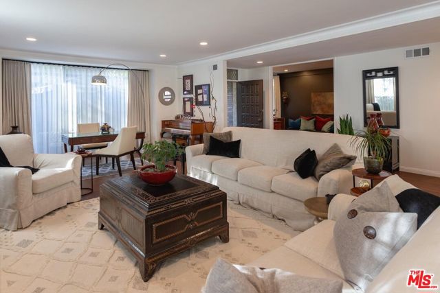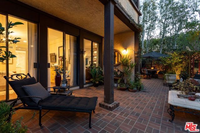 ONE OF THE MANY STANDOUT FEATURES OF THIS HOME IS IT'S EXPANSIVE, GATED, LUSH OUTDOOR GARDEN PATIO, CONSIDERED ONE OF THE FINEST IN THE COMPLEX. This impressive patio serves as a grand entrance, welcoming you before you reach the front door, and offers an ideal space for outdoor entertaining or serene relaxation-- a true highlight and defining attribute of this residence. The home, recently renovated, features two bedrooms plus an office/den, which could serve as a third bedroom. The single-level open floor plan is adorned with beautiful dark hardwood floors throughout in a Warm Walnut Matte Finish. The spacious master suite provides a luxurious retreat with a separate shower, bathtub, and walk-in closet. The living room is highlighted by a gas-burning fireplace, updated with Shogun Japanese bronzed tiles, adding a touch of sophistication. The kitchen is a chef's delight, featuring Tremendal Brown Leather Honed Quartzite countertops and backsplash, a Jenn Air Kitchen suite with a counter-depth refrigerator, gas stove/oven, drawer microwave, and a Fisher & Paykel drawer dishwasher. An extra-large stainless culinary sink and island/work table completes this culinary haven. The bathrooms are elegantly appointed with Kohler designer finish plumbing fixtures. The primary bedroom's en-suite bath showcases Bianco Congelato light leather finish Italian marble, while the second bedroom's en-suite bath features Asian Statuary honed Italian marble. The oversized two-car garage offers direct access to the living area above. The garage is equipped with a laundry facility and abundant storage options. Conveniently located within close proximity to Old Town Pasadena, renowned restaurants, grocery stores, the Norton Simon Museum, theaters, Caltech, and the world-famous Rose Bowl. This home is truly a must-see for those seeking a refined and serene lifestyle.