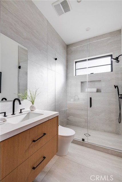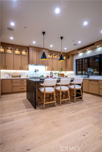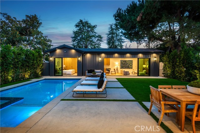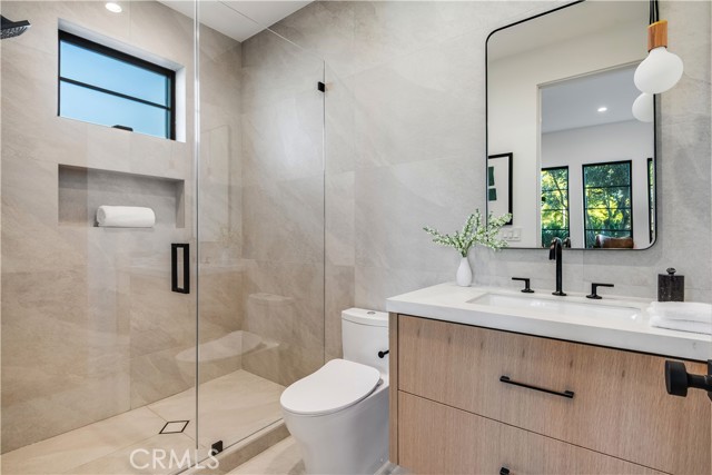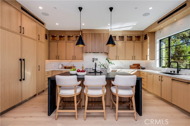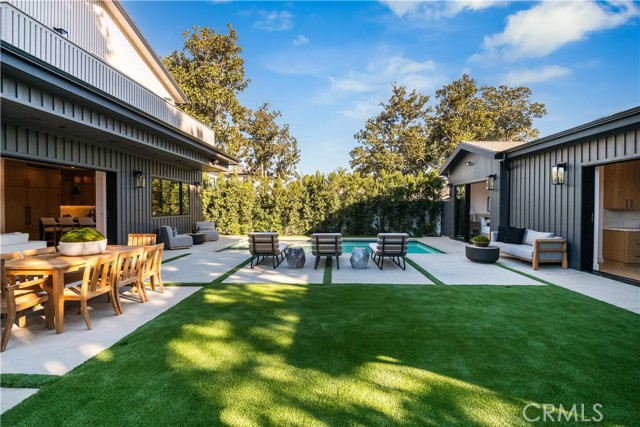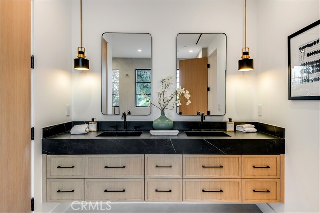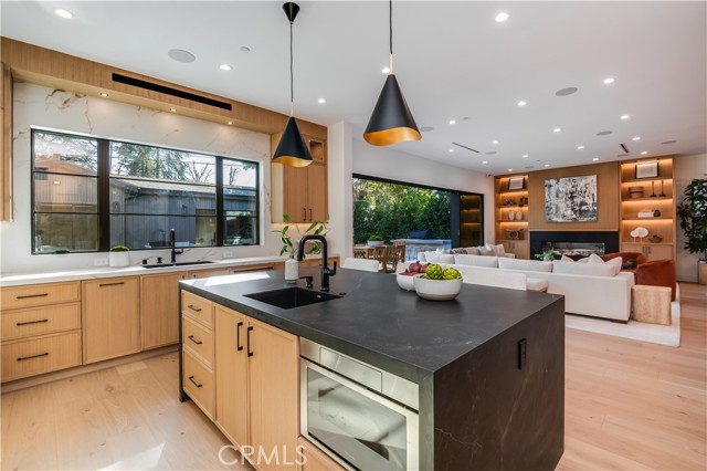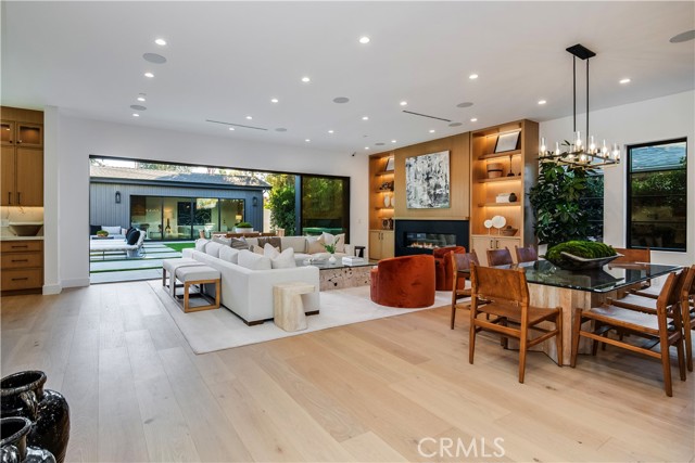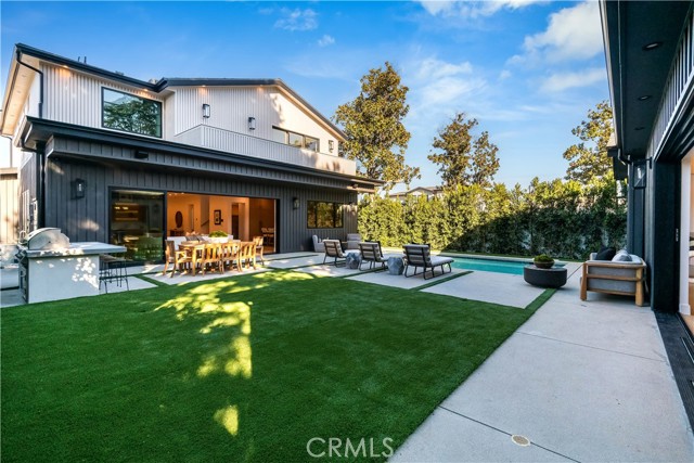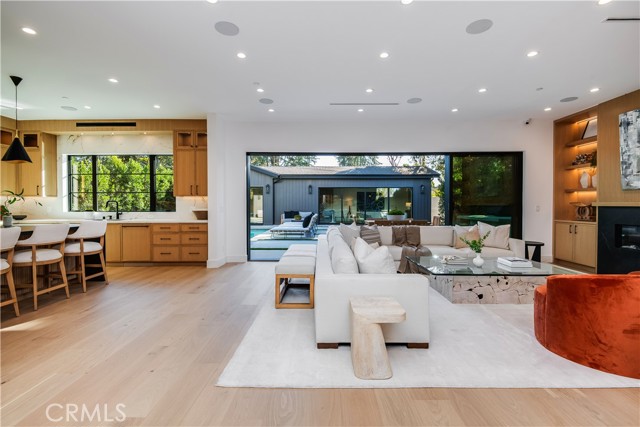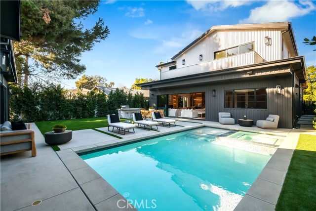 Experience modern luxury living in this stunning new construction estate, ideally situated on a gated corner lot in a quiet Sherman Oaks neighborhood. This exceptional property boasts a sprawling open-concept 5-bed, 6-bath main house and versatile 1-bed, 1-bath ADU. A chef’s dream, the gourmet kitchen comes equipped with top-of-the-line appliances, a waterfall island with a breakfast counter and walk-in pantry. Open to the kitchen, the living room offers a sleek fireplace framed by built-ins and an oversized sliding glass door that opens to create a seamless indoor-outdoor living experience, perfect for entertaining. Rounding out the main level is a formal dining room, ensuite bedroom, chic powder bathroom and mudroom. Upstairs, you’ll find four generously sized ensuite bedrooms, including the show-stopping primary suite. This luxurious retreat features a large private balcony, dual walk-in closets and a sumptuous bathroom that boasts a soaking tub, rainfall shower and double vanity. A dedicated laundry room completes the upper level. Enveloped by privacy hedges, the serene backyard retreat is highlighted by a sparkling pool/spa, built-in bbq with bar seating, low maintenance artificial turf yard and ample patio space for al fresco dining or lounging. The spacious detached ADU offers endless possibilities, consisting of a living room, kitchenette, 1-bed and 1-bath, utilize the space as an office, gym, rec room or separate living space for family/guests. Additional amenities include high ceilings throughout, a smart home system with integrated speakers, state-of-the-art security system, two-car garage and gated driveway. Located just moments from Westfield Fashion Square, Ventura Boulevard’s vibrant shopping and dining scene, and top private schools such as Notre Dame, Harvard-Westlake and Campbell Hall.
