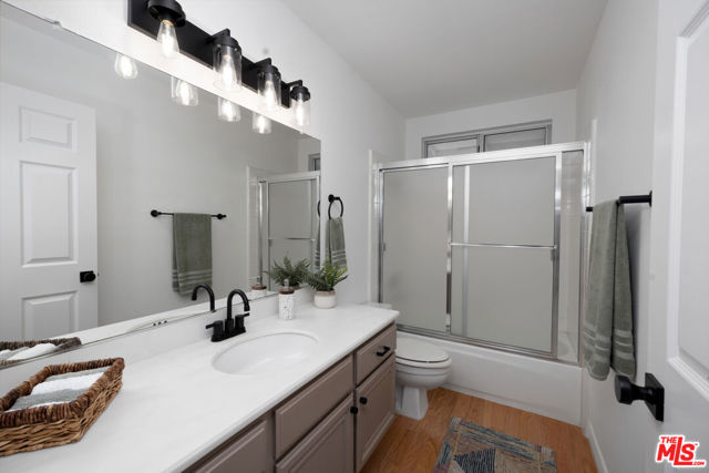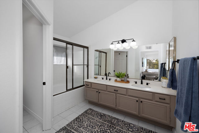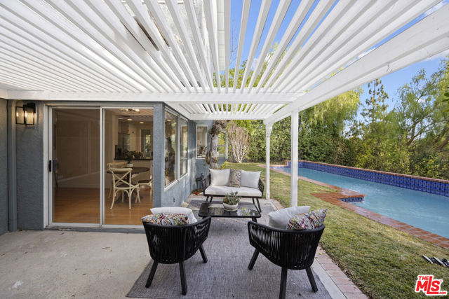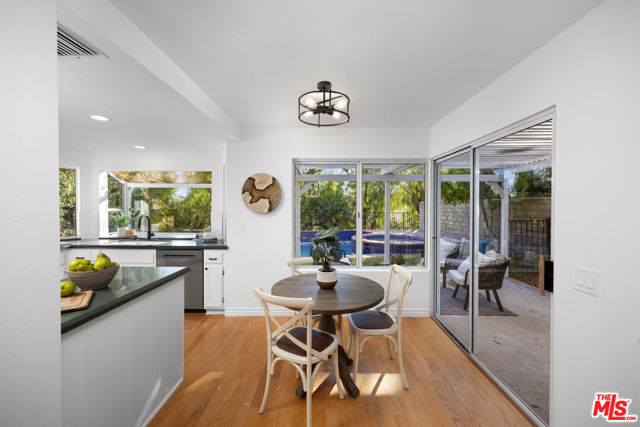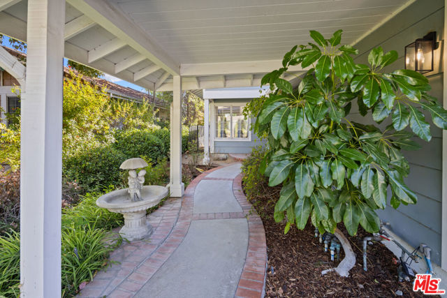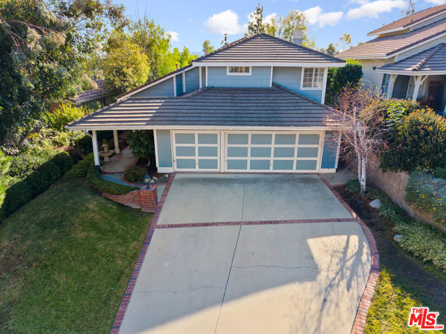 Stunning two-story contemporary traditional home offering the perfect blend of modern elegance, comfort, and charm! The inviting front walkway features a gently curving path of smooth concrete with classic brick edging, surrounded by lush landscaping that leads to the front door. Step inside to discover a family room with soaring vaulted ceilings and a bright, open floor plan filled with natural light from large, sun-drenched windows. Warm wood flooring seamlessly flows into the dining area, highlighted by a modern black farmhouse chandelier. The kitchen is a chef's delight, showcasing sleek white cabinetry, striking dark countertops, stainless steel appliances, an Artisan Frost ceramic tile backsplash, and a charming garden window that overlooks the backyard. The cozy breakfast nook provides breathtaking views of the sparkling pool and lush greenery through expansive windows and sliding glass doors, seamlessly blending indoor comfort with outdoor serenity. The stunning living room serves as the heart of the home, anchored by an elegant white brick fireplace that exudes warmth and character, creating the perfect ambiance for cozy evenings. Expansive windows frame serene backyard views, while the spacious yet intimate design makes this room ideal for both entertaining and relaxing, offering a harmonious blend of style, comfort, and natural light. Upstairs, the luxurious primary suite boasts vaulted ceilings, serene views, a spacious walk-in closet, and an en-suite bathroom featuring dual sinks and a walk-in shower/tub combination. Three additional bedrooms offer versatile space, including one beautifully staged as a chic home office, while a cozy loft with built-in cabinetry adds functional storage and workspace options. Tastefully updated bathrooms feature modern fixtures, and a dedicated laundry room ensures added convenience. Step outside to an entertainer's paradise with a covered patio beneath a charming pergola. The breathtaking backyard is complete with a sparkling swimming pool and spa lined with vibrant blue tile, surrounded by lush greenery, mature trees, and a tranquil grassy area. Offering unmatched privacy and serenity, this outdoor haven provides a true retreat-like experience. Combining thoughtful design, modern upgrades, and timeless charm, this exceptional home is the ultimate sanctuary for relaxing, entertaining, and enjoying the finest in Southern California living.