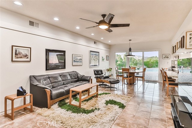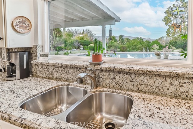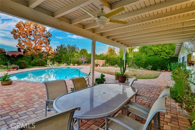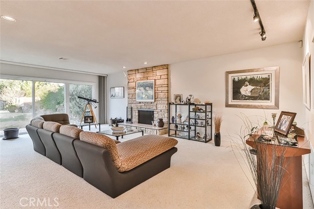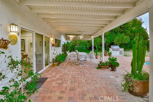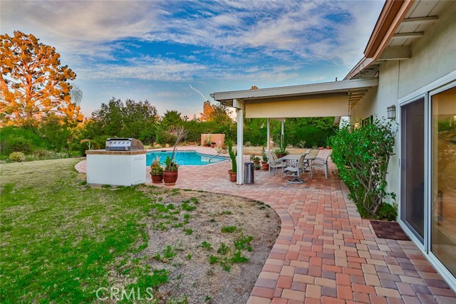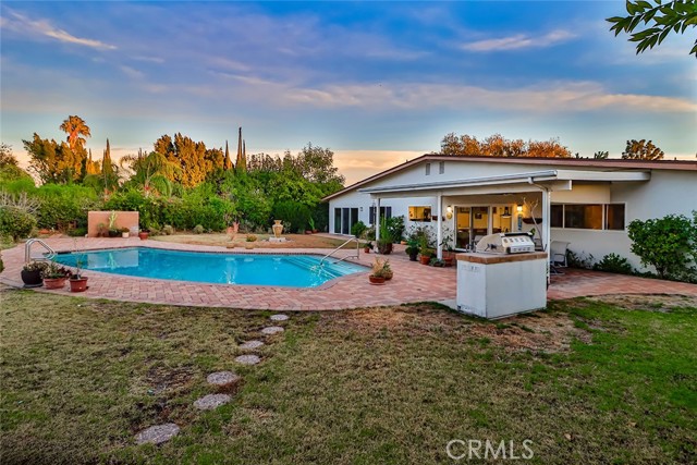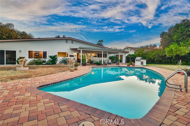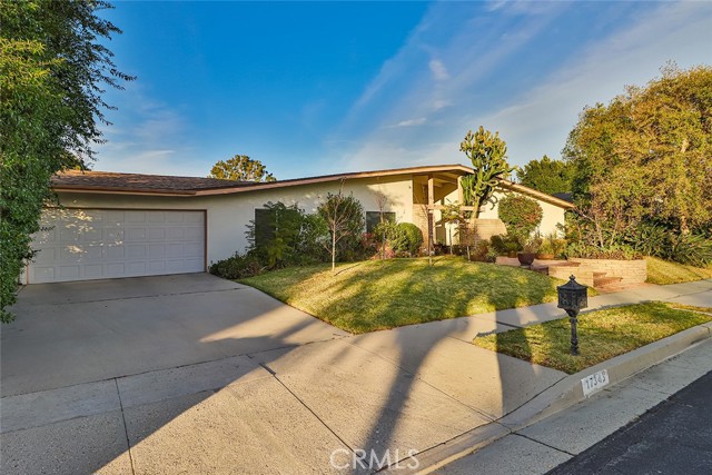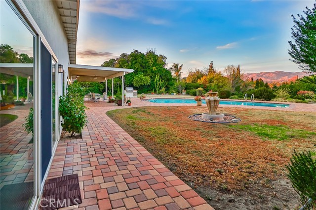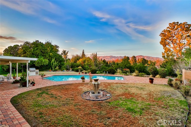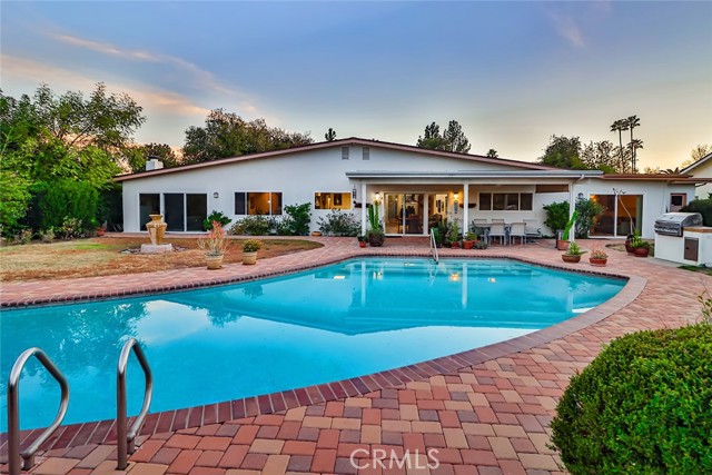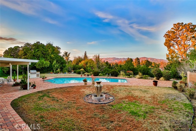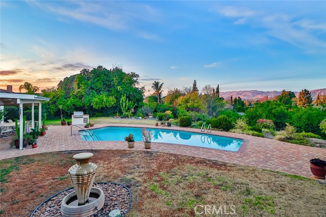 View View View! Rare opportunity to own this charming mid-century single-story home amazing views of mountains and tree tops to the North. 2 car garage, 5 Bedrooms, 3.5 Bathrooms, 3,133 Sq.Ft., on a 17,065 Sq.Ft. Lot. Paver walkway leads you to the covered “set back” front door with additional plants. Double door entry leads you to the foyer with wood paneling and half bathroom for guests. Extra-large living room with fireplace, track lighting, plenty of natural light, backyard views, and is open to the formal dining room. Family room and breakfast area are off of the kitchen. Kitchen with granite counter tops, breakfast bar, stainless steel sink with valley views from the window, double ovens, and plenty of storage. Primary bedroom with mirror closet, ceiling fan, additional storage, and Ensuite bathroom with more closet space, granite countertops, two sinks, and step down shower. Four more bedrooms on the other side of the house. Hallway bathroom with two sinks and bathtub/shower. The fifth bedroom has its own Ensuite bathroom. Large inside laundry room. Two car garage has additional storage room. Backyard with built-in BBQ, covered patio, two large grassy areas, beautiful pool, pavers, and views of mountains and tree tops! Part of the Granada Hills Charter High School district.