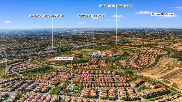 Living in Orchard Hills provides a resort-style experience with an array of exceptional amenities, including beautiful parks, lush green spaces, inviting swimming pools and spas, a fully equipped recreation center, BBQ areas for entertaining, and scenic walking trails for leisurely strolls. The community park is just a short walk away, and the highly acclaimed Irvine School District is within close reach, making this an ideal location for families.