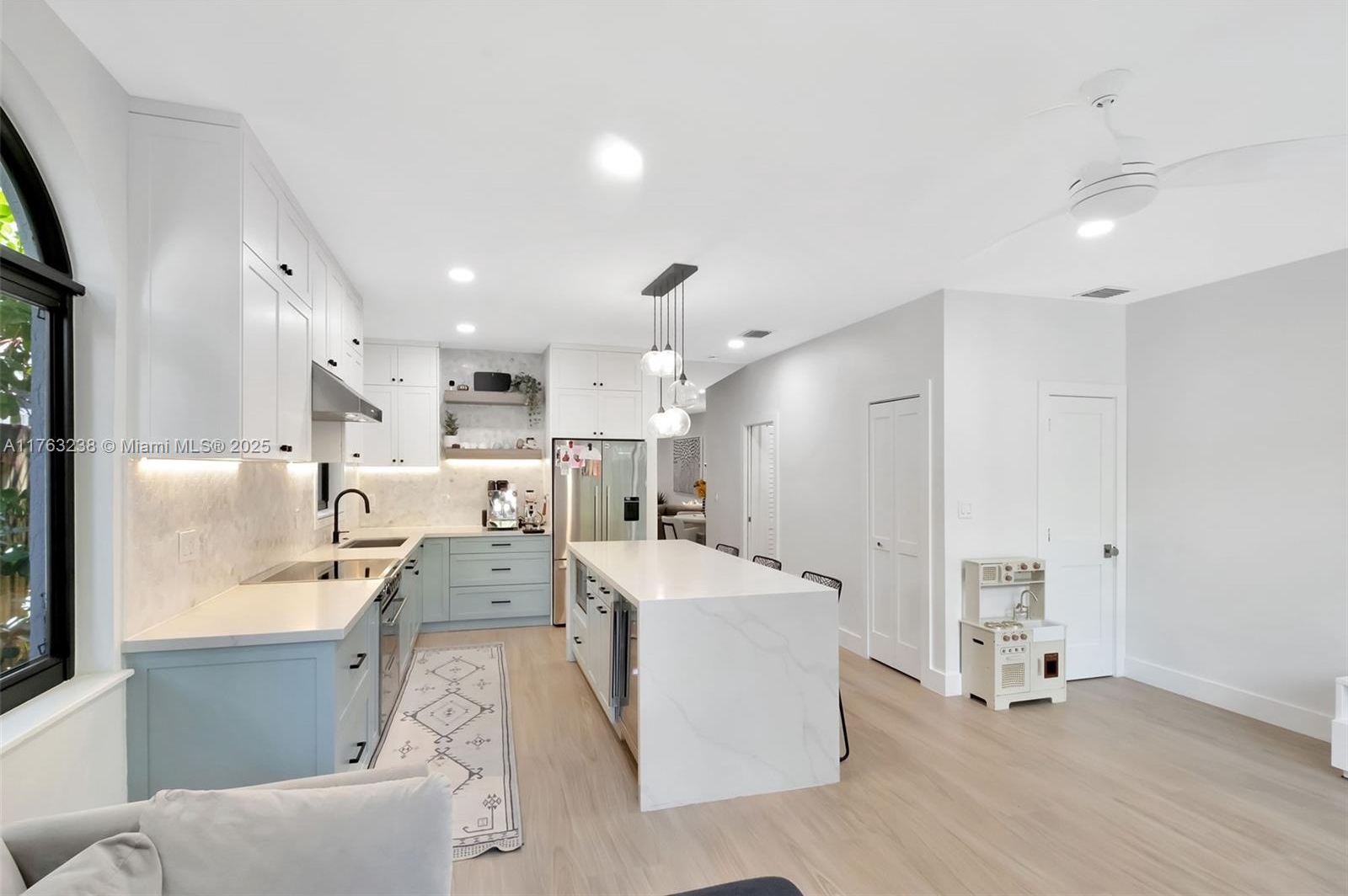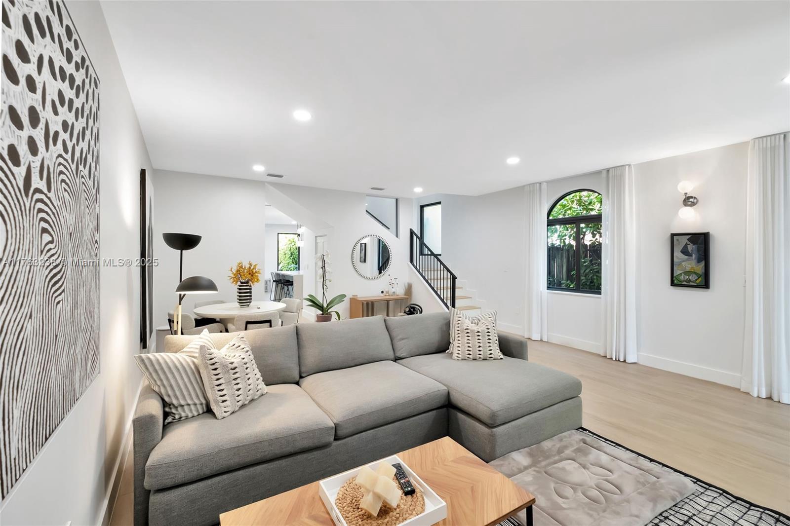 Exceptional townhome in the heart of Center Coconut Grove! Bright and airy with striking arched windows, this home offers stylish living in one of Miami’s most desirable neighborhoods. The expansive primary suite opens to a private patio retreat. Enjoy standout features like a 2023 roof, sleek interior doors, and a two-zone AC system. The chef’s kitchen is a showstopper with quartz countertops, marble backsplash, Fisher & Paykel appliances, an induction range, and a center island with bar fridge perfect for entertaining. Engineered wood floors upstairs, porcelain tile below, and a fully fenced outdoor space with low-maintenance turf. Just minutes from Cocowalk, Biscayne Bay, top-rated schools, Milam’s Market, and the Grove’s best dining. No HOA fees- just effortless, upscale living.