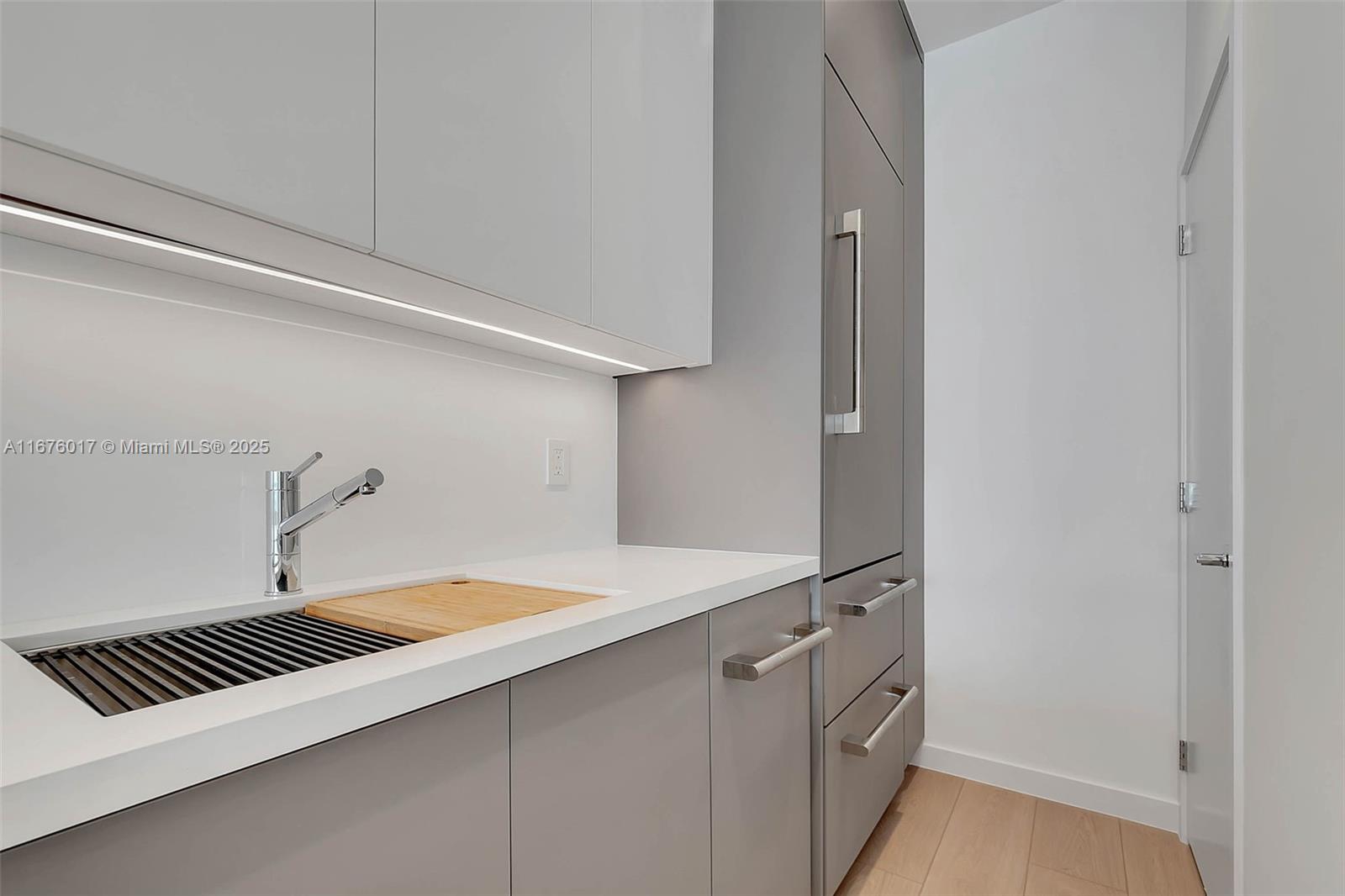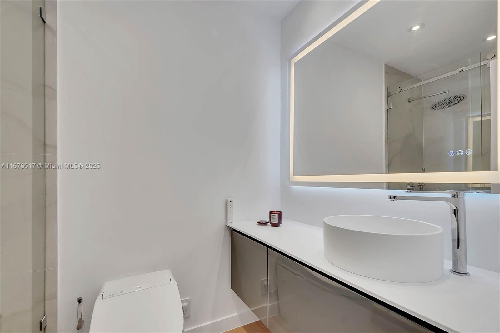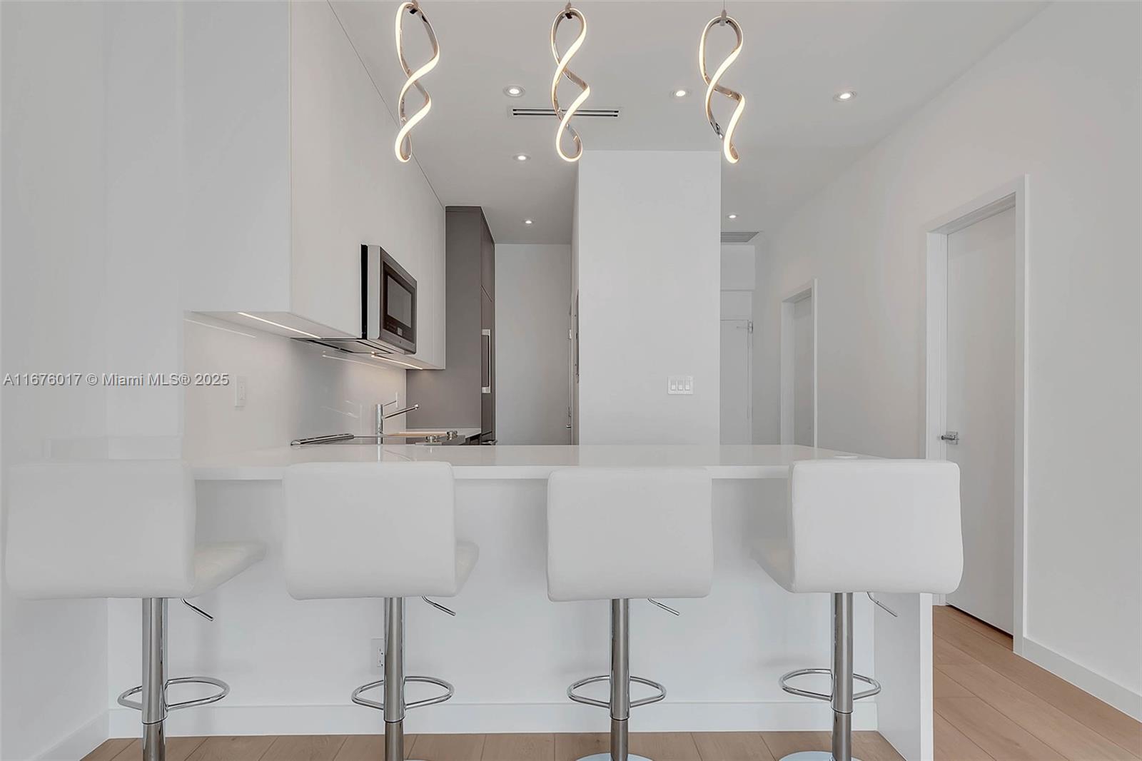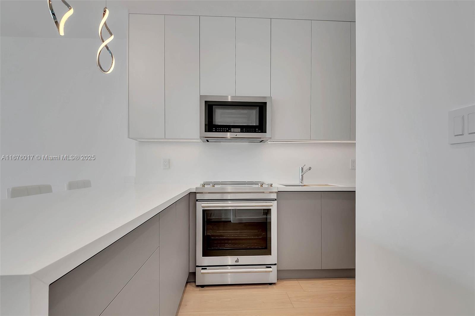 This fully remodeled penthouse studio at the Mirador offers modern luxury and breathtaking bay views. Featuring raised ceilings, all-new ductwork, air conditioner, electrical, plumbing, and high-end Level 5 finishes. The European-style kitchen includes Jenn-Air appliances: a sliding range cooktop with air fryer, microwave, dishwasher, and Liebherr fridge with icemaker. The bathroom has a smart toilet system, with updated flooring and lighting throughout. Residents enjoy a gym, valet parking, and a common laundry room on the same floor. The building offers a renovated pool deck, boardwalk, and new seawall. Close distance to Whole Foods, Trader Joe’s, Lincoln Road, and the beach.