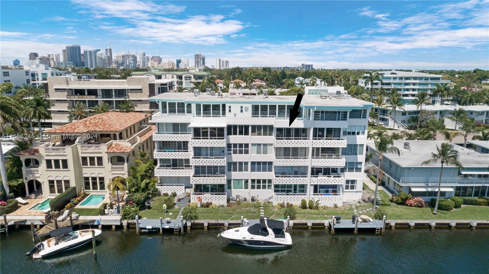 Rare offering. Extraordinary views and exquisite remodel in one of the best areas of Fort Lauderdale. This boutique and popular community is located between downtown and famous beaches and within walking distance to either. Recent remodel includes kitchen cabinets, countertops, appliances, flooring, lighting, bath vanity and much more. Enchanting views of waterway and multi million dollar homes. Community has heated pool and bike rack. One parking spot. Located close to Las Olas Boulevard shops and entertainment venues. Boat dockage when available up to a 33 foot boat. New front impact windows and doors.