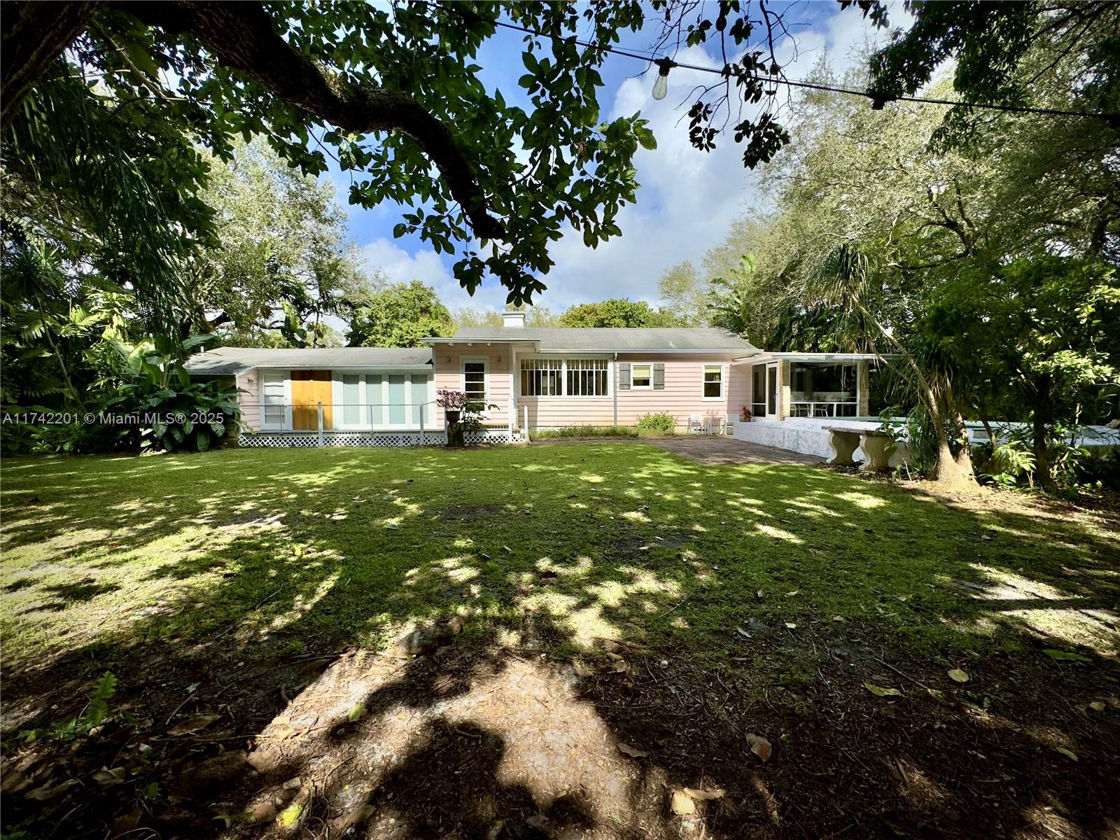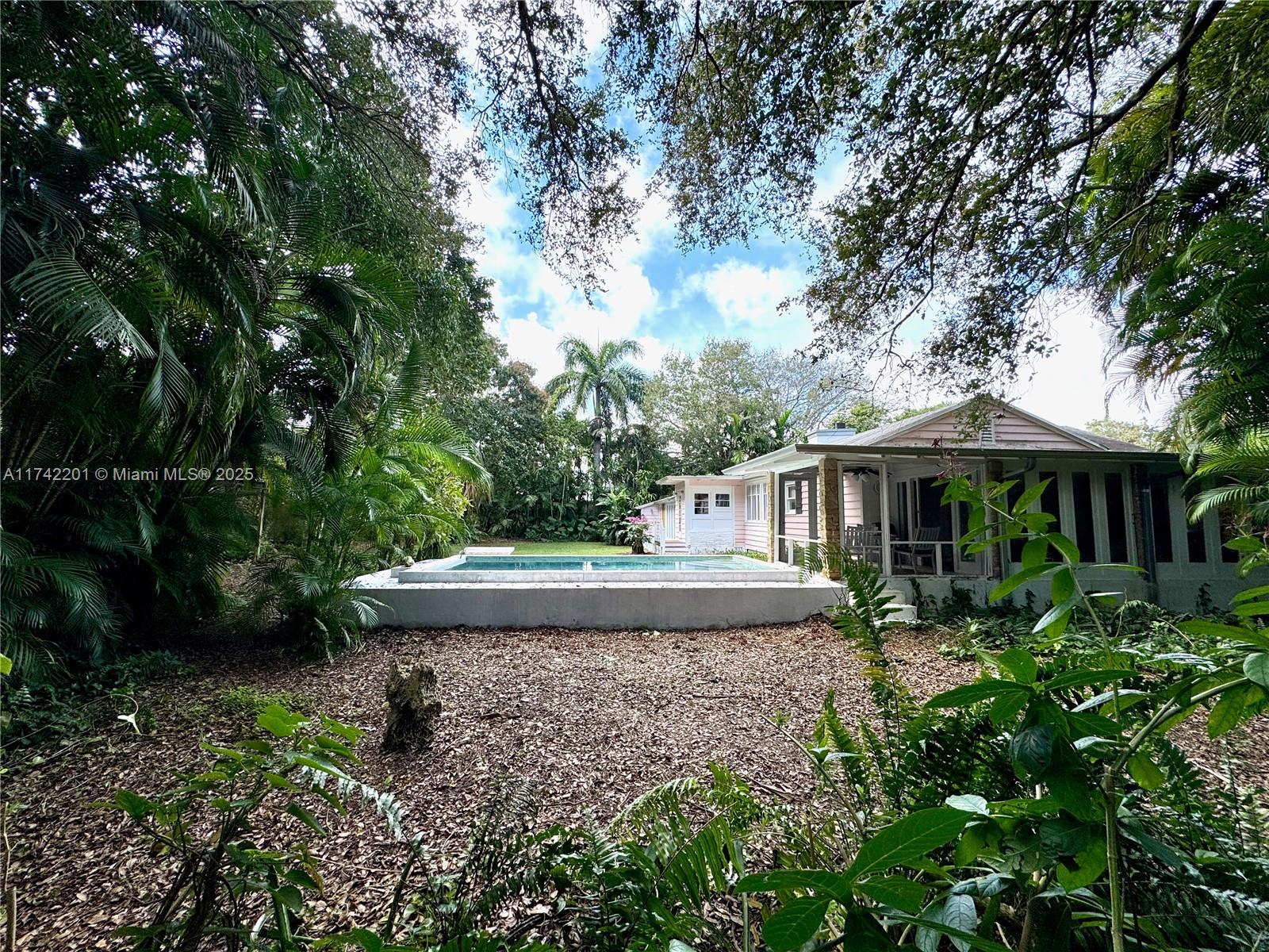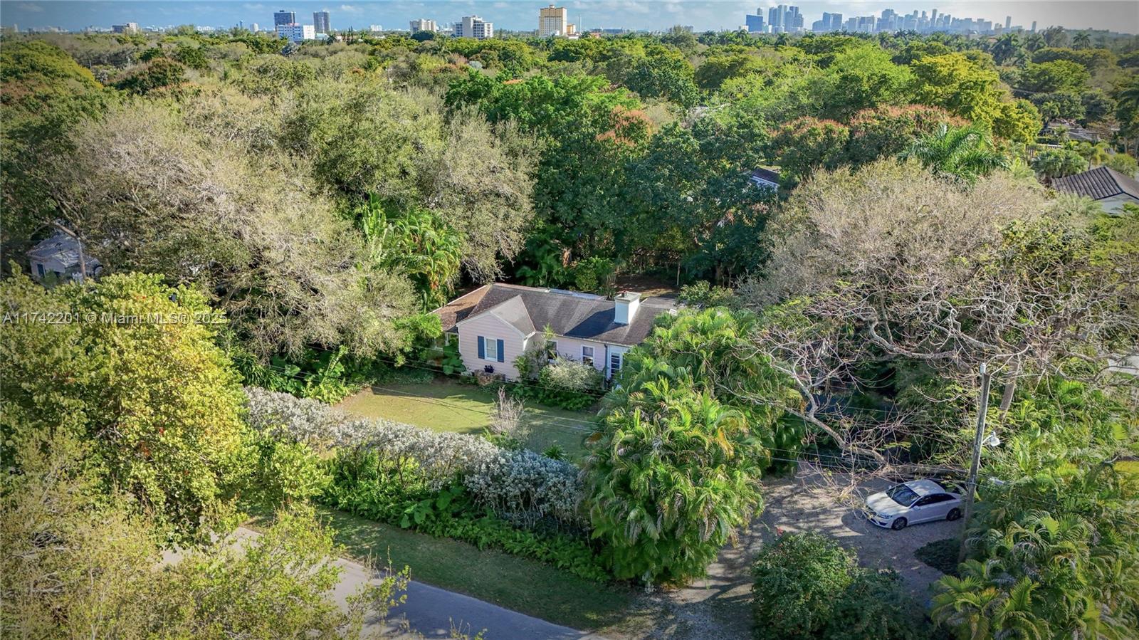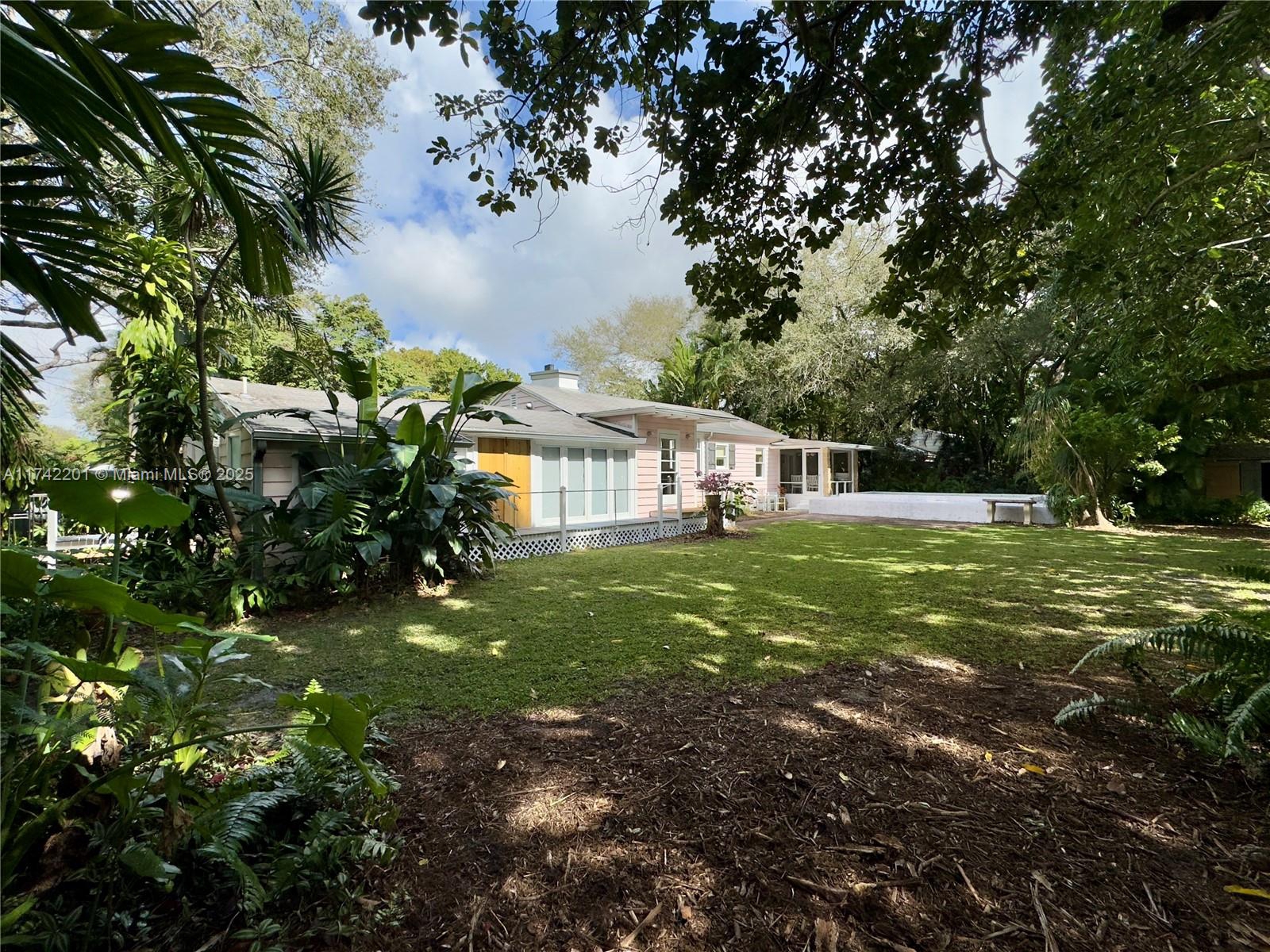 There is nothing like this anywhere near the price. A lush & private near 1/2 acre in a quiet walkable neighborhood a few blocks from downtown Miami Shores. It's close to excellent private schools and just minutes from the Design District, Wynwood, downtown, and the beaches. Framed by beautiful mango, avocado, and live oak trees, it’s 19,600 sqft of tranquil escape. The 2,049 sqft Key West style home, made of beautiful and prized Dade County pine, offers a unique renovation opportunity. Or it’s the perfect canvas for a custom dream home with a huge yard. It truly needs to be seen in person to be appreciated. There is an 11’ x 17’ site in the rear corner perfect for a cabana, guest house, or office. It’s offered as-is, is eligible to be divided into two lots, and is in Flood Zone X.