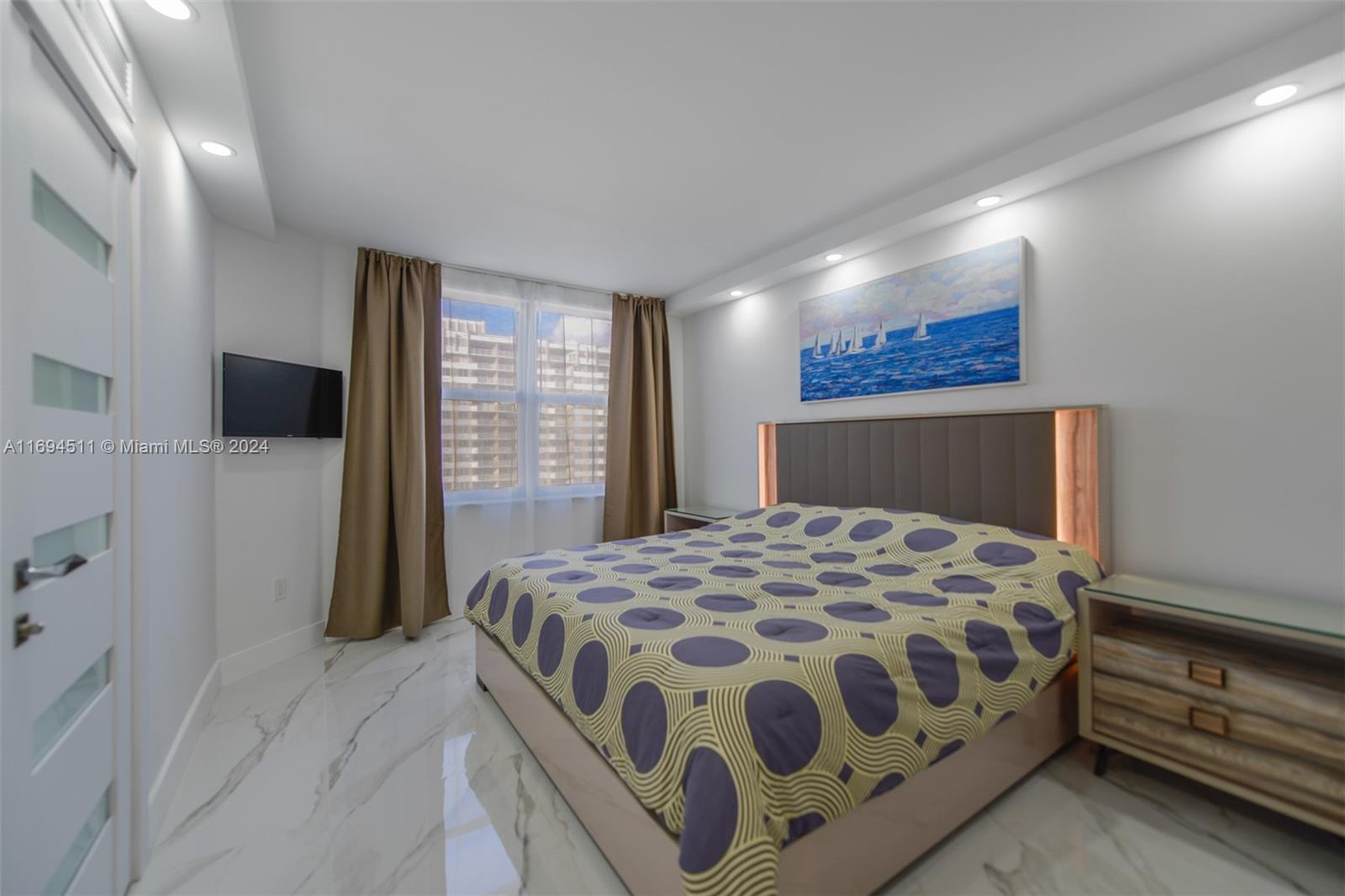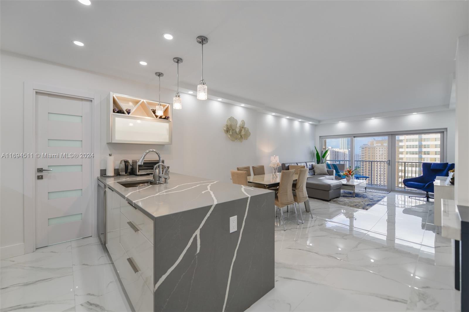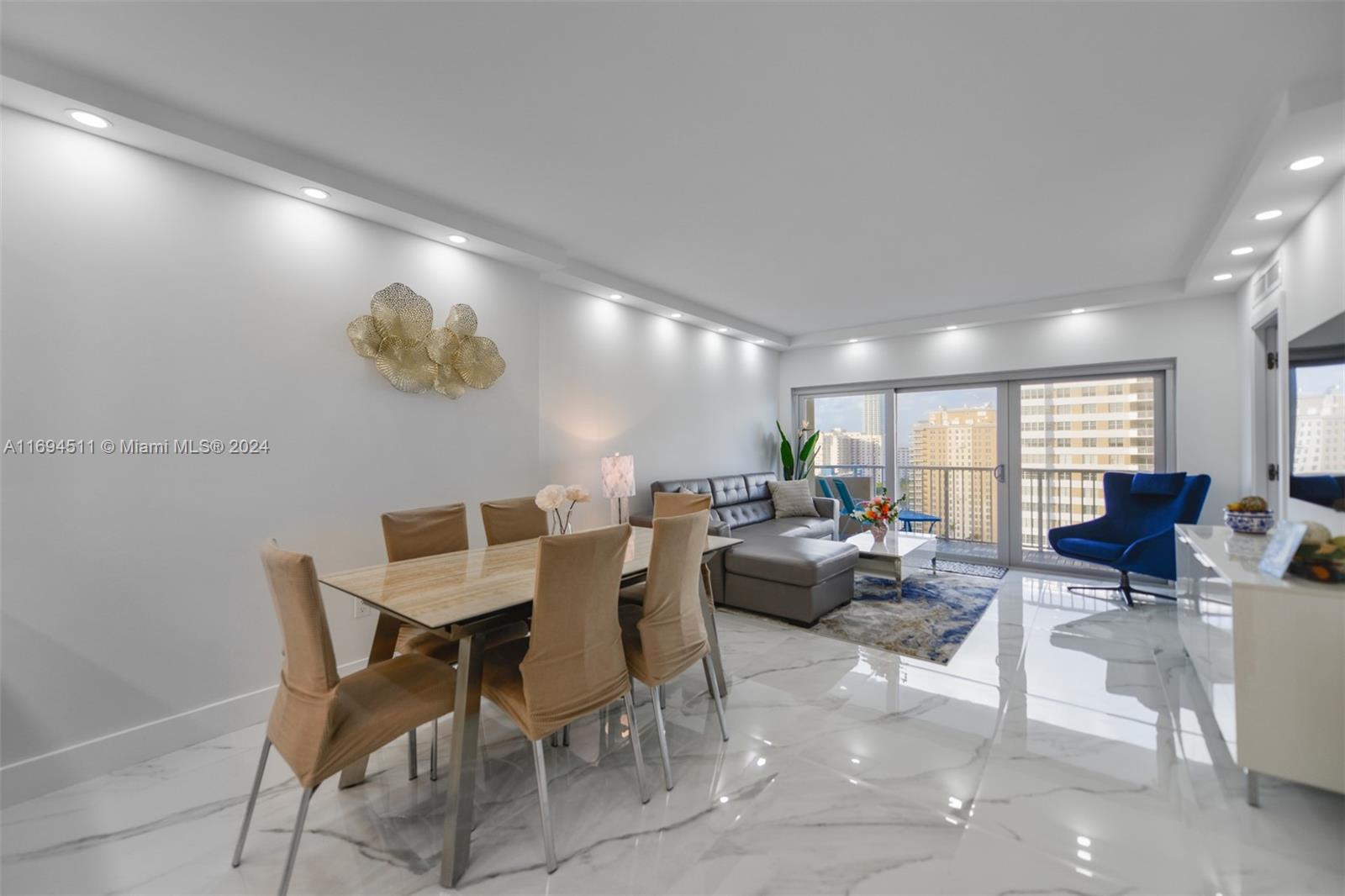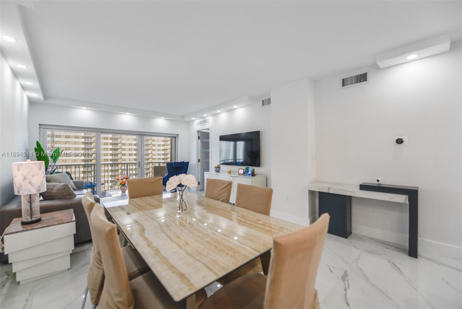 This COMPLETELY RENOVATED 1-bedroom + extra room, 2-bathroom unit in The Hemispheres offers UNOBSTRUCTED OCEAN, CITY, and INTRACOASTAL VIEWS from its north-facing balcony. The extra room is perfect as a den, second bedroom, or office. Featuring porcelain floors, an open kitchen with stainless steel appliances, and a walk-in shower, this elegant, FULLY FURNISHED unit is MOVE-IN READY. The Hemispheres offers resort-style amenities, including beach access, pools, tennis & pickleball courts, 2 fine dining restaurants, mini-marts, fitness centers, and more. Experience the best of Hallandale Beach living!