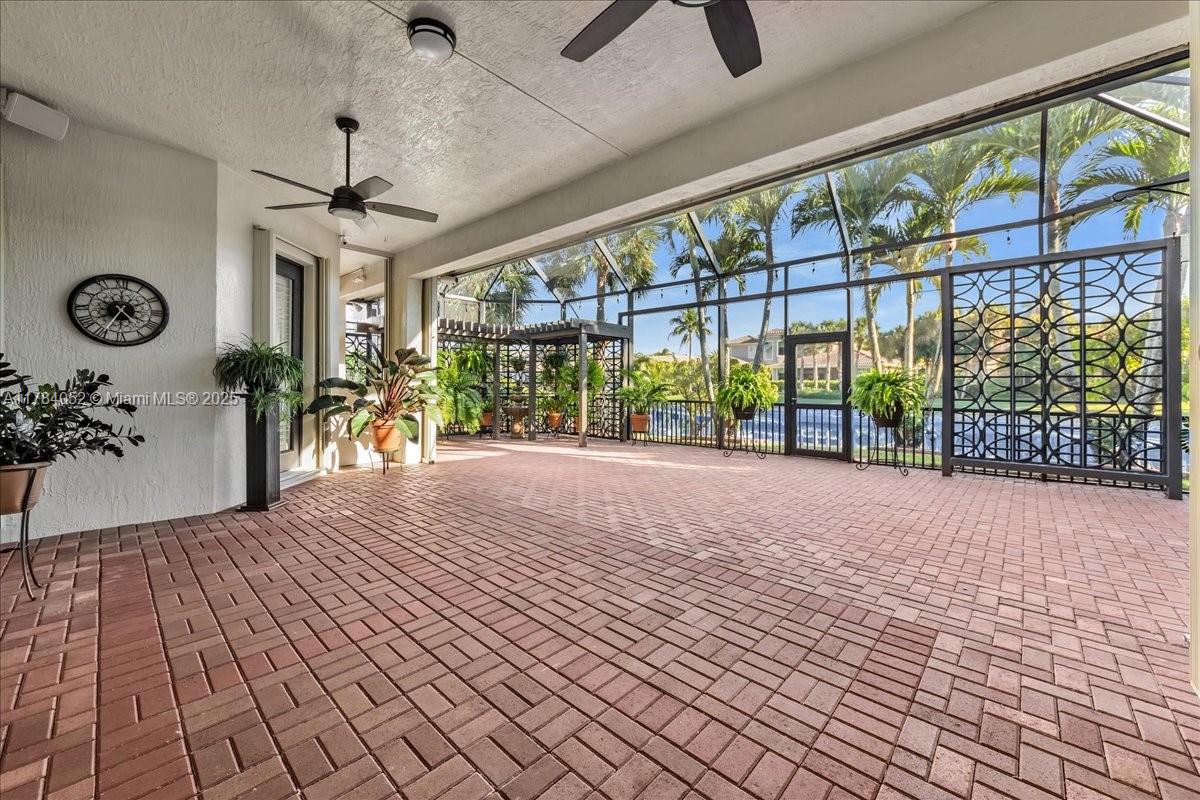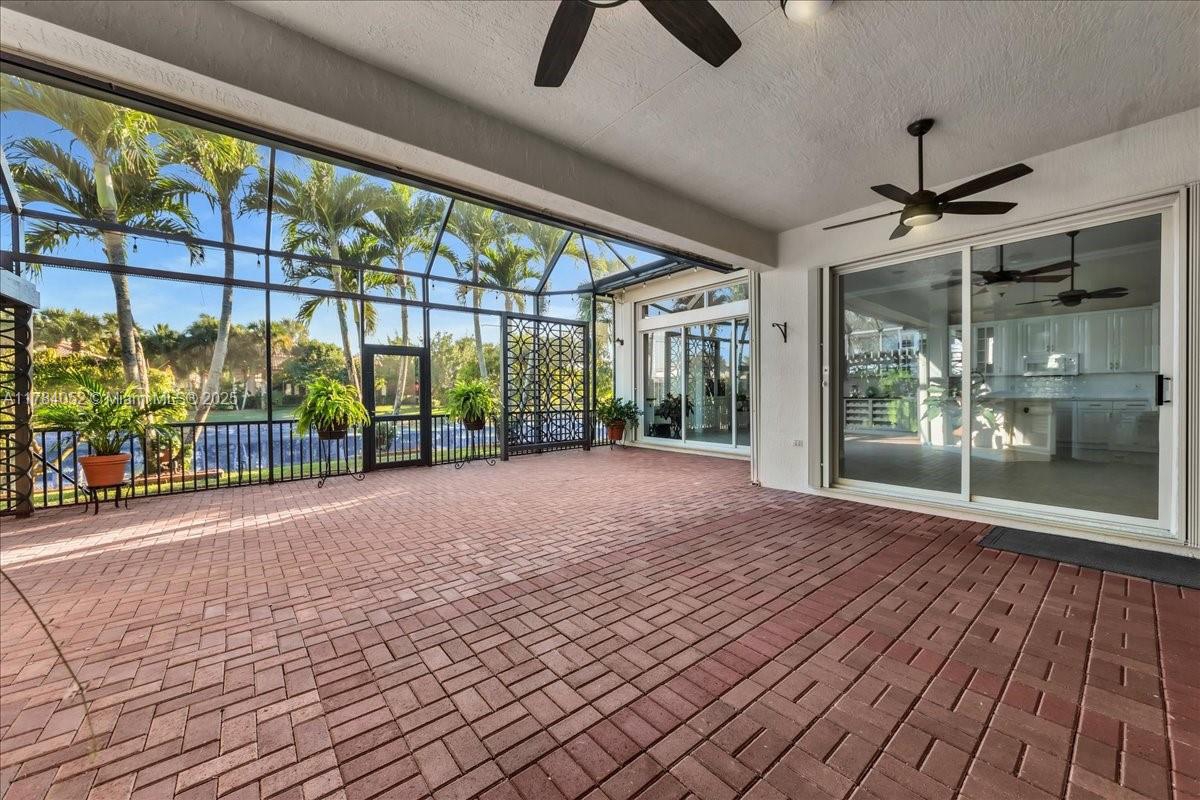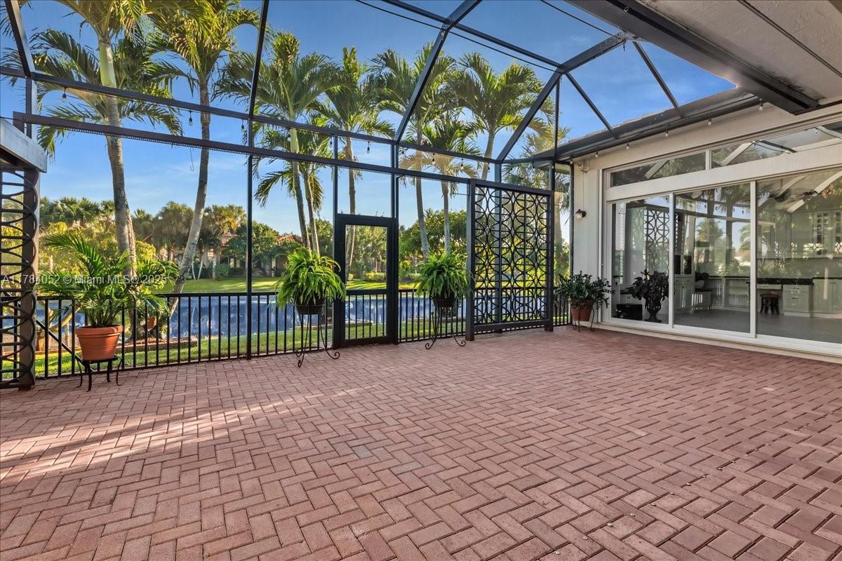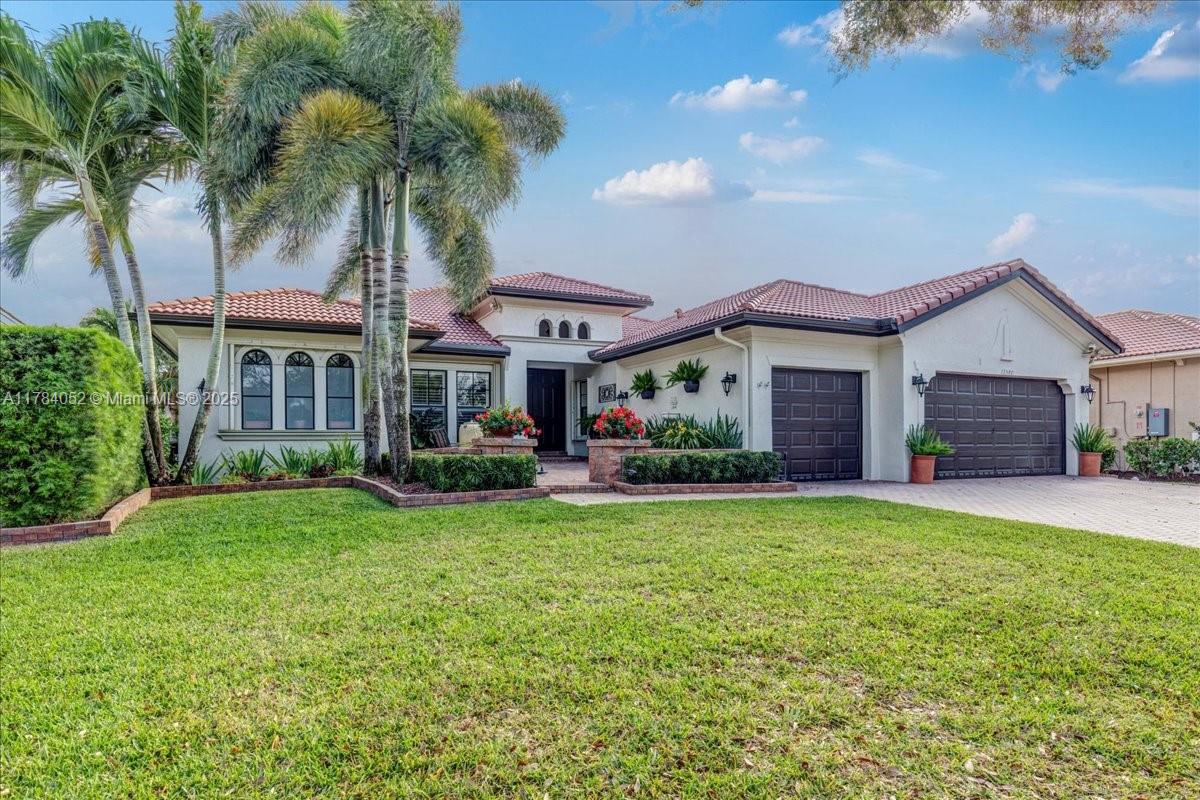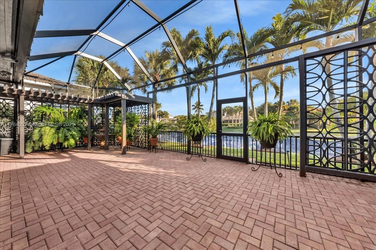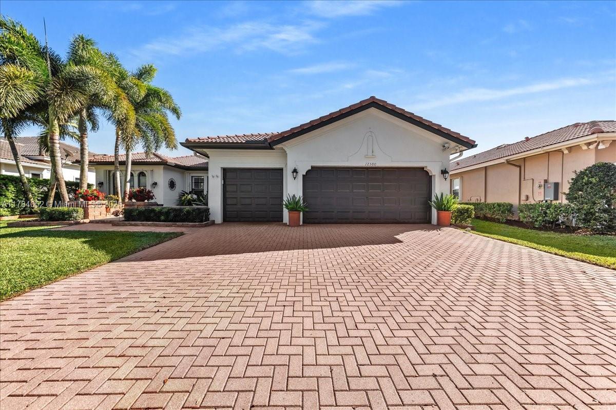 Welcome to beautiful Heron Bay, and enter this unique front terrace to find a well-maintained, immaculate and spacious one-story home. The residence offers 4 bedrooms, 3 full baths, updated open plan kitchen and living room, 3-car garage with extra large driveway accommodating 6 additional cars. You will also notice the large screened-in back patio with pergola and water views. The floor plan flows beautifully, connecting living room, kitchen and living room to enclosed back patio. Heron Bay is a distinctive residential community with all resort type amenities included in Low HOA fees, surrounded by expansive green areas. Amenities include 2 clubhouses with pools and fitness centers,a complete tennis program, pickleball & basketball courts, Kids playground, waterpark, and 3 gatehouses