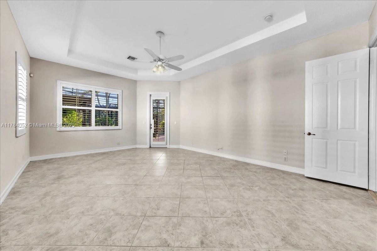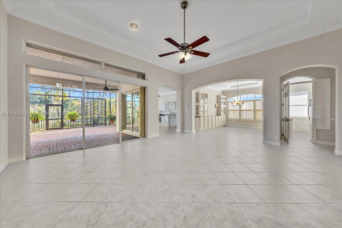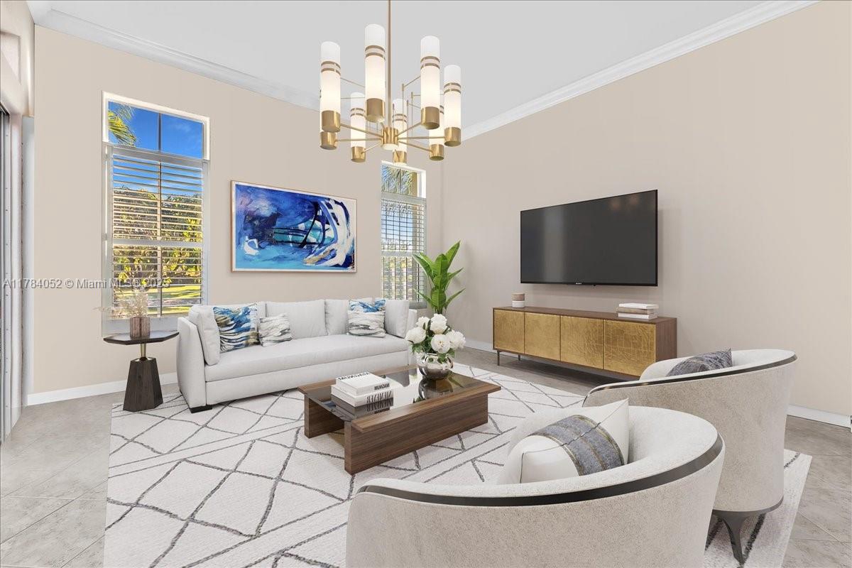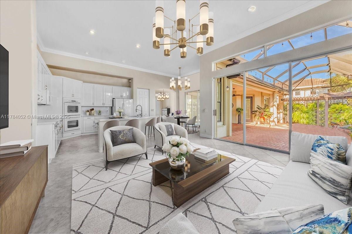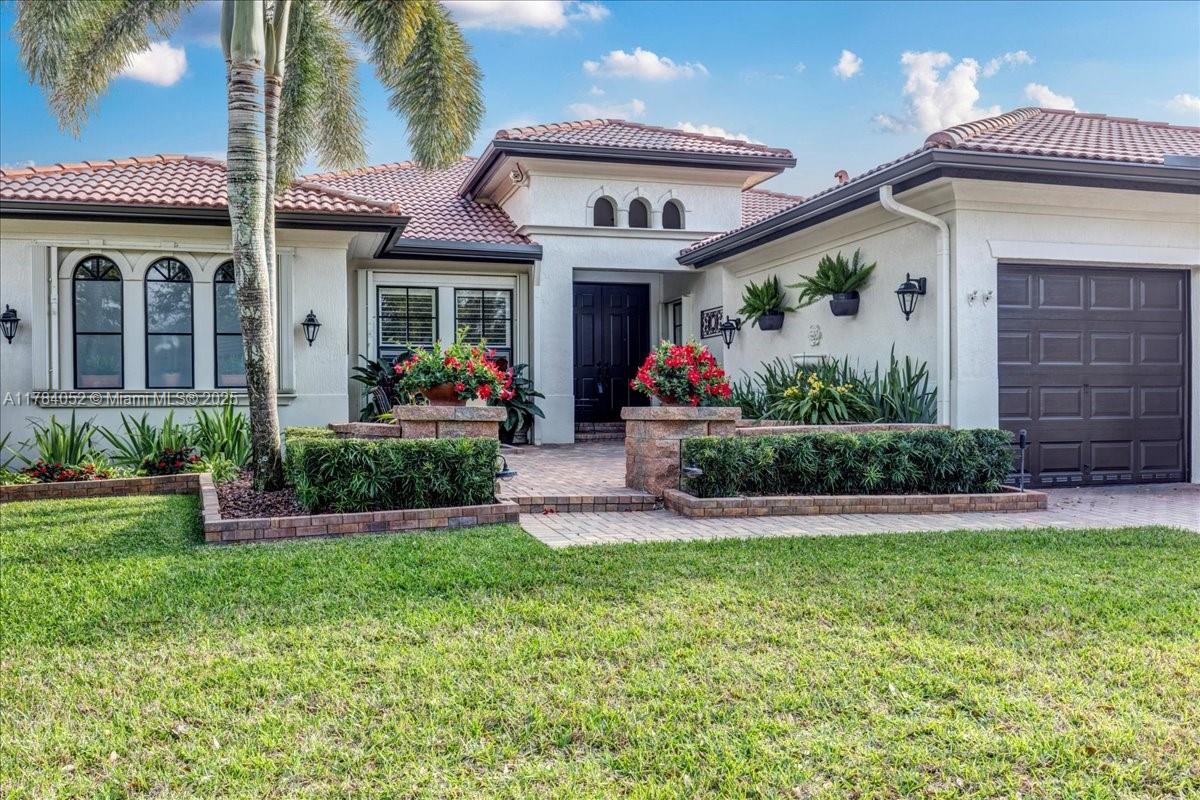 Welcome to beautiful Heron Bay, and enter this unique front terrace to find a well-maintained, immaculate and spacious one-story home. The residence offers 4 bedrooms, 3 full baths, updated open plan kitchen and living room, 3-car garage with extra large driveway accommodating 6 additional cars. You will also notice the large screened-in back patio with pergola and water views. The floor plan flows beautifully, connecting living room, kitchen and living room to enclosed back patio. Heron Bay is a distinctive residential community with all resort type amenities included in Low HOA fees, surrounded by expansive green areas. Amenities include 2 clubhouses with pools and fitness centers,a complete tennis program, pickleball & basketball courts, Kids playground, waterpark, and 3 gatehouses
