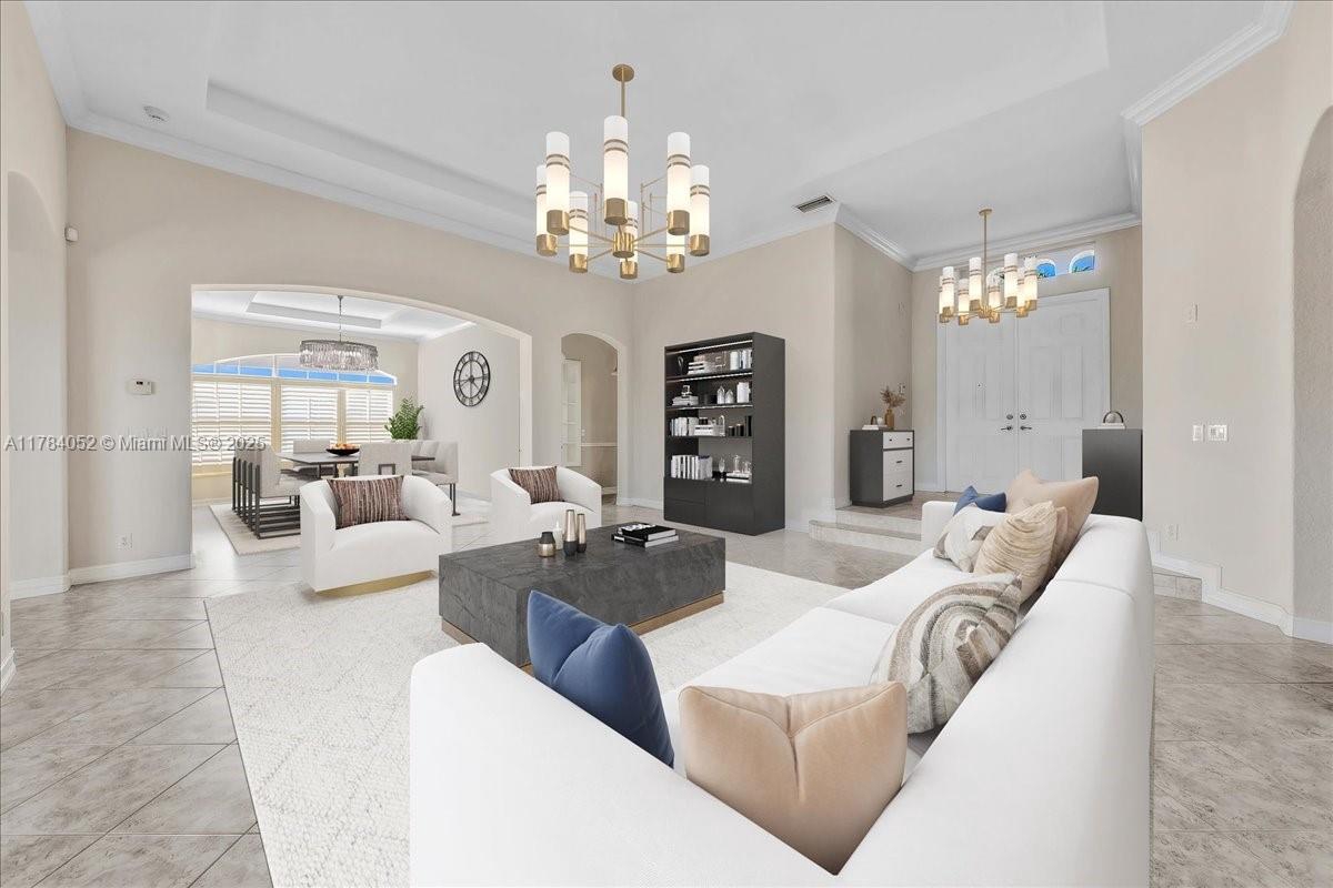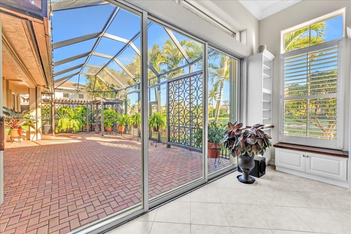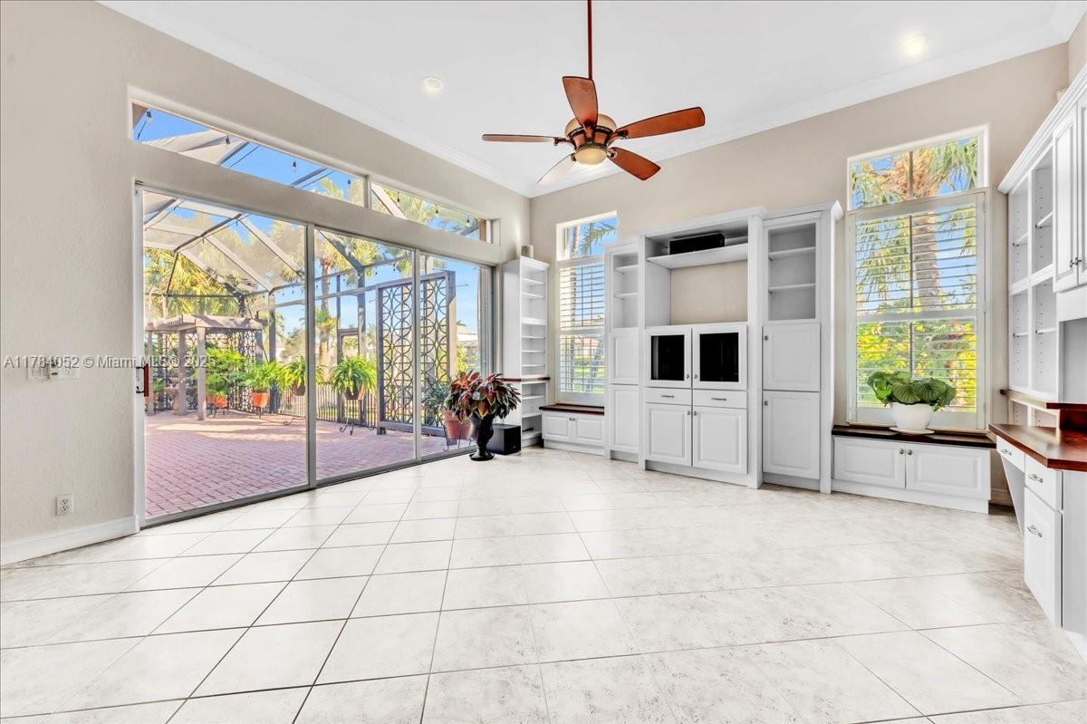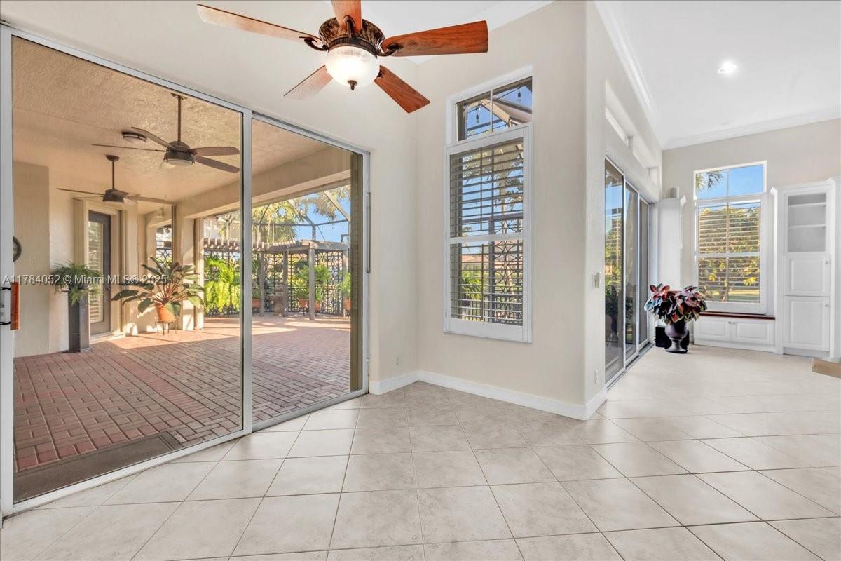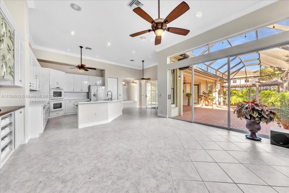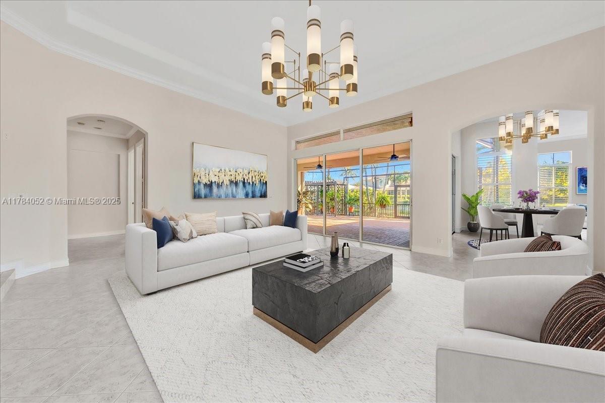 Welcome to beautiful Heron Bay, and enter this unique front terrace to find a well-maintained, immaculate and spacious one-story home. The residence offers 4 bedrooms, 3 full baths, updated open plan kitchen and living room, 3-car garage with extra large driveway accommodating 6 additional cars. You will also notice the large screened-in back patio with pergola and water views. The floor plan flows beautifully, connecting living room, kitchen and living room to enclosed back patio. Heron Bay is a distinctive residential community with all resort type amenities included in Low HOA fees, surrounded by expansive green areas. Amenities include 2 clubhouses with pools and fitness centers,a complete tennis program, pickleball & basketball courts, Kids playground, waterpark, and 3 gatehouses