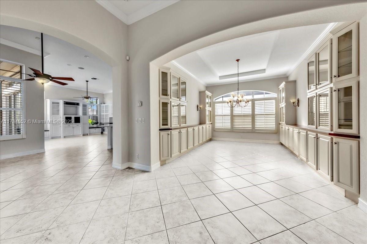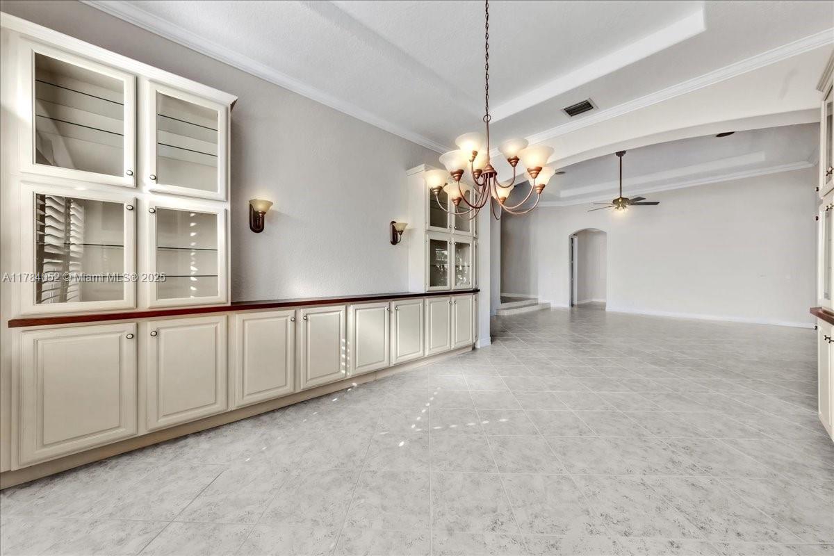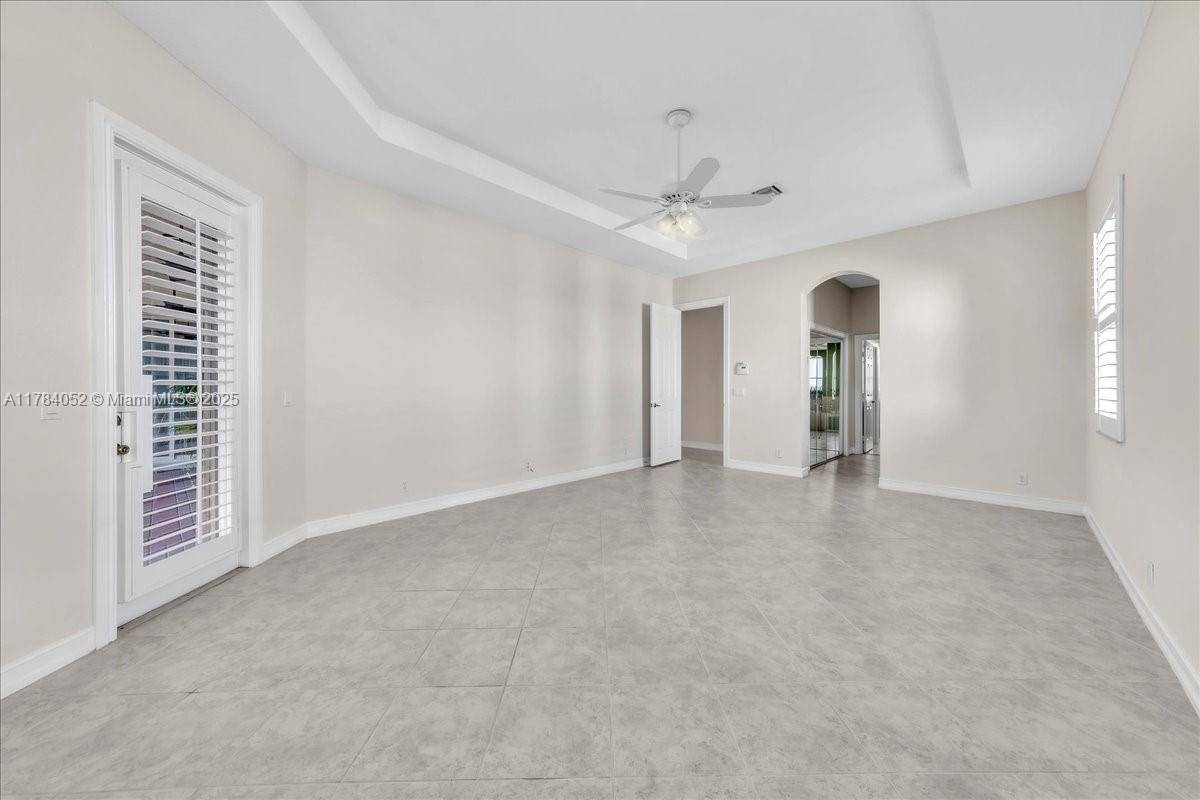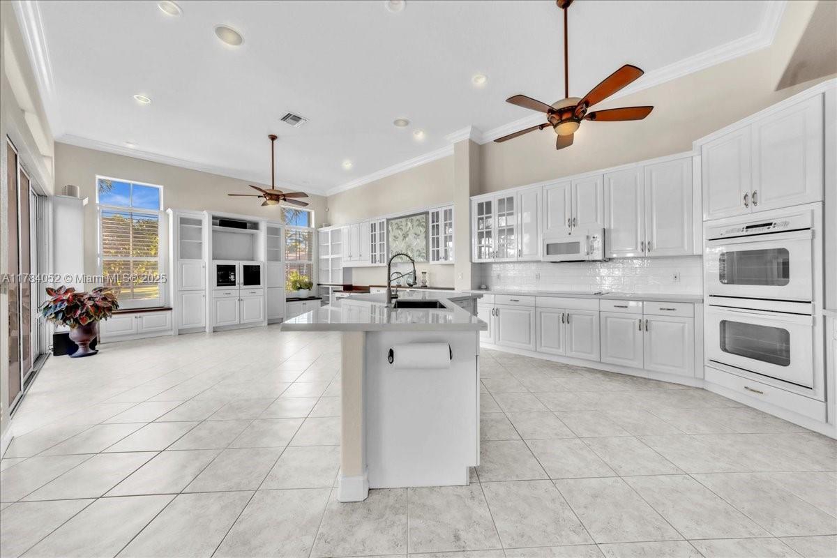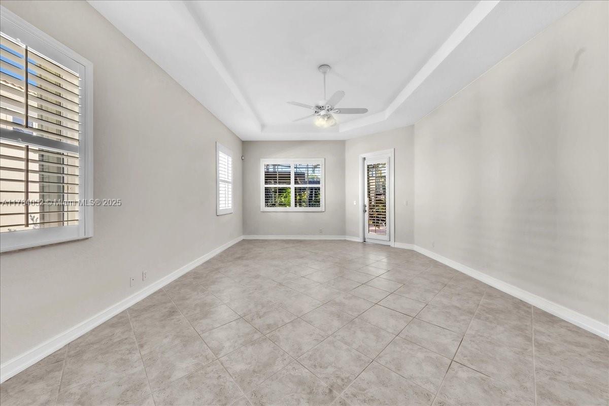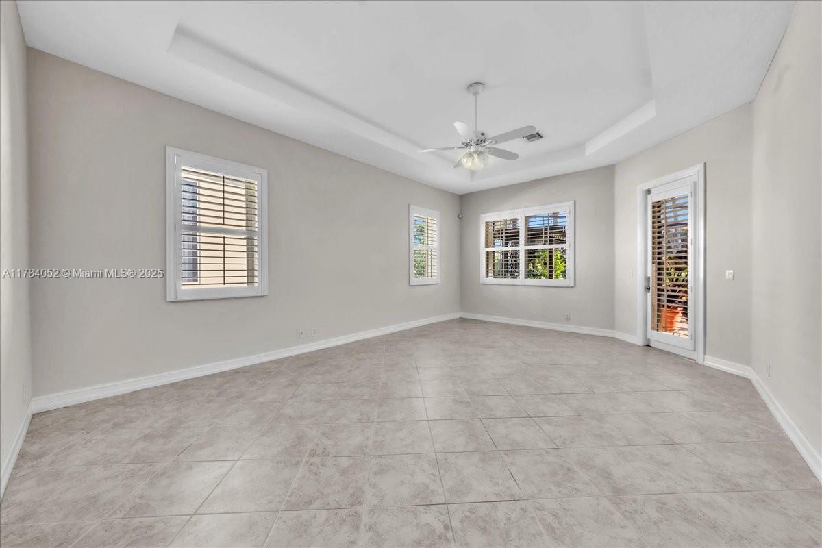 Welcome to beautiful Heron Bay, and enter this unique front terrace to find a well-maintained, immaculate and spacious one-story home. The residence offers 4 bedrooms, 3 full baths, updated open plan kitchen and living room, 3-car garage with extra large driveway accommodating 6 additional cars. You will also notice the large screened-in back patio with pergola and water views. The floor plan flows beautifully, connecting living room, kitchen and living room to enclosed back patio. Heron Bay is a distinctive residential community with all resort type amenities included in Low HOA fees, surrounded by expansive green areas. Amenities include 2 clubhouses with pools and fitness centers,a complete tennis program, pickleball & basketball courts, Kids playground, waterpark, and 3 gatehouses