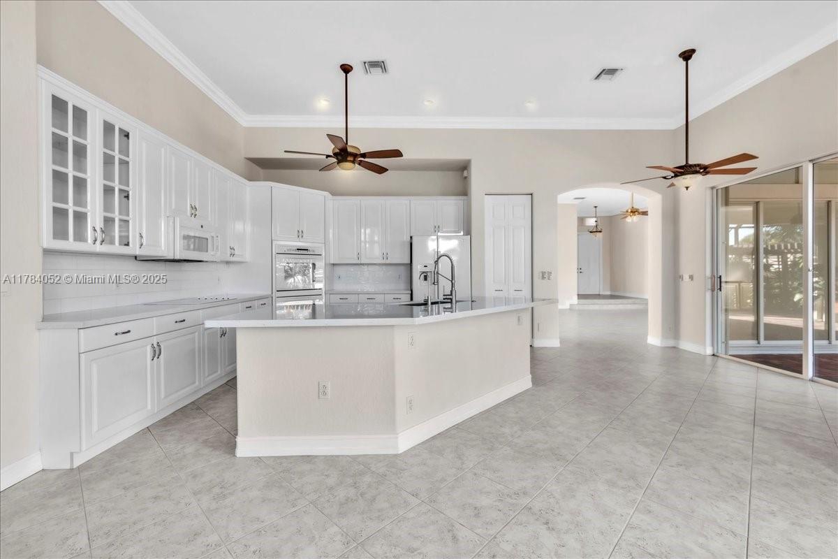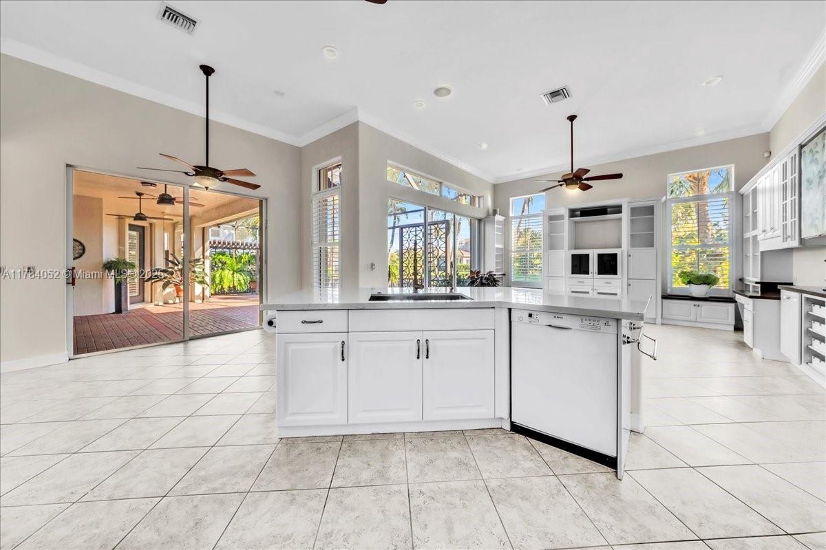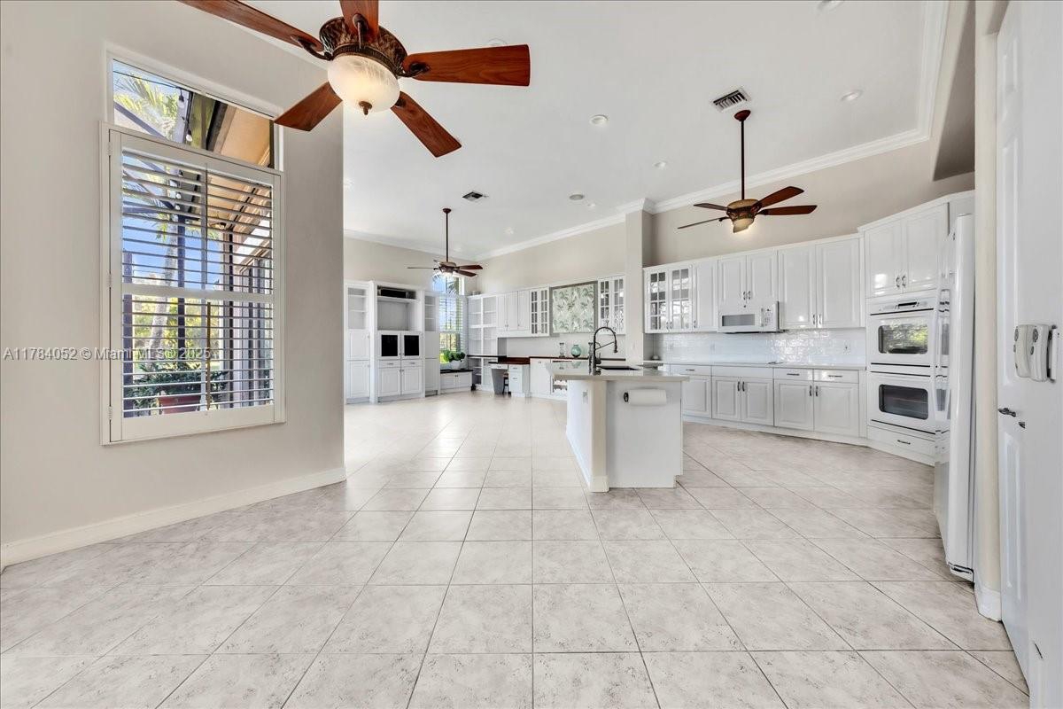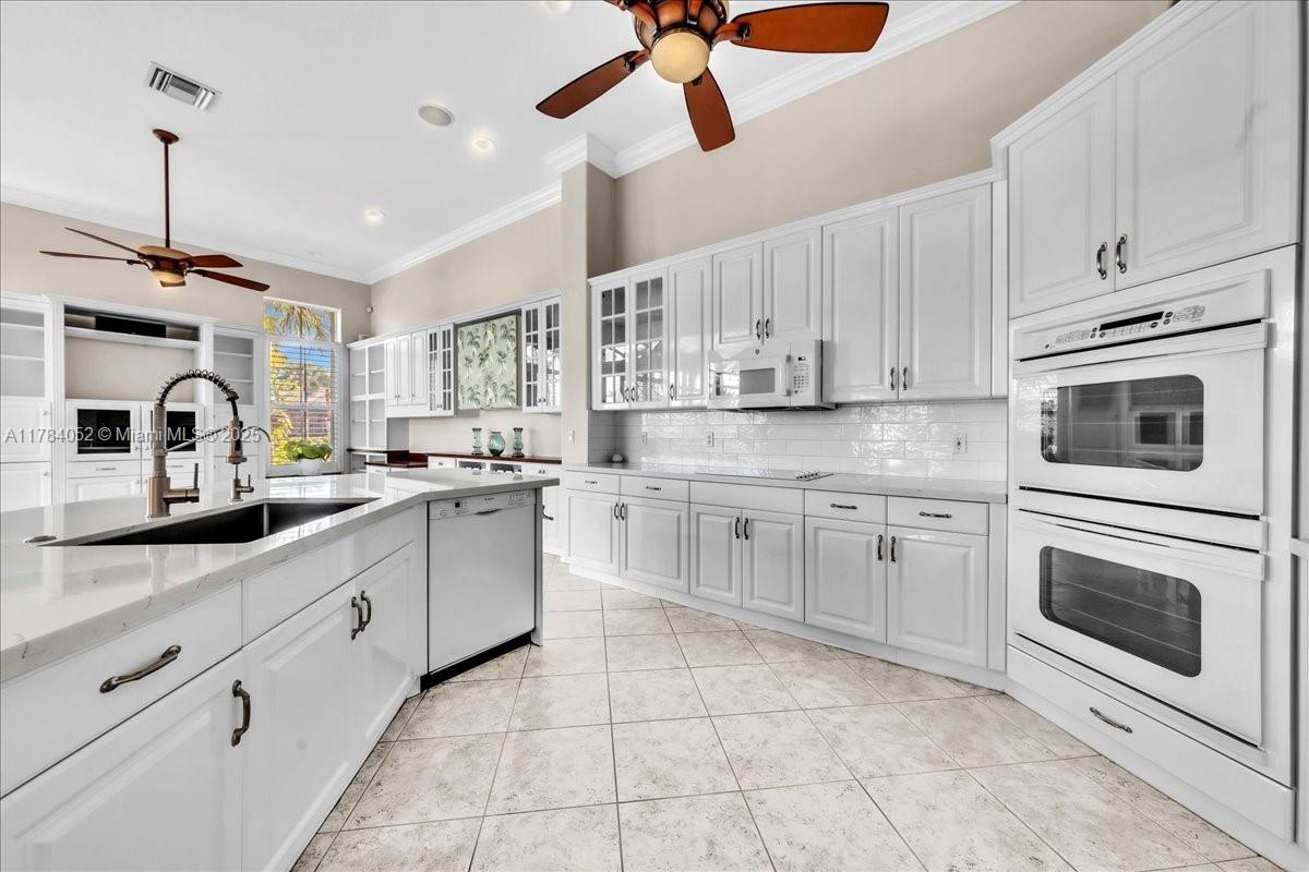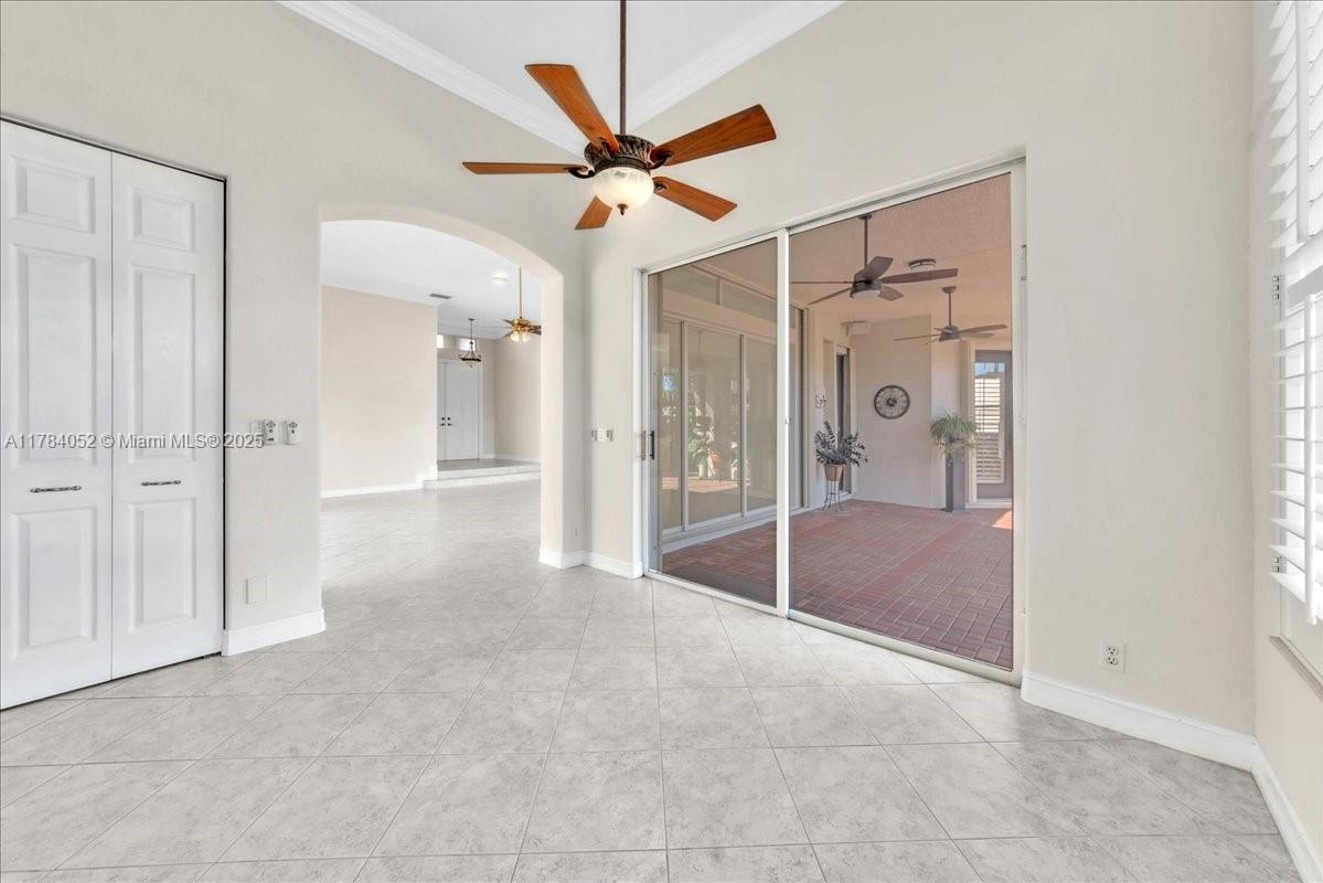 Welcome to beautiful Heron Bay, and enter this unique front terrace to find a well-maintained, immaculate and spacious one-story home. The residence offers 4 bedrooms, 3 full baths, updated open plan kitchen and living room, 3-car garage with extra large driveway accommodating 6 additional cars. You will also notice the large screened-in back patio with pergola and water views. The floor plan flows beautifully, connecting living room, kitchen and living room to enclosed back patio. Heron Bay is a distinctive residential community with all resort type amenities included in Low HOA fees, surrounded by expansive green areas. Amenities include 2 clubhouses with pools and fitness centers,a complete tennis program, pickleball & basketball courts, Kids playground, waterpark, and 3 gatehouses