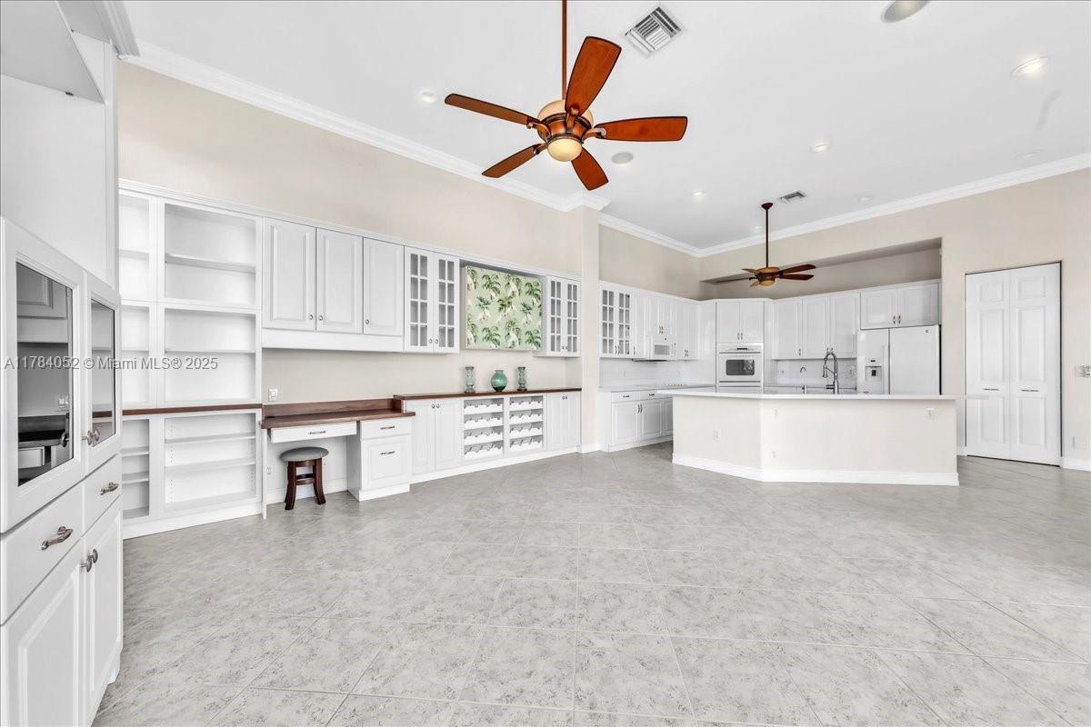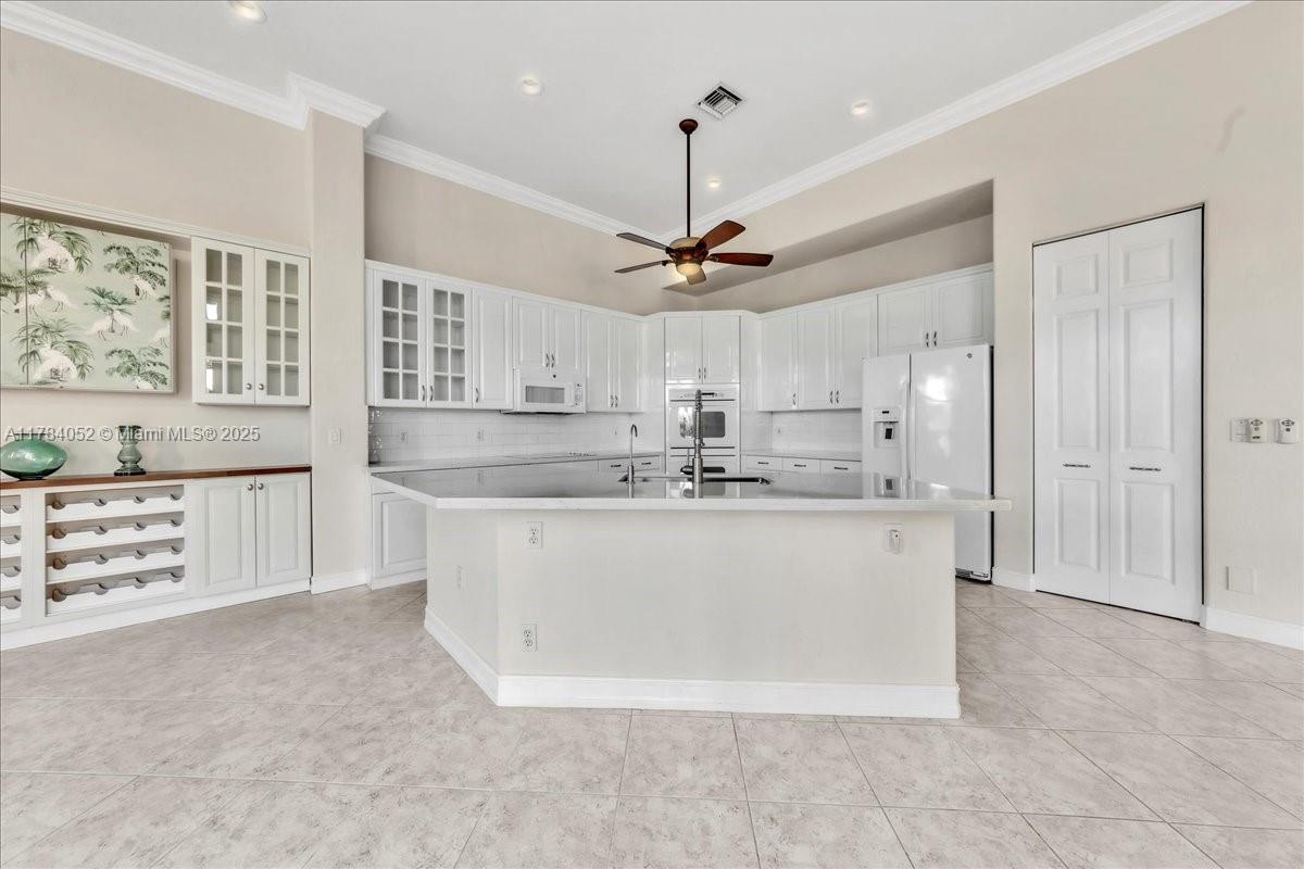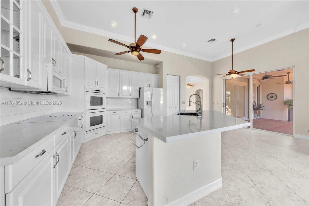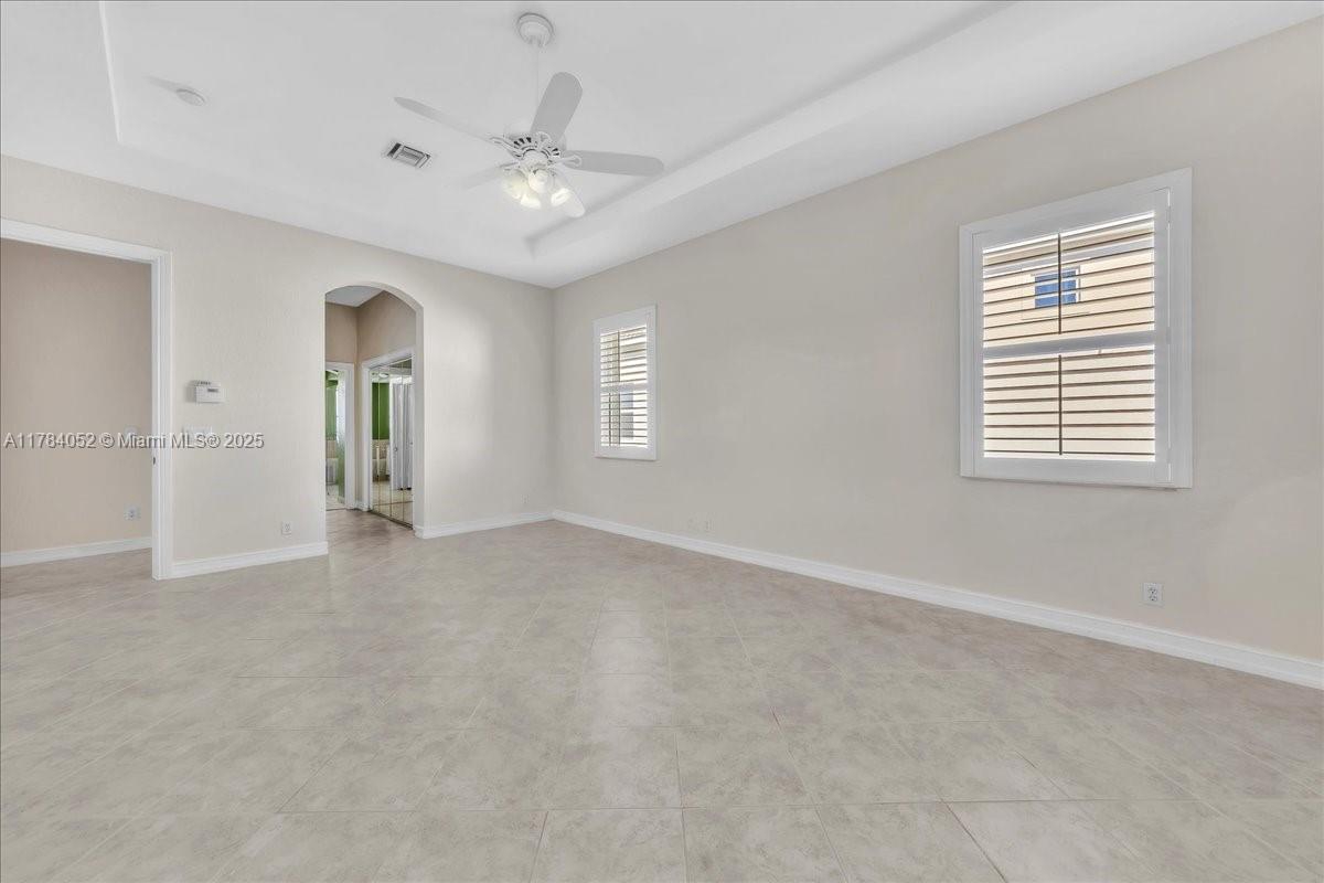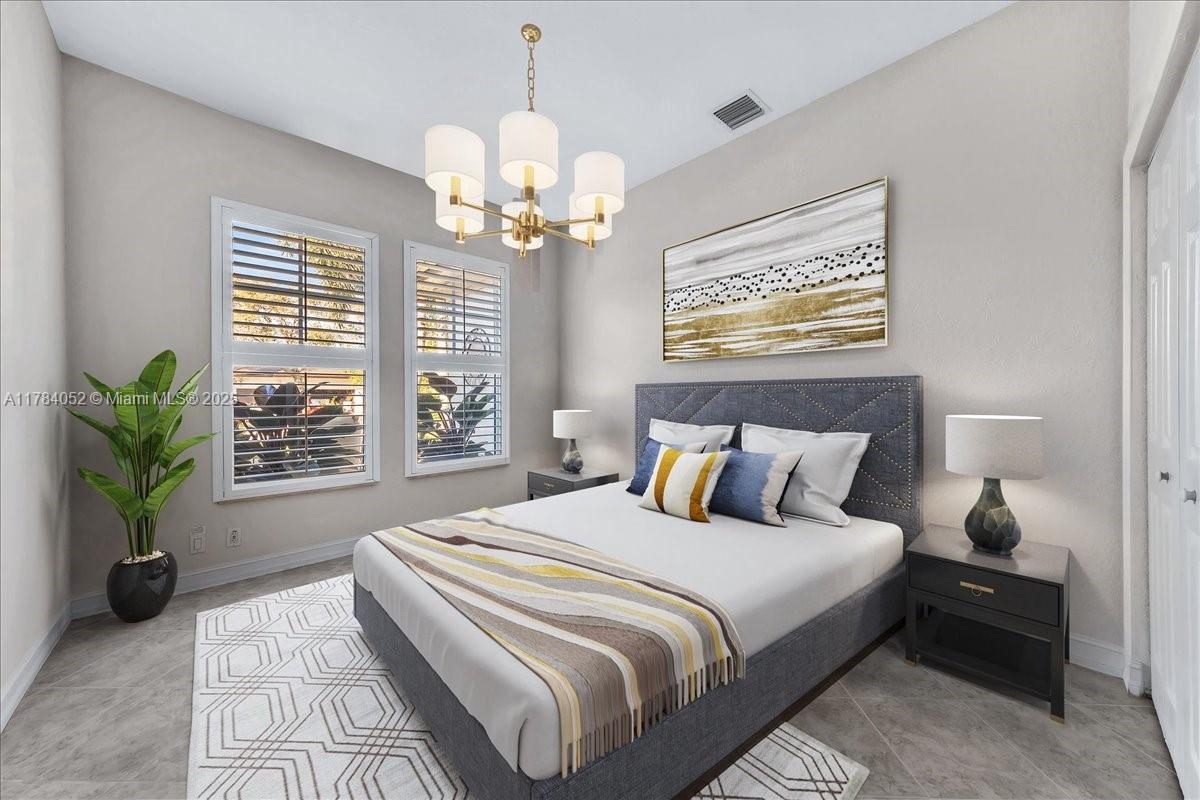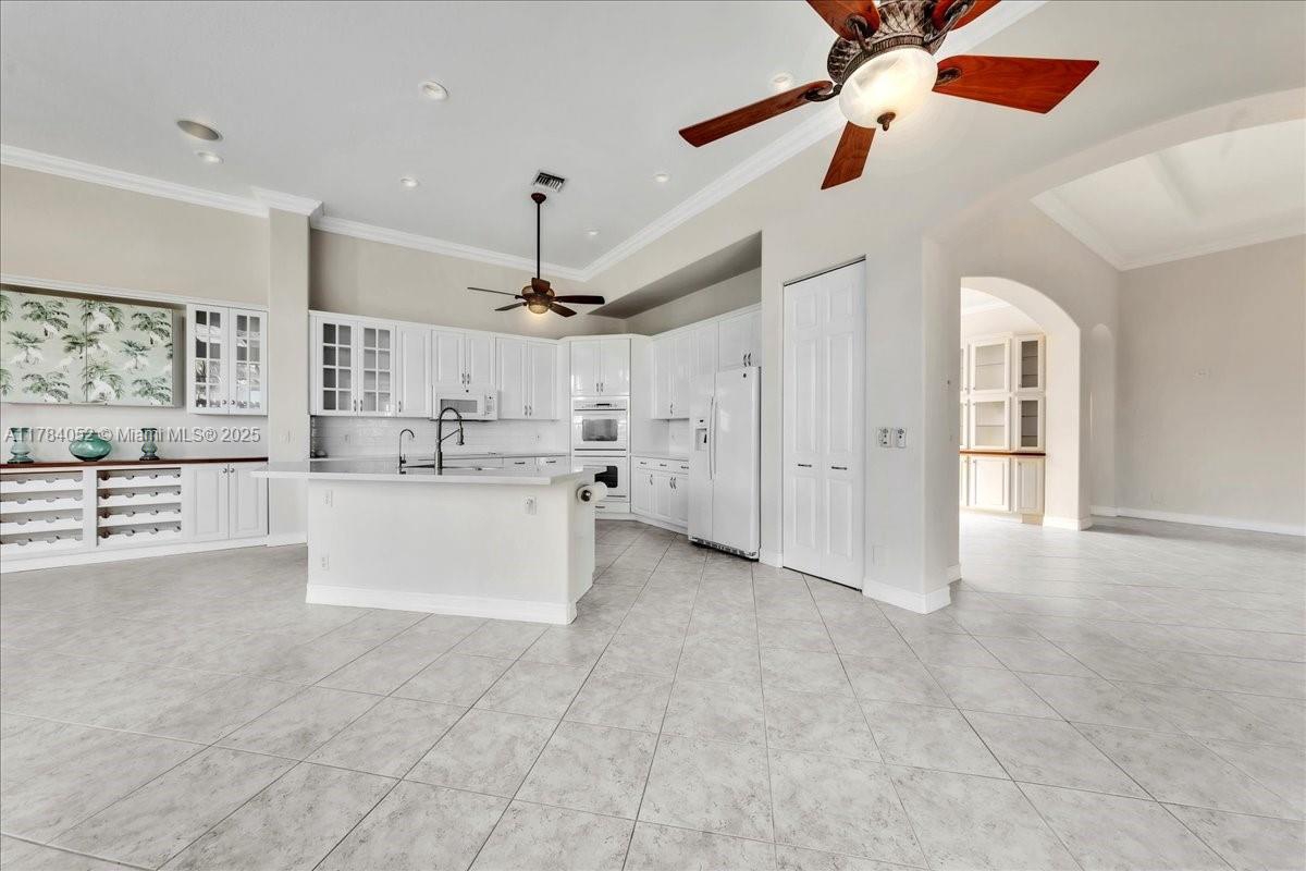 Welcome to beautiful Heron Bay, and enter this unique front terrace to find a well-maintained, immaculate and spacious one-story home. The residence offers 4 bedrooms, 3 full baths, updated open plan kitchen and living room, 3-car garage with extra large driveway accommodating 6 additional cars. You will also notice the large screened-in back patio with pergola and water views. The floor plan flows beautifully, connecting living room, kitchen and living room to enclosed back patio. Heron Bay is a distinctive residential community with all resort type amenities included in Low HOA fees, surrounded by expansive green areas. Amenities include 2 clubhouses with pools and fitness centers,a complete tennis program, pickleball & basketball courts, Kids playground, waterpark, and 3 gatehouses