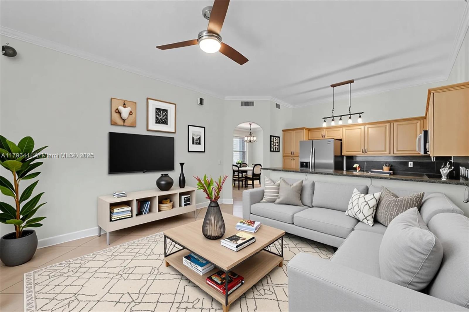 Spacious 4BD/3BA townhome in Anchorage at Miami Lakes. Quiet, family-friendly community. One bedroom & full bath downstairs, perfect for guests, in-laws, or a home office. Upstairs, you'll find three generously sized bedrooms and two bathrooms, including a stunning master suite that has a large sitting area, an oversized California walk-in closet, and a luxurious en-suite bathroom. Enjoy indoor-outdoor living with a paved patio, complete with a retractable awning — ideal for entertaining, relaxing, or enjoying weekend BBQs. Lots of natural light, tile floors, ample storage. Convenient location near top-rated schools, shopping, and major highways. This rare townhome offers both space and flexibility in one of Miami Lakes' most sought-after neighborhoods. Schedule your private tour today!