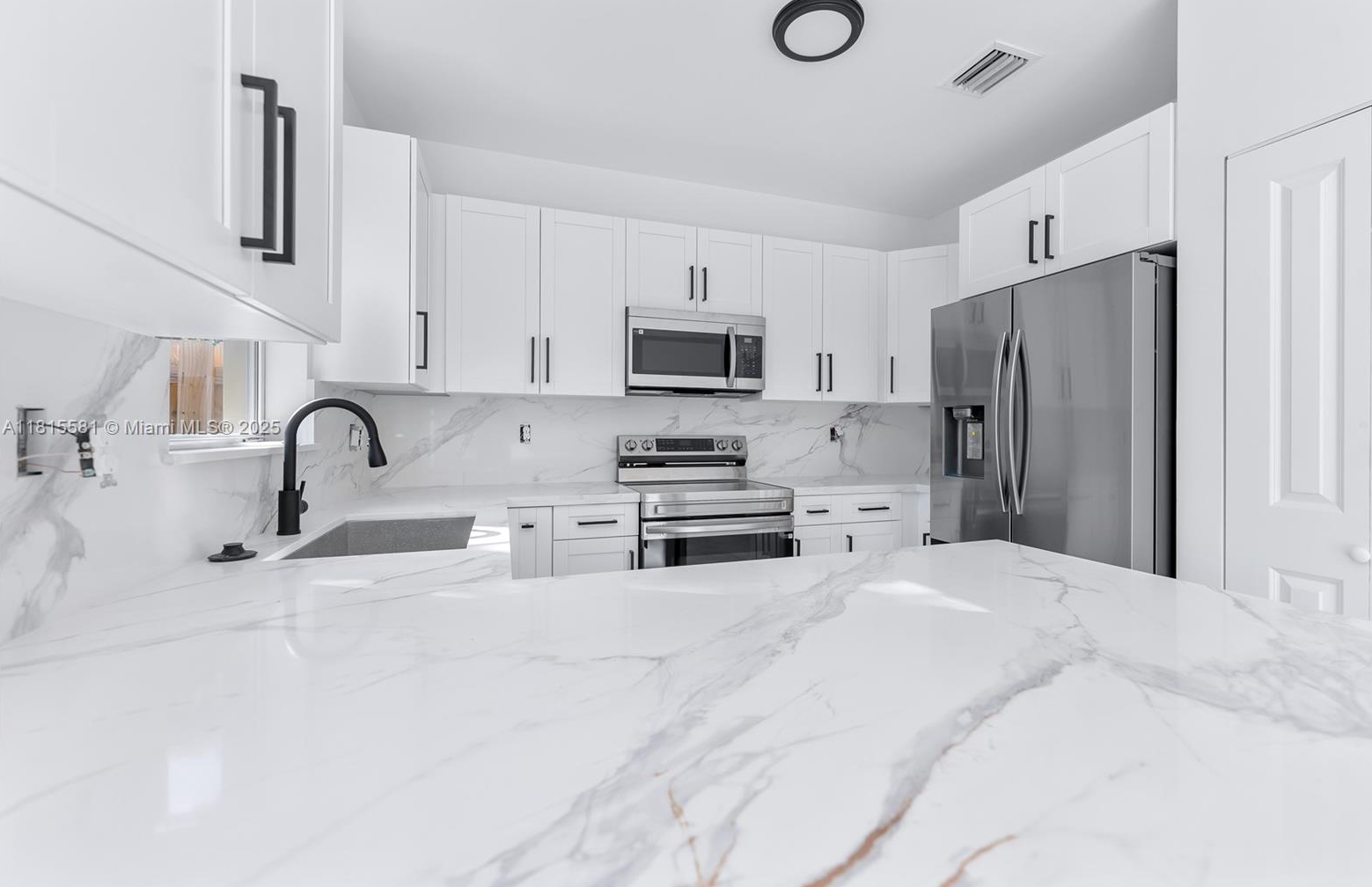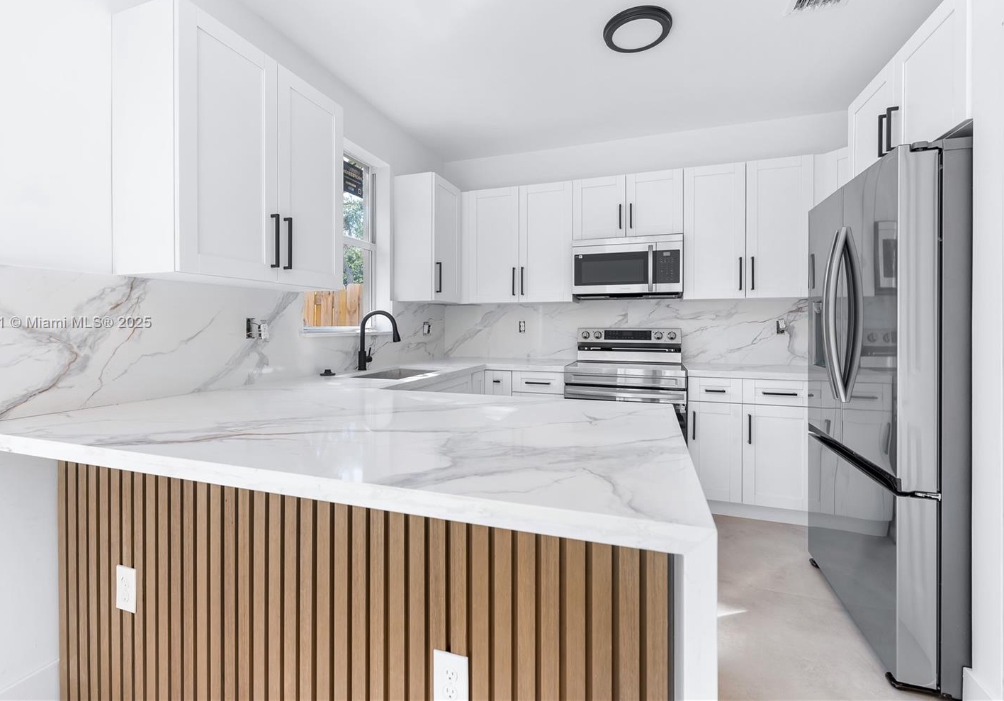 Impeccable 4BR/2.5BA Townhome that is completed renovated/rebuilt from top to bottom all done legally with plans and permits. Located in Keys Garden within Seascape Pointe! This beautiful home has an open concept layout with porcelain tile floors on the first floor and high quality 10MM vinyl flooring upstairs. Hurricane impact windows and doors, garage, and high efficiency A/C. Large open kitchen with white shaker cabinets, beautiful quartz counters, stainless steel appliances and separate pantry. Spacious bedrooms and Exquisite master suite. Community offers a gated entrance, security, clubhouse, pool, gym and more. Excellent location near A+ schools, restaurants, supermarkets, shops and turnpike.