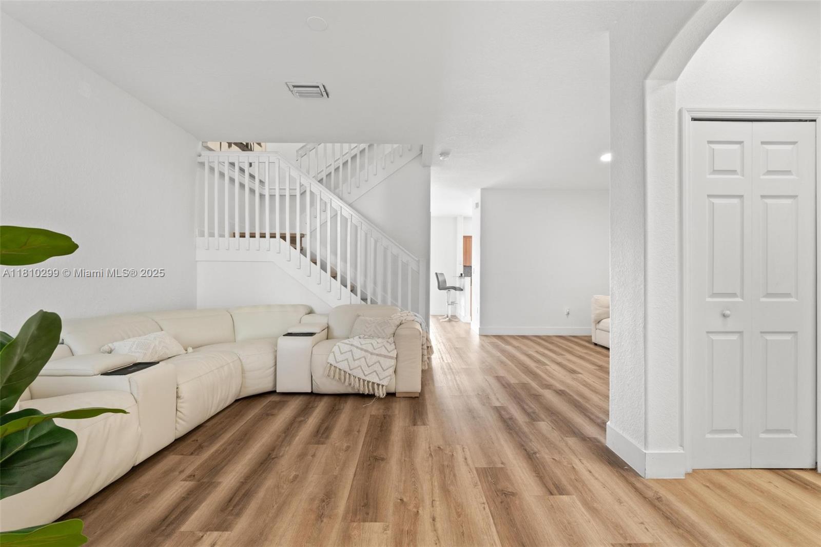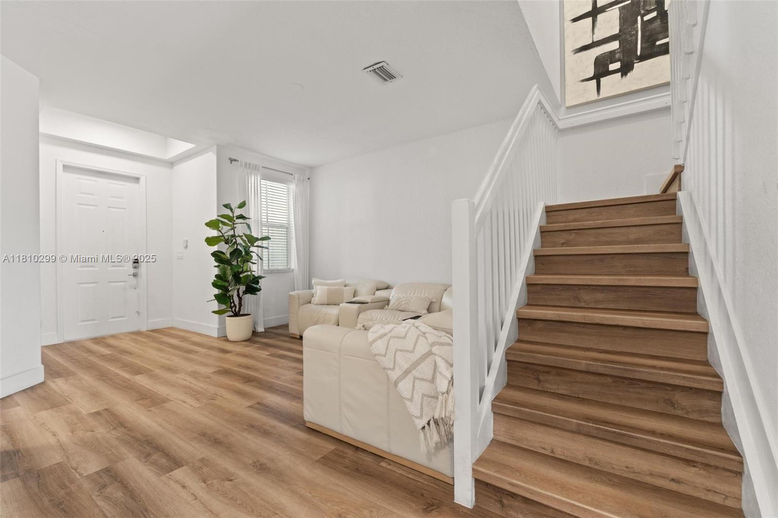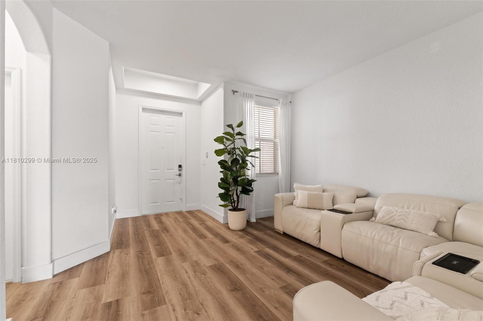 Discover this contemporary gem offering serene lake views and a low-maintenance patio, perfect for enjoying the outdoors without the hassle. Inside, you'll find stylish vinyl flooring throughout, leading to beautifully remodeled open spaces that create an inviting atmosphere. The gourmet kitchen, equipped with stainless steel appliances and modern finishes, is ideal for entertaining friends and family. Nestled in a vibrant community, this home boasts access to fantastic amenities, including a pool, clubhouse, children's playground, basketball and tennis courts, all while being just 3 minutes from the Florida Turnpike and 826 Expressway. Experience the perfect blend of luxury and convenience in this exceptional property, complemented by great schools nearby.