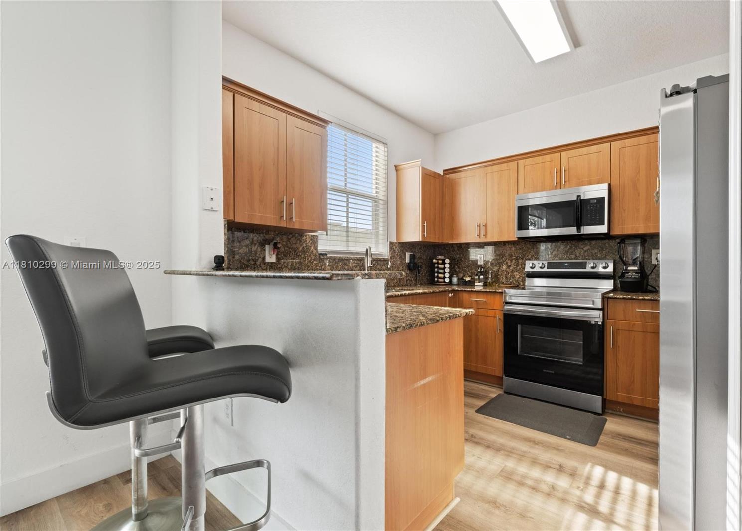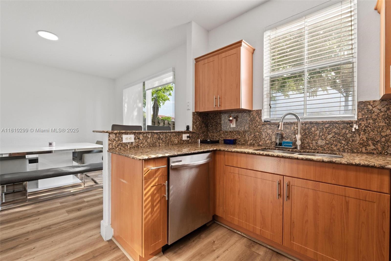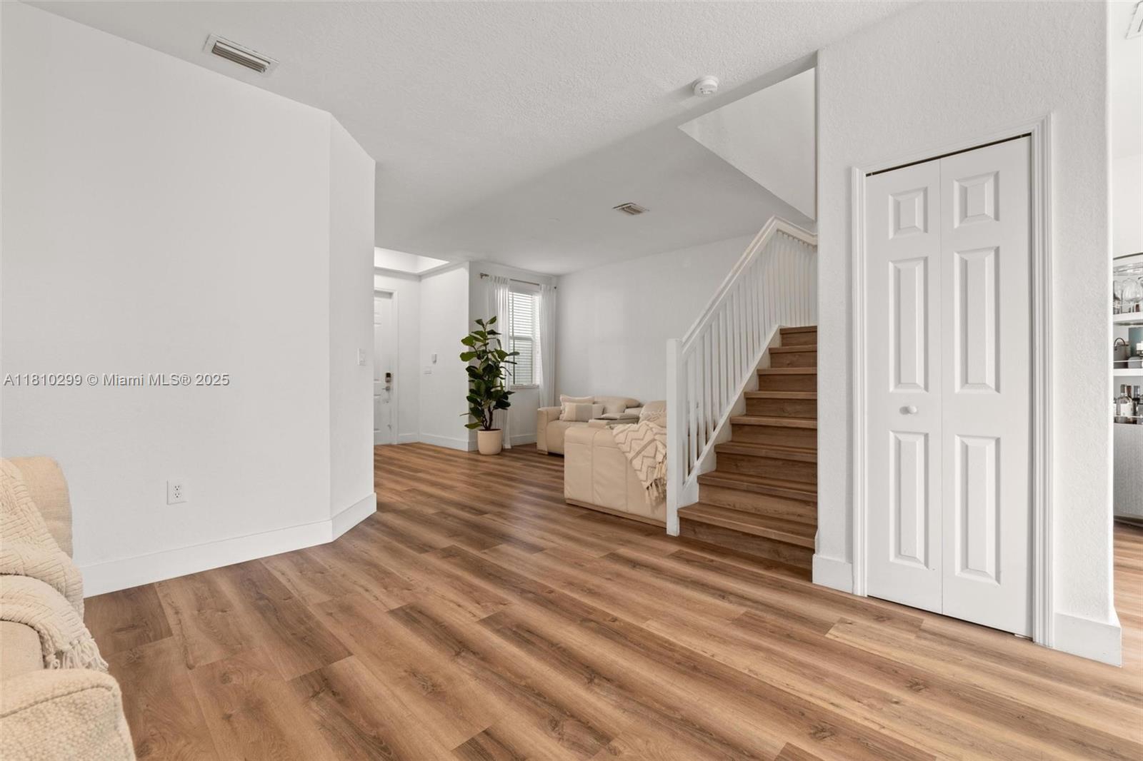 Discover this contemporary gem offering serene lake views and a low-maintenance patio, perfect for enjoying the outdoors without the hassle. Inside, you'll find stylish vinyl flooring throughout, leading to beautifully remodeled open spaces that create an inviting atmosphere. The gourmet kitchen, equipped with stainless steel appliances and modern finishes, is ideal for entertaining friends and family. Nestled in a vibrant community, this home boasts access to fantastic amenities, including a pool, clubhouse, children's playground, basketball and tennis courts, all while being just 3 minutes from the Florida Turnpike and 826 Expressway. Experience the perfect blend of luxury and convenience in this exceptional property, complemented by great schools nearby.