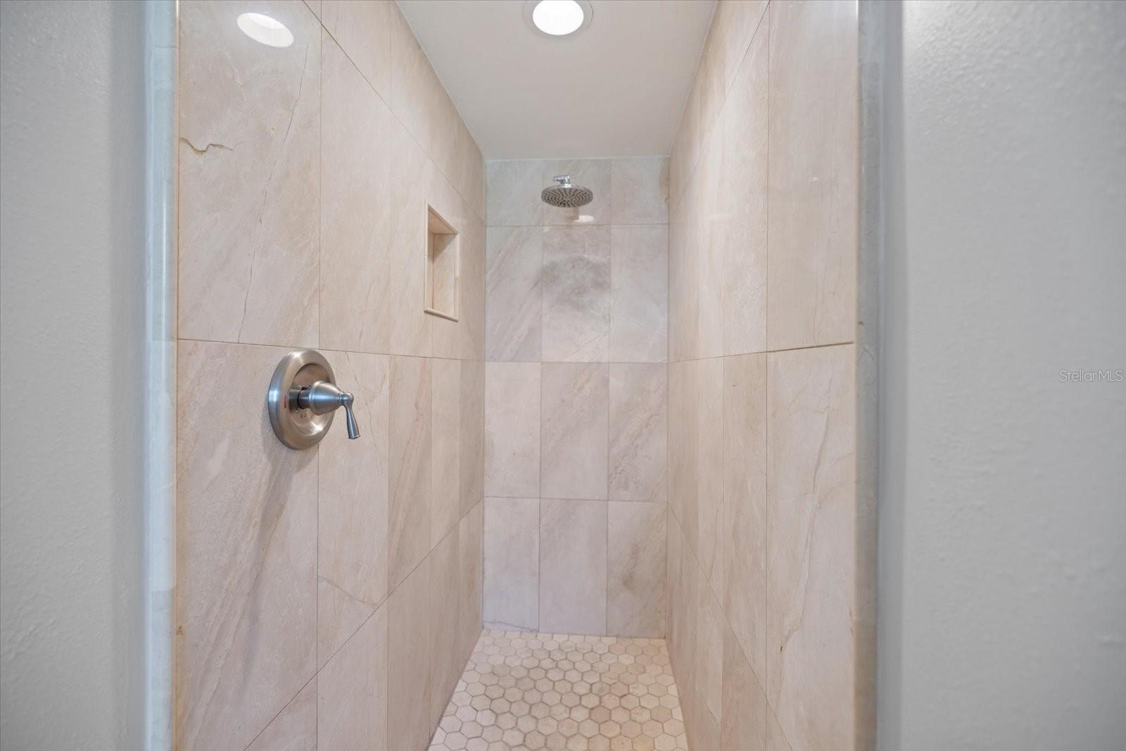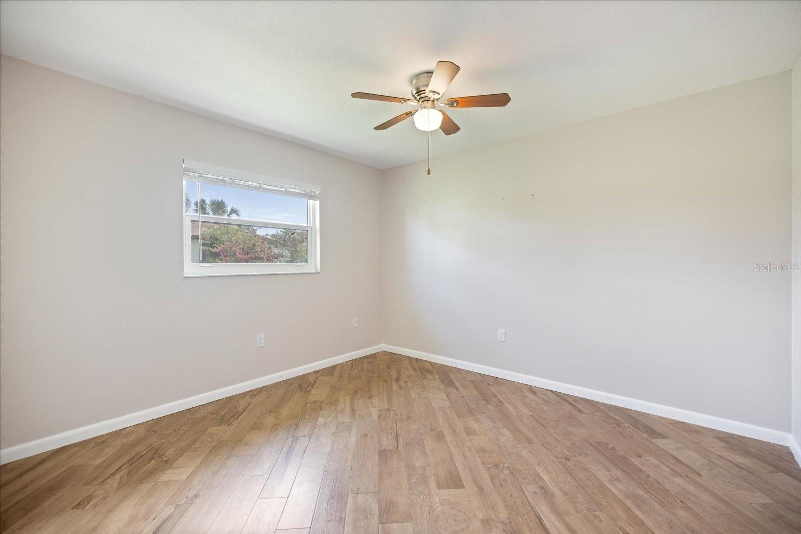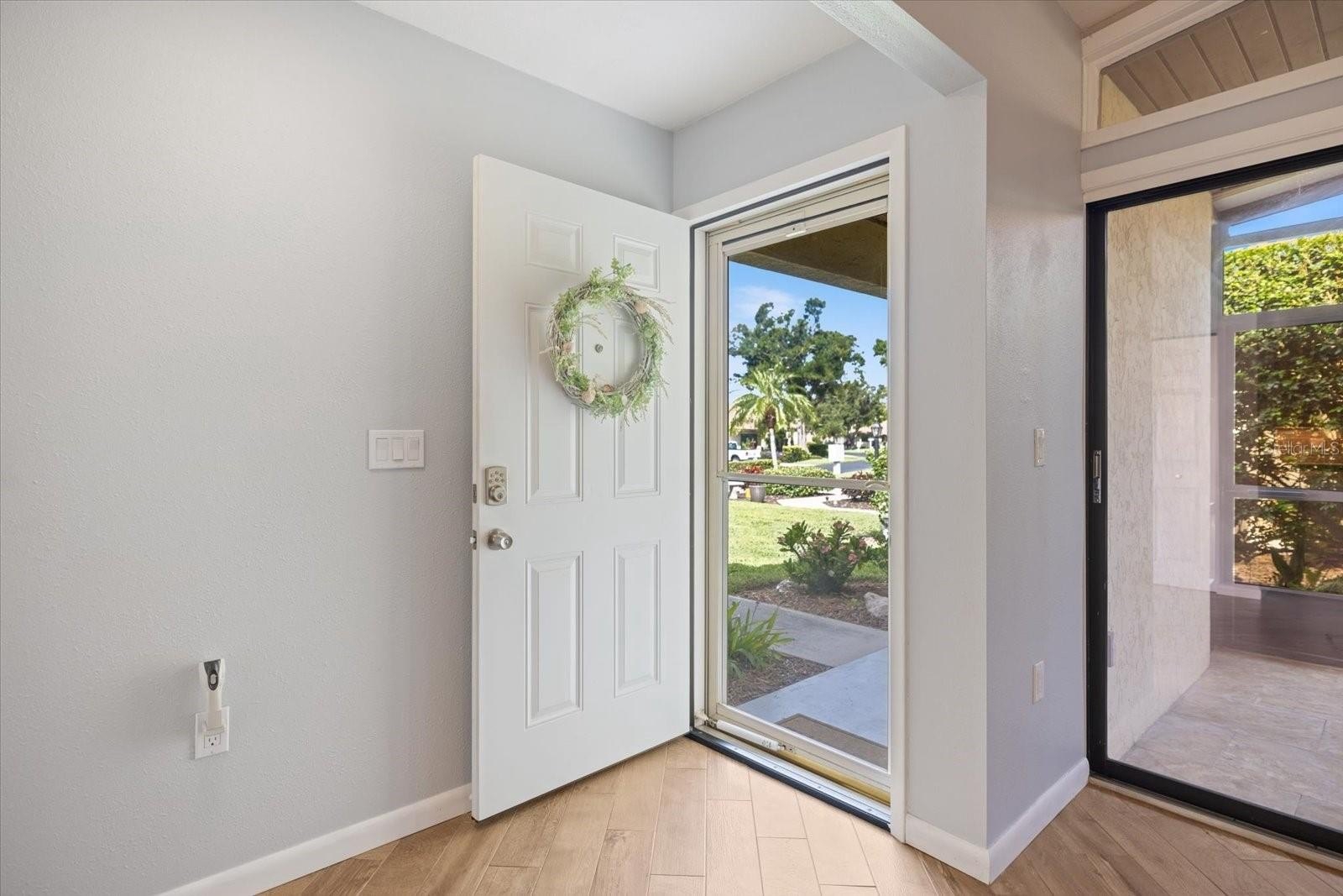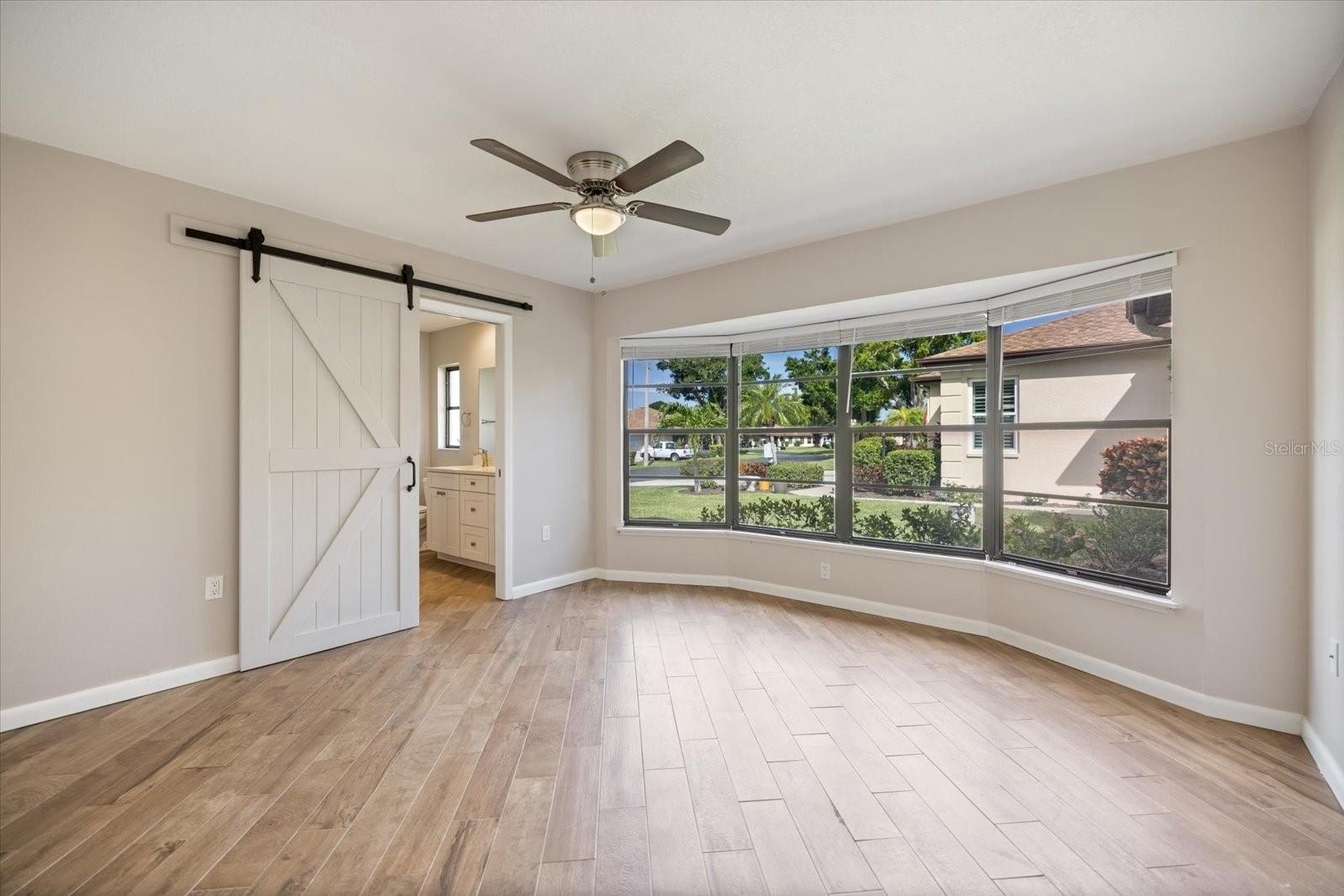 Additional 2017 upgrades include: electrical switches and outlets, energy efficient LED recessed lighting, sleek ceiling fans and contemporary fixtures, replaced interior doors and hardware, updated guest bathroom, primary suite with double vanities, quartz countertops with mother-of-pearl detail, and a spa style travertine walk in shower. Current owners finished out the extensive remodel done by previous owner with new appliances (except for dishwasher) in 2016, ring doorbell, barn door in Primary Bedroom, and painted throughout in 2023 except for Bedroom #2 that has a brand-new hurricane impact window.