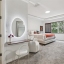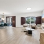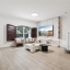 - Open-concept layout with built-in LED lighting and wall paneling in the living room