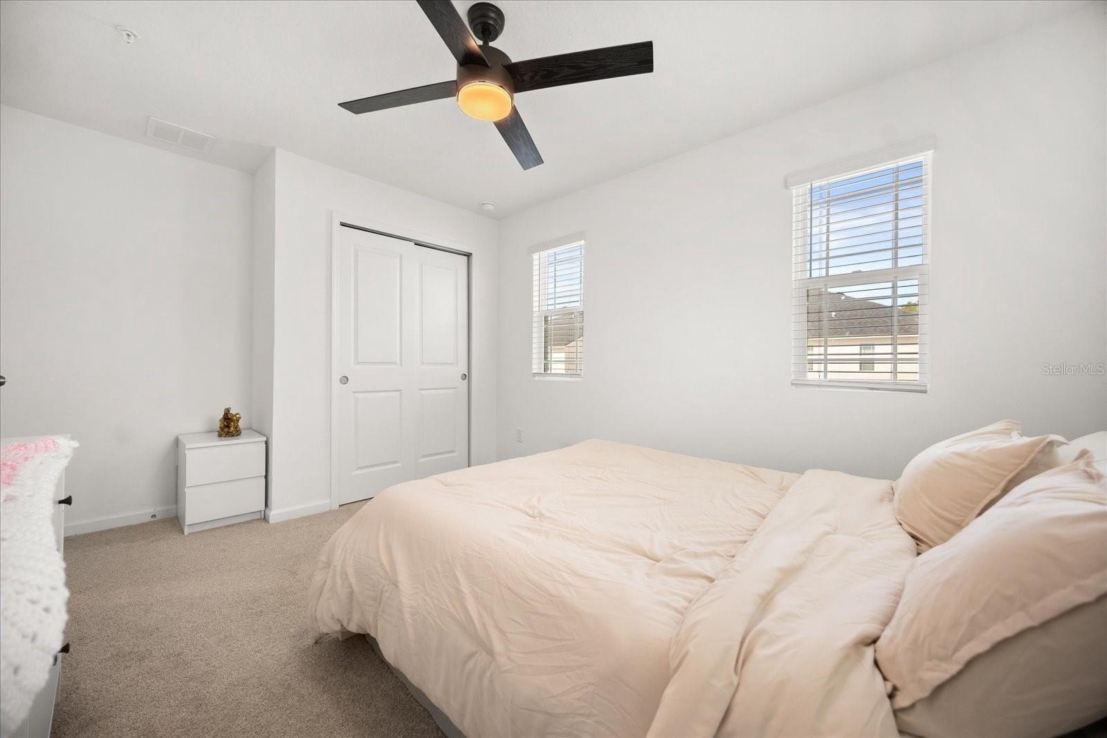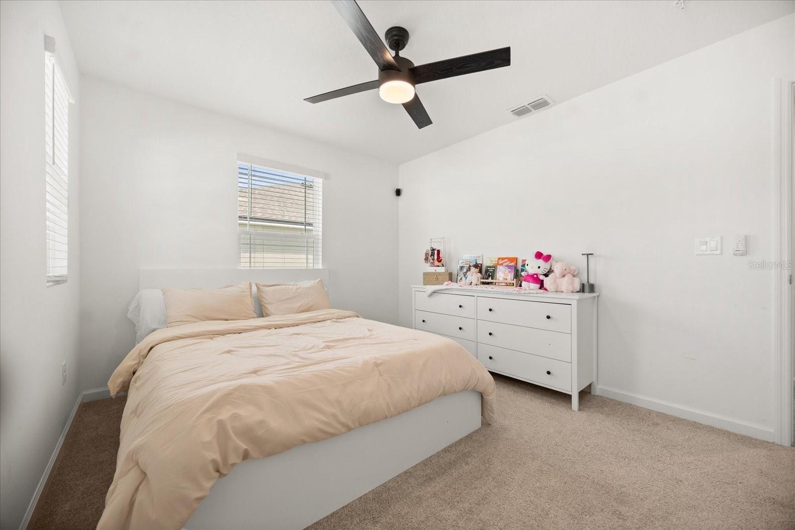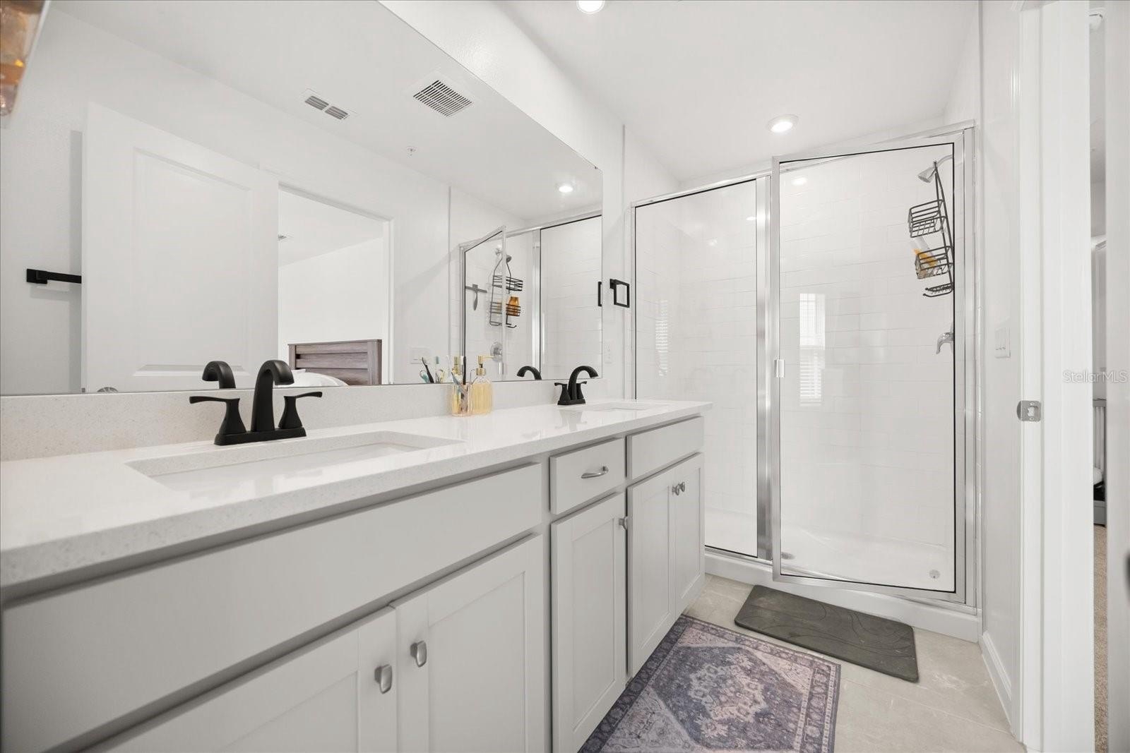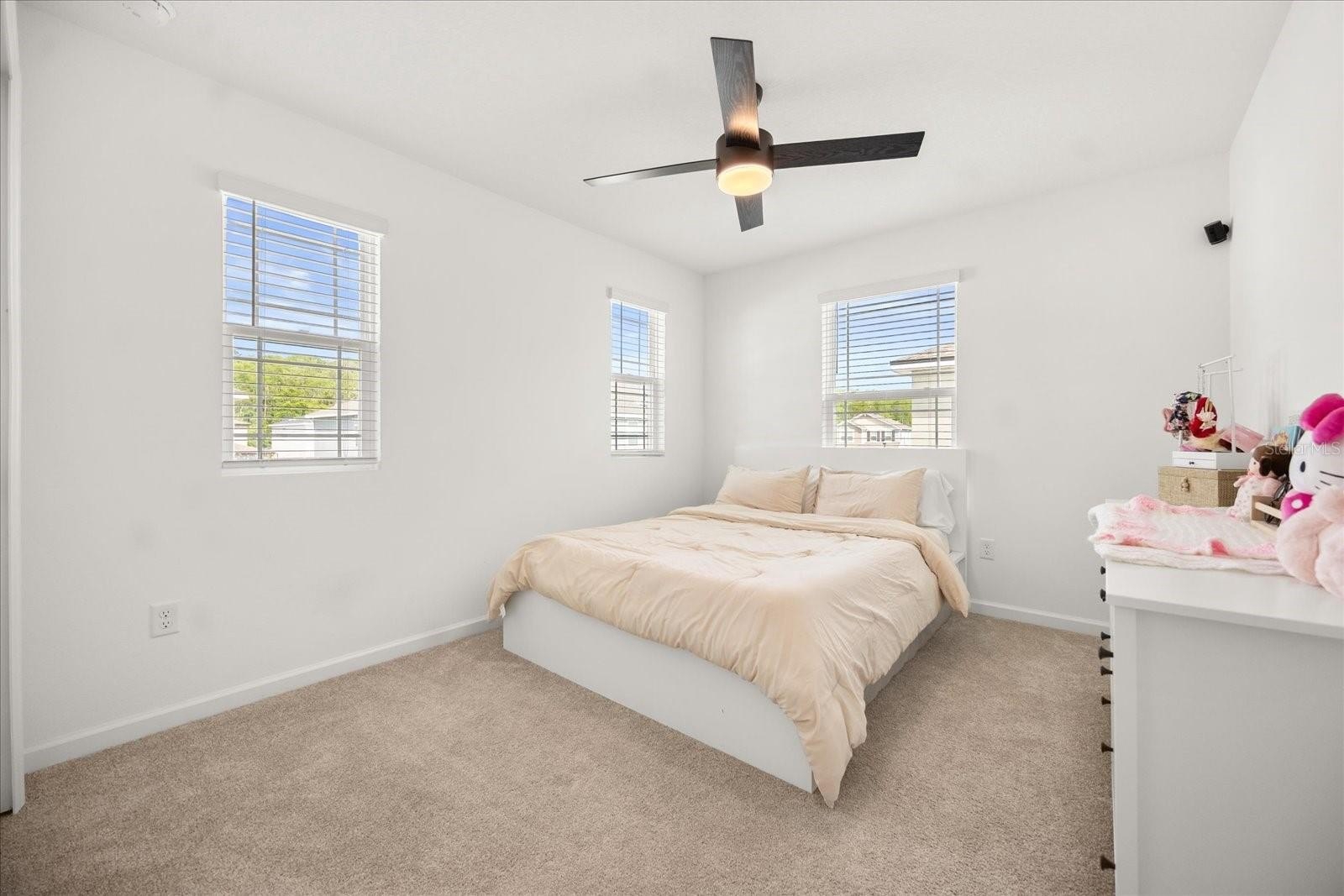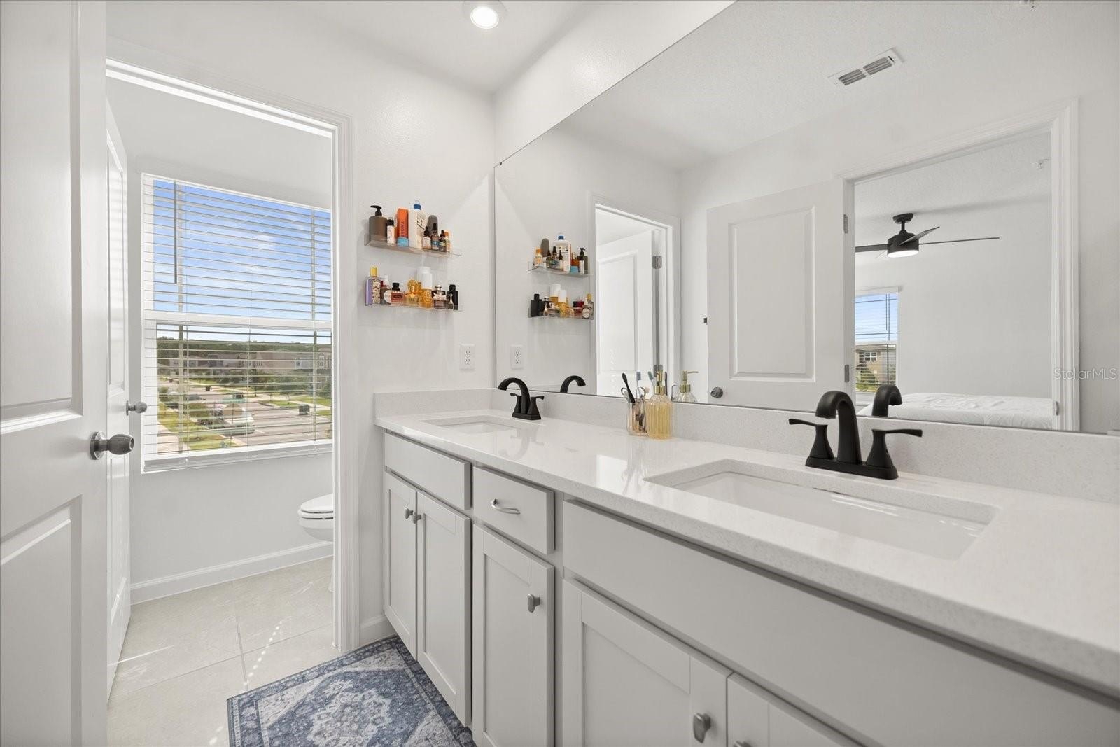 Step inside to a bright, airy interior featuring sleek quartz countertops, stainless steel appliances, and stylish black accents in the gourmet kitchen—ideal for entertaining or daily living. The spacious living and dining areas flow seamlessly, enhanced by abundant natural light, chic ceiling fans, and luxury vinyl plank flooring throughout the main level. Upstairs, discover a versatile loft space, three generous bedrooms including a luxurious owner's suite with an ensuite bath and walk-in closet, plus additional well-appointed bathrooms with modern fixtures and tiled surrounds.