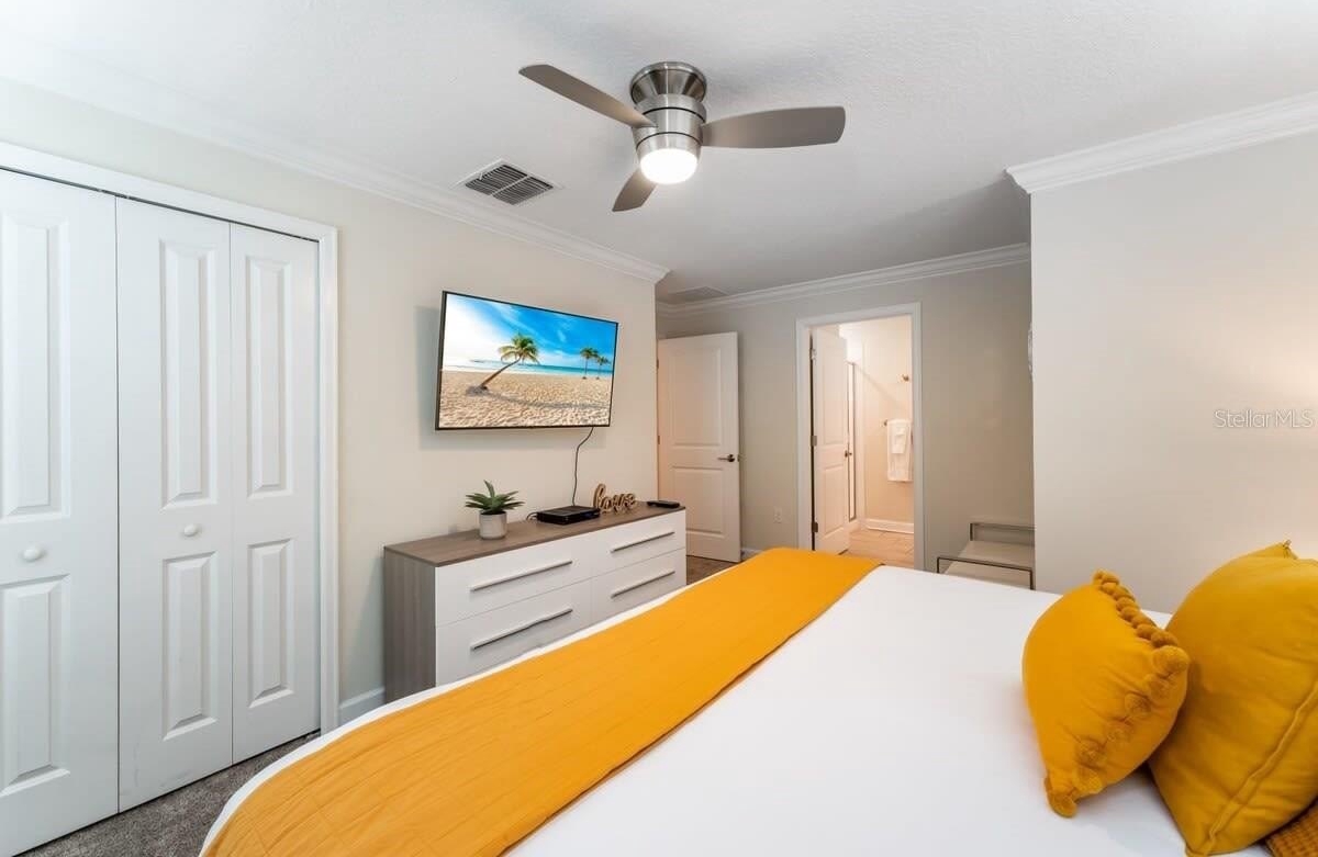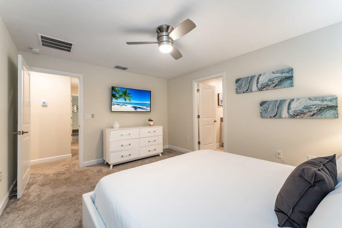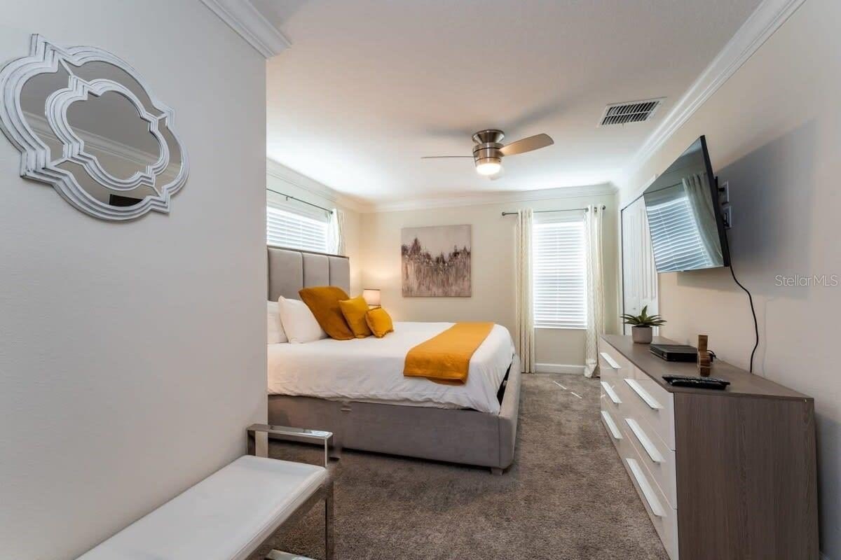 Enjoy world-class resort-style amenities: a water park with lazy river, splash pad, tennis courts, fitness center, private cabanas, on-site restaurants, and 24/7 security. The home is zoned for both short- and long-term rentals and located just minutes from Disney, Universal Studios, and top Orlando attractions.